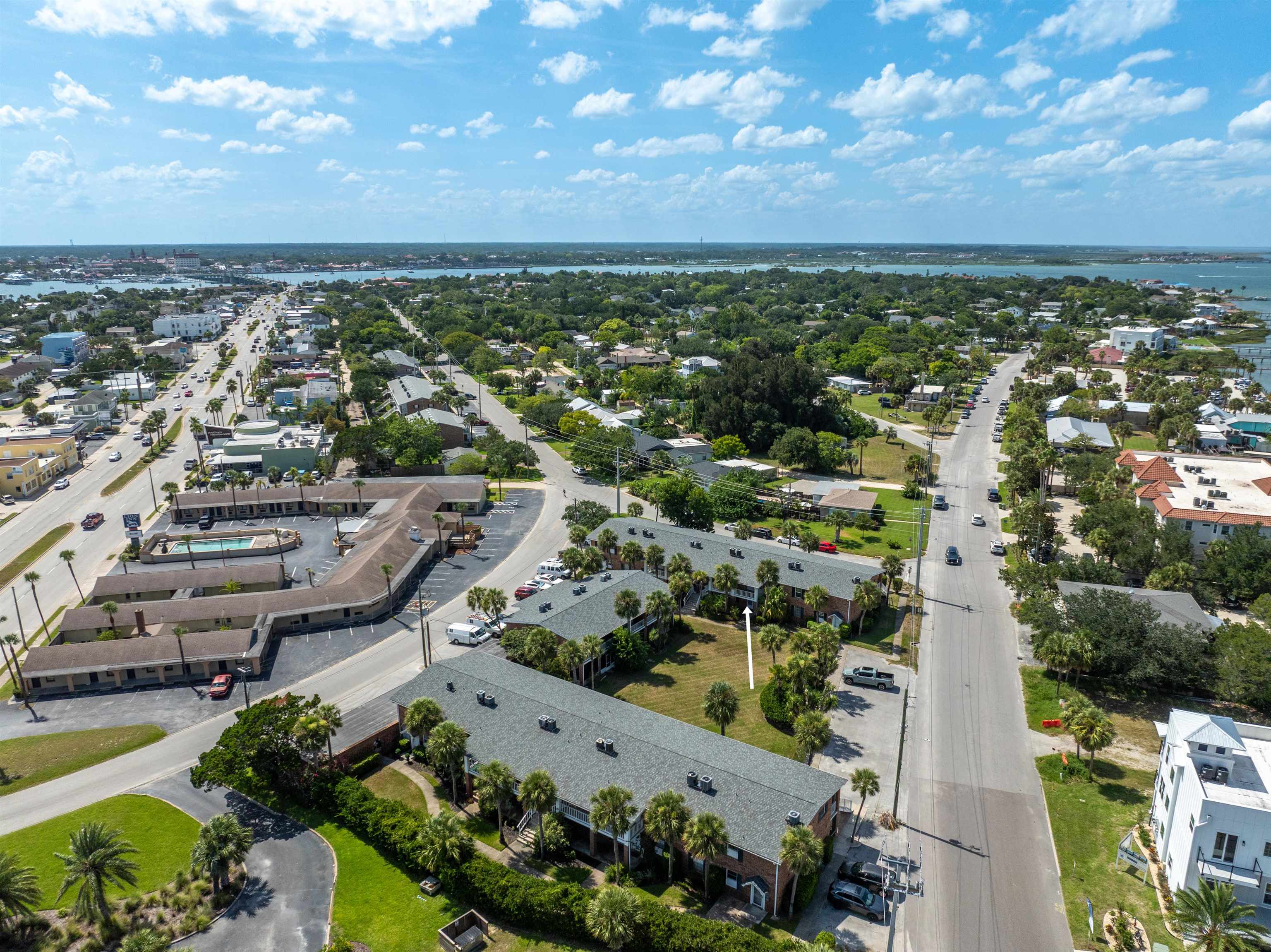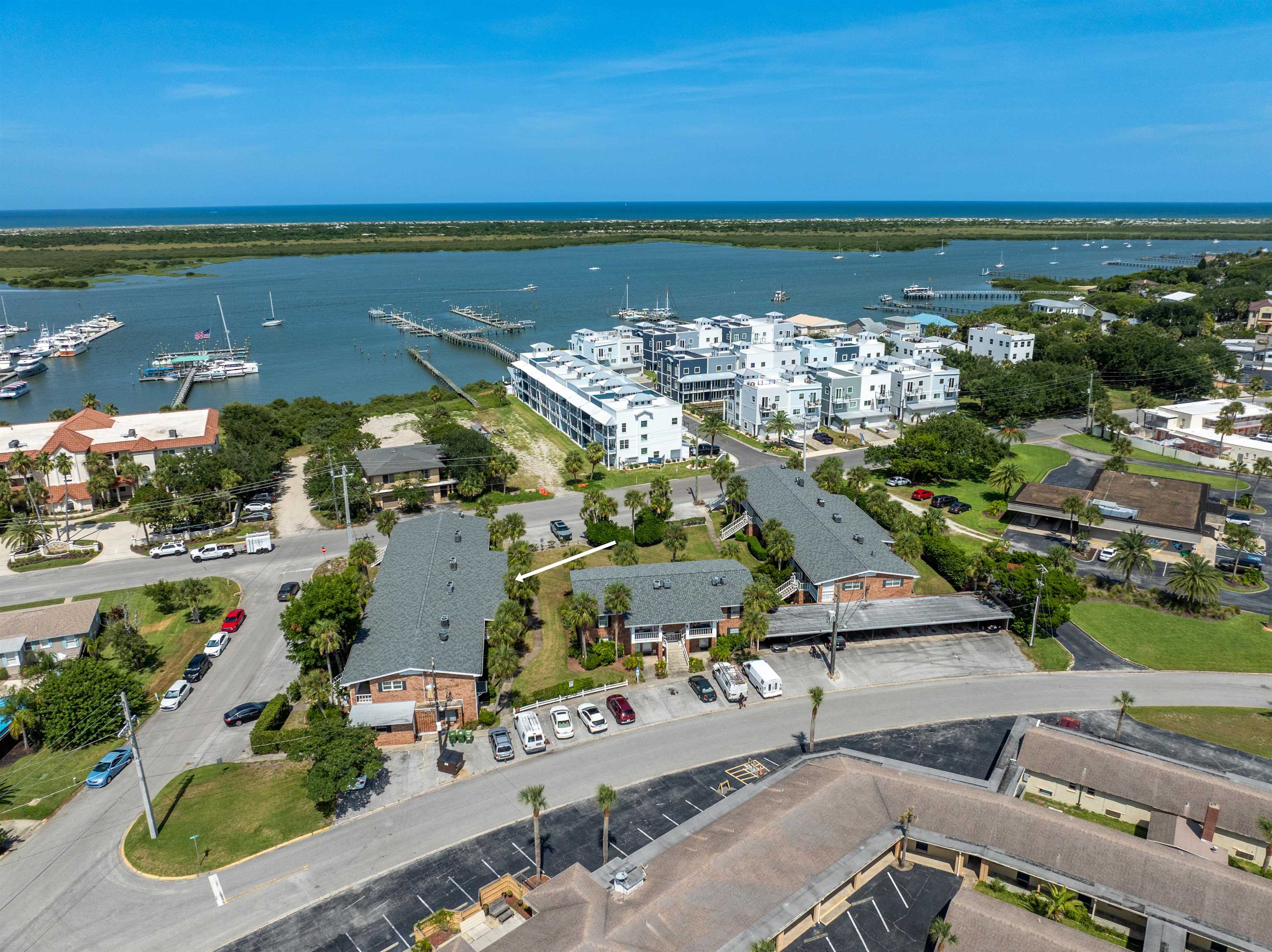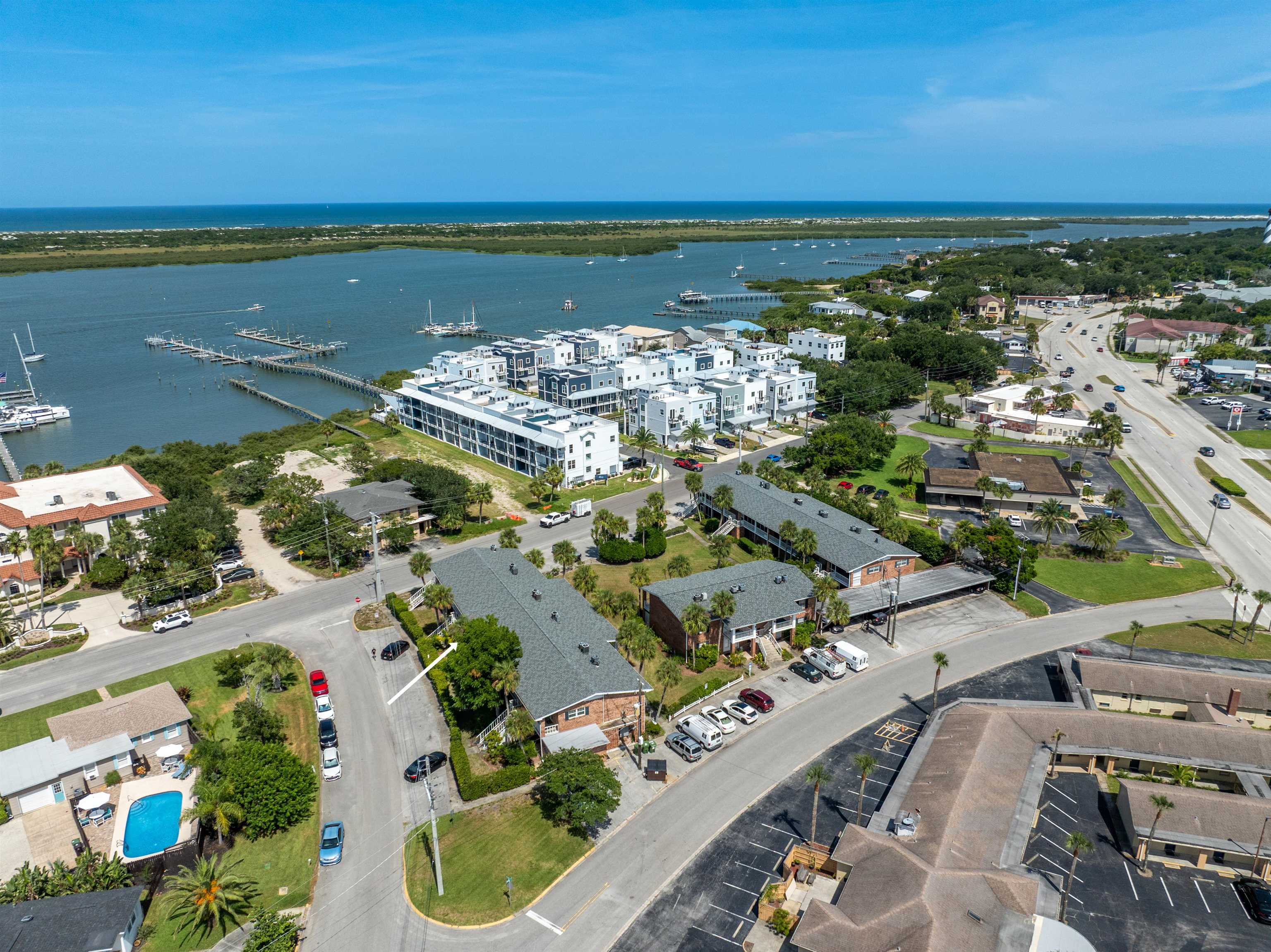 This beautifully updated 2BR/1BA ground-floor unit in the Salt Run community offers coastal charm with modern luxury. The spacious kitchen boasts leathered quartz countertops, a striking navy center island, open shelving, stainless steel appliances, and custom lighting—ideal for entertaining. Wood-look tile flooring flows throughout, complemented by recessed lighting and a calming coastal palette. The spa-inspired bathroom features elegant tilework, a new vanity, matte black fixtures, and updated plumbing. Additional upgrades include updated electrical systems, in-unit laundry, and low-maintenance living. Enjoy relaxing on your private screened patio surrounded by tropical landscaping. Located just minutes from historic downtown St. Augustine, the beach, Lighthouse Park, and top-rated schools. Perfect for full-time living, a vacation retreat, or rental investment!