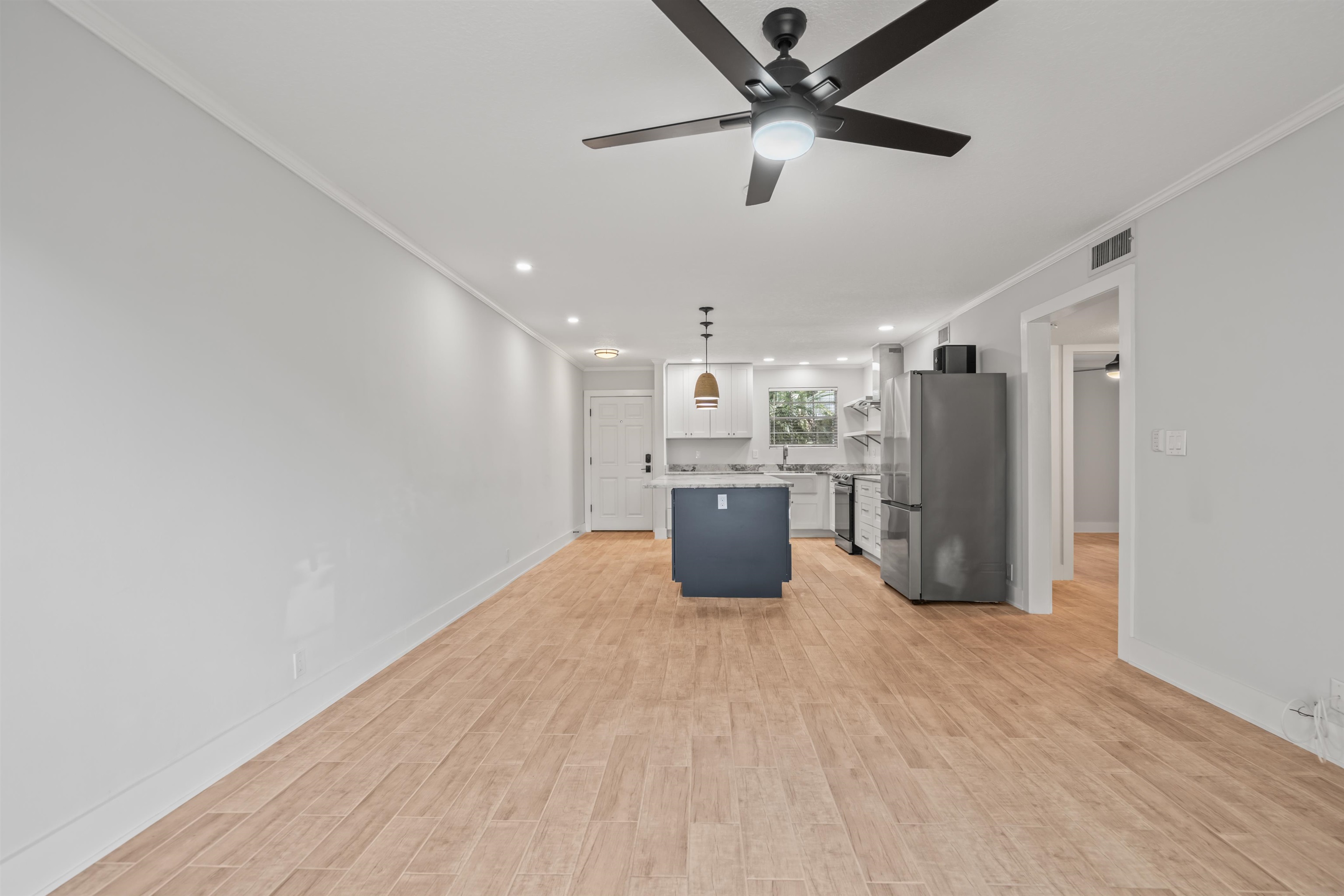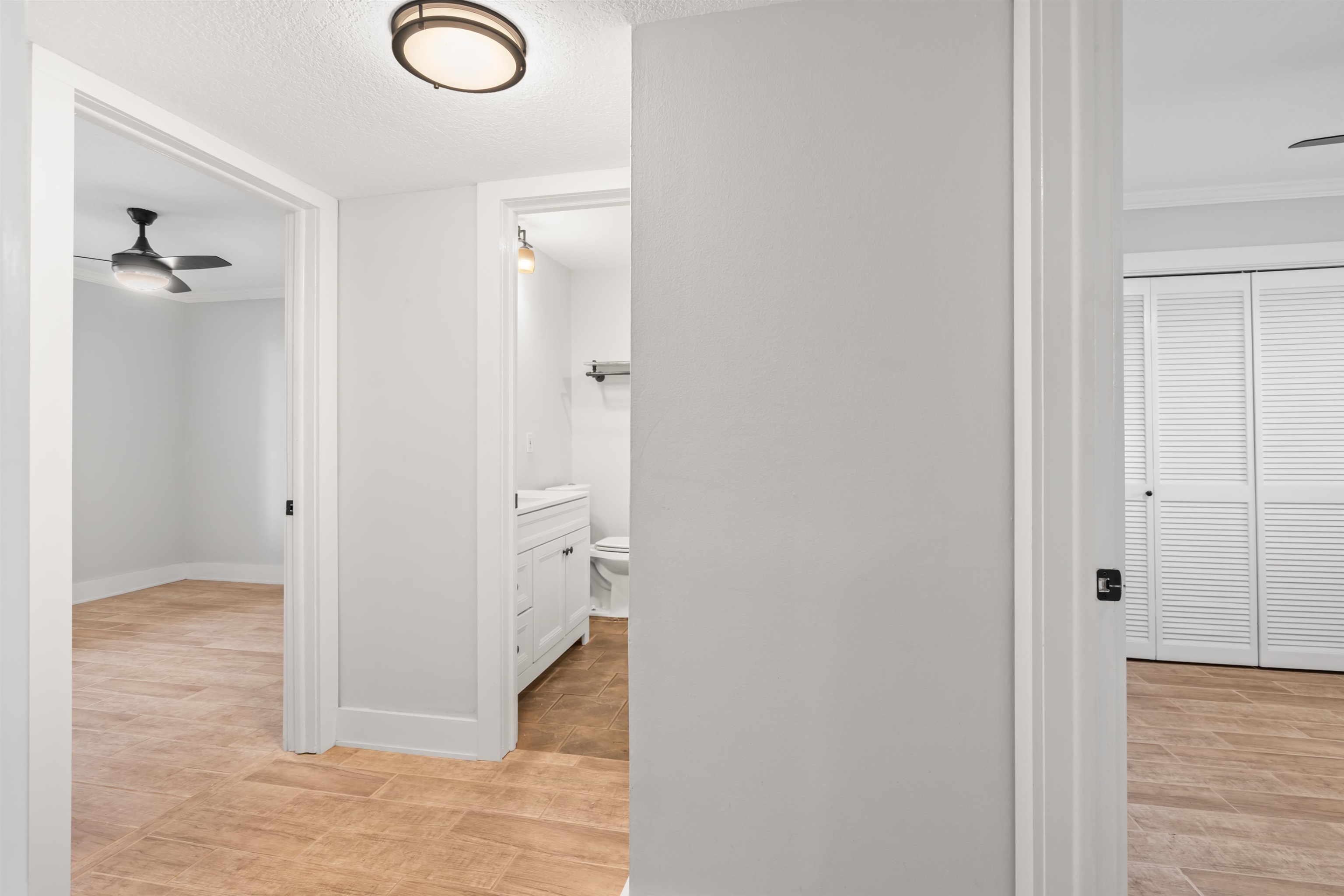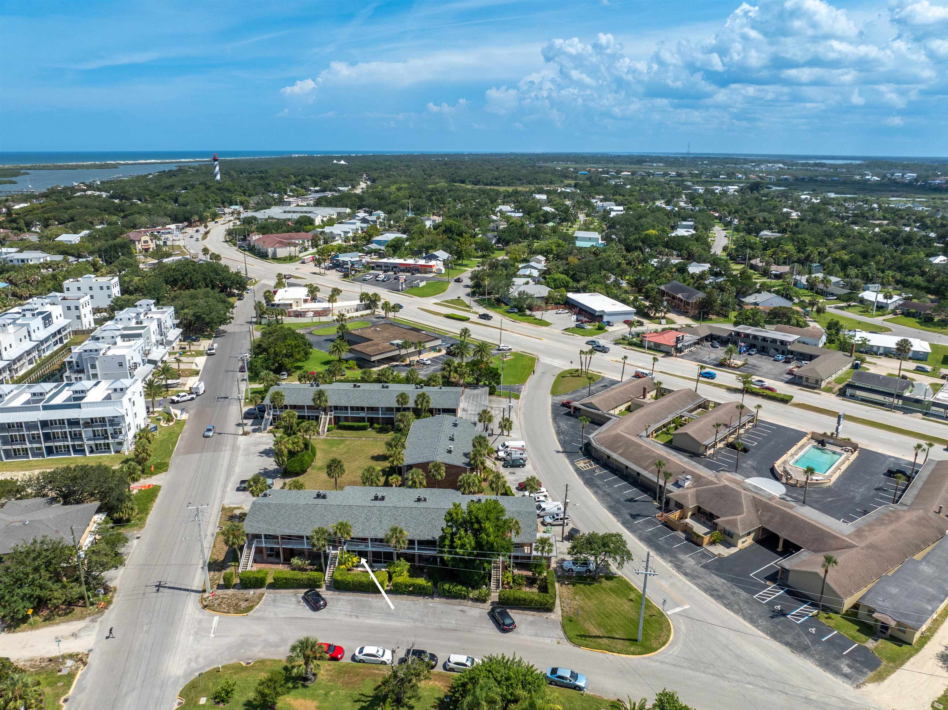 This beautifully updated 2BR/1BA ground-floor unit in the Salt Run community offers coastal charm with modern luxury. The spacious kitchen boasts leathered quartz countertops, a striking navy center island, open shelving, stainless steel appliances, and custom lighting—ideal for entertaining. Wood-look tile flooring flows throughout, complemented by recessed lighting and a calming coastal palette. The spa-inspired bathroom features elegant tilework, a new vanity, matte black fixtures, and updated plumbing. Additional upgrades include updated electrical systems, in-unit laundry, and low-maintenance living. Enjoy relaxing on your private screened patio surrounded by tropical landscaping. Located just minutes from historic downtown St. Augustine, the beach, Lighthouse Park, and top-rated schools. Perfect for full-time living, a vacation retreat, or rental investment!