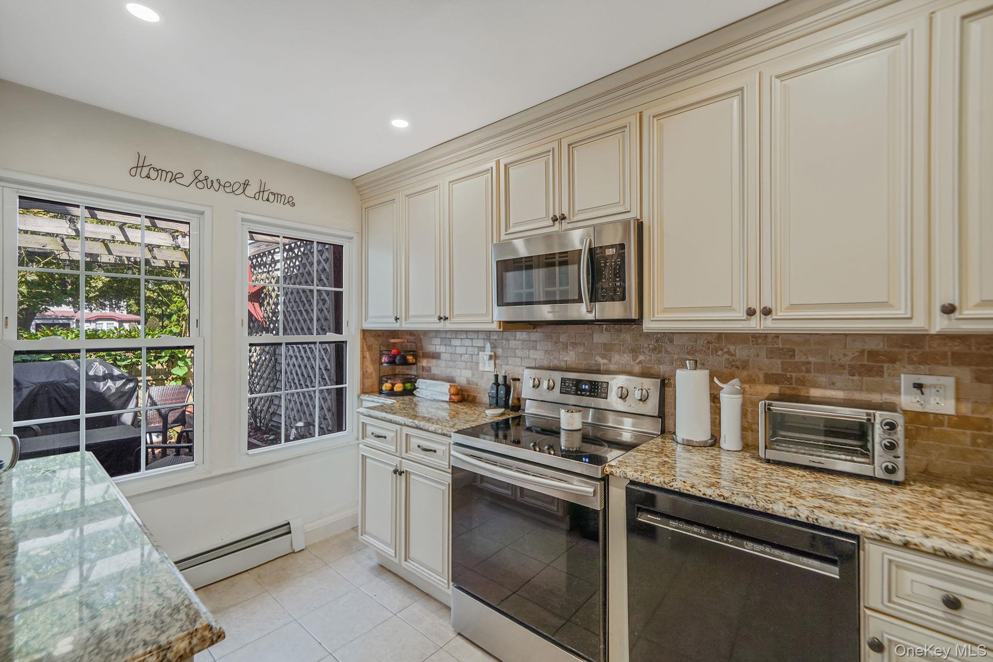 Beautiful Strathmore Court Community offering 3 bedroom 2. 5 bathroom townhouse featuring an updated kitchen with stainless steel appliances, wine refrigerator, granite counters, tile backsplash, hi-hats in kitchen, dining and living room, ceiling fan in primary bedroom and stairway, laundry area on 2nd floor, 100 amp service, pvc fence and oil tank (2012). Enjoy relaxing on your brick front patio, near lots of shopping and restaurants. Needs some TLC such as main floor, primary bedroom and upstairs landing area needs flooring, make this yours today!!