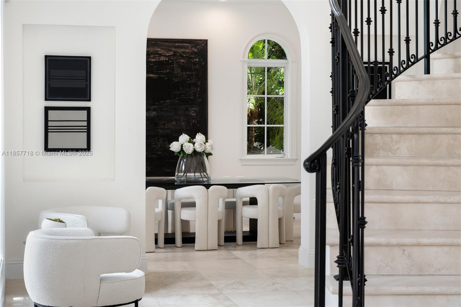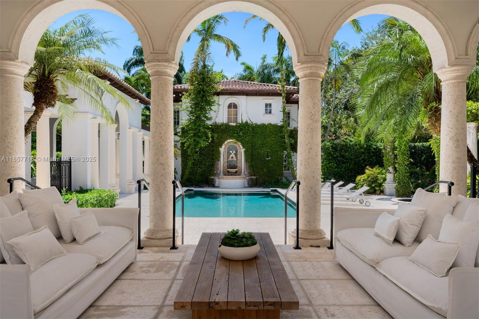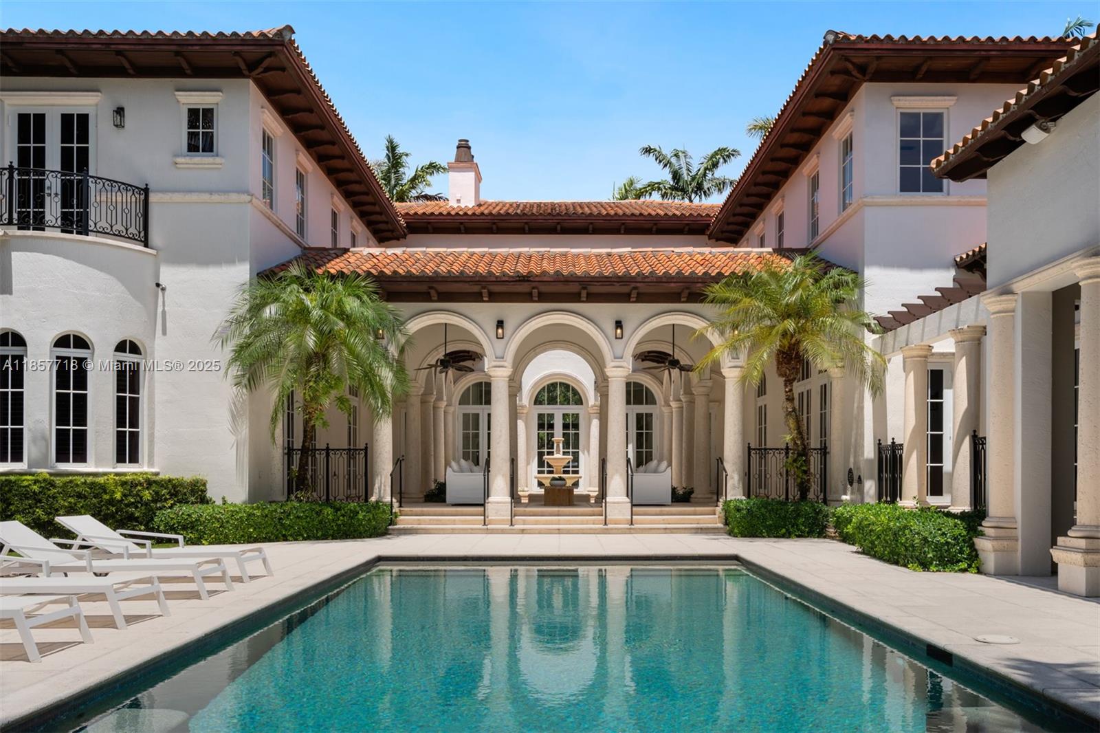 Luxury estate on esteemed Suburban Dr in Pinecrest, boasting a through-lot design. Ideal for a large family, w dual staircases that divide the foyer & formal living rm w soaring ceilings. Main level includes entertaining space, formal dining rm & open-style kitchen. Family rm is enhanced w a bar, fish tank, & workspace. Primary suite on main level enjoys its own wing, w a sitting/nursery rm. Staircases lead to distinct wings, one side 3 beds & 3 baths, and the other w 2 beds & 2 baths, featuring hardwood floors & renovated baths. Backyard is a paradise, w pool, jacuzzi, basketball court, & putting green. Additional luxuries: outdoor courtyard, water features, summer kitchen, detached guesthouse w 2 beds, living, & kitchen area, 3 car garage, & spacious motor court.