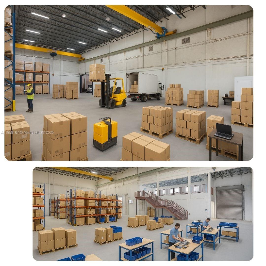Single-user warehouse featuring 32' clear height and a clear-span layout with no interior columns and a large mezzanine. Includes one covered, dock-high loading door and one overhead drive-in door. Equipped with 3-phase power and two installed 3. 2-ton cranes with hoists. On-site parking for up to 9 vehicles with 6 spaces inside a gated area (7-assigned, 2-shared). There is a detached 1, 500 sf office area offers a private office with a full bathroom and kitchenette, large secondary office space, large open reception area and one additional half bathroom that can be combined with this space.