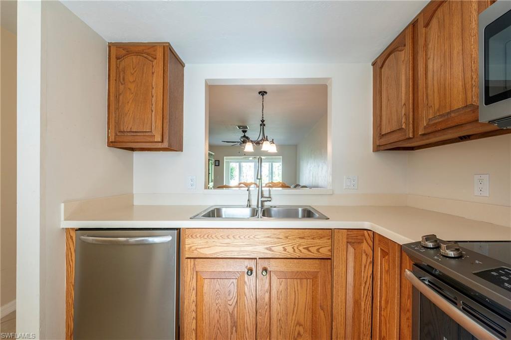 SIGNIFICANT PRICE REDUCTION! IMMEDIATE OCCUPANCY available to enjoy 2026 Season in Beautiful Naples! This charming 2-Bed, 2-Bath Villa in Lakewood is a Hidden Gem! Welcome to your slice of paradise in the sought-after Lakewood community! This ground-floor villa offers the ultimate in privacy—no neighbors above—and comes with covered parking and extra storage for all your Florida lifestyle essentials. Step inside to discover diagonally laid tile floors throughout—no carpet anywhere! The spacious layout flows seamlessly into an enclosed lanai with impact-rated sliding doors, leading to an extended patio where you’ll soak in serene lake views and lush tropical landscaping. Enjoy peace of mind with impact windows and a 2018 roof, plus a host of recent upgrades: Range, dishwasher & water heater (2019), Microwave (2022), HVAC system (2017), and Brand-new reverse osmosis water system (2025), new plumbing fixtures in guest bath and kitchen (2025), Master Shower is handicap accessible. Boca Ciega Village is a low-density, pet-friendly community with low fees and a sparkling pool steps away. You're only minutes from Naples’ world-famous beaches, scenic parks, pickleball courts, public golf, and a vibrant mix of dining, shopping, and entertainment. With rental restrictions in place—no rentals allowed until 3 years of ownership—your investment is protected, making this villa ideal for a primary residence or vacation retreat. Move-in ready and waiting for you! Don’t miss out on this rare opportunity to own a peaceful, well-maintained home in one of Naples’ most charming communities.