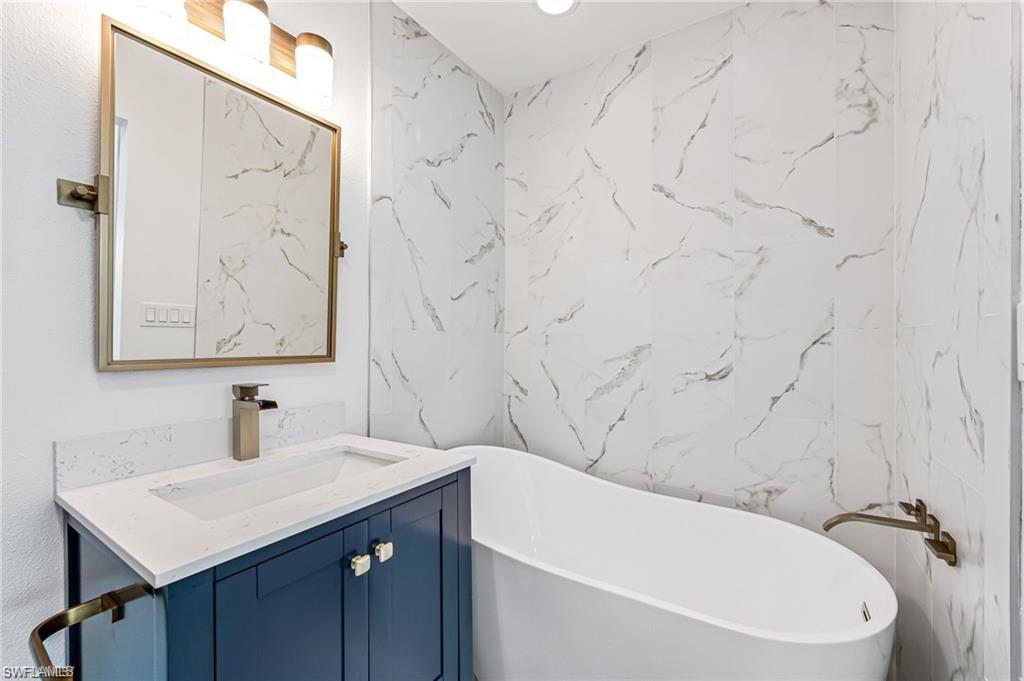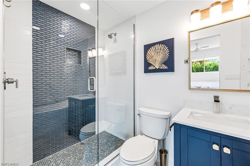 This beautifully updated Collier County waterfront home is the perfect blend of luxury, location, and lifestyle! Boaters’ dream! Enjoy direct Gulf access with no bridges and a community boat ramp just a few streets away. Plus, NO HOA restrictions! Located in the sought-after Bonita Shores boating community, this home is just minutes from Barefoot Beach, shopping, restaurants, grocery stores, fitness centers, and some of the best white sandy beaches. Whether you prefer to walk, bike, or boat, paradise is always within reach. Inside, this stunning home features a completely repainted interior and exterior in the past few weeks, adding a fresh, modern feel. The designer-renovated interior boasts wood flooring in the main living areas and master bedroom, with tile plank flooring in the guest bedrooms and office. The chef’s kitchen is a showstopper with custom cabinetry, quartzite countertops and backsplash, stainless steel appliances, and a large island with bar seating. Step outside to your private newly built pool with sun shelf and built-in water features, all perfectly complemented by a cypress-lined covered lanai that connects the pool area to the waterfront. The home is also storm-ready with a new roof, impact windows, and doors. The spacious master suite offers a custom-designed bath with a large walk-in shower, double vanity, and a custom walk-in closets. The guest suites each feature private entrances, making this home a fantastic rental income opportunity. Each guest suite includes king-size beds and beautifully appointed en-suite bathrooms with custom tile showers, seamless glass doors, and designer vanities. Offered fully furnished and turnkey! All furniture and furnishings are included just bring your boat and start making memories or profits!