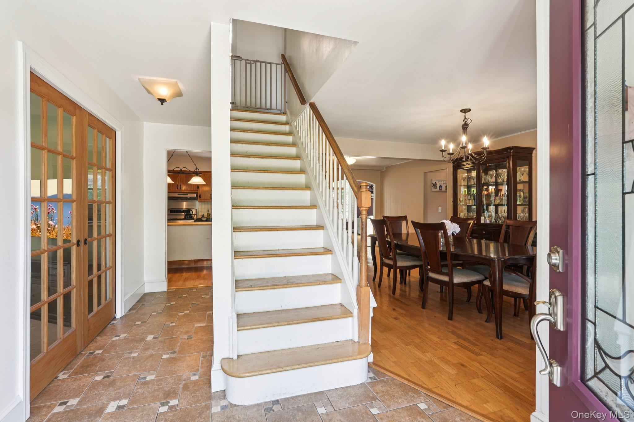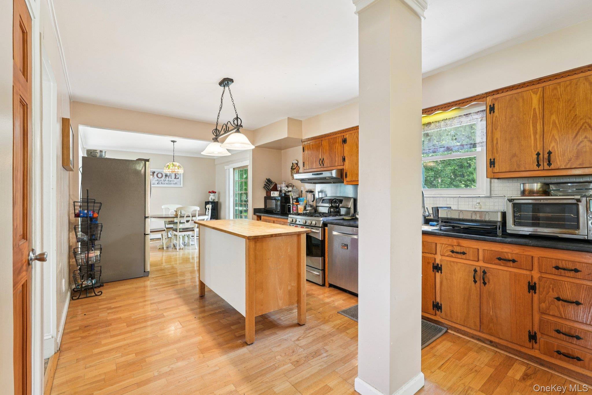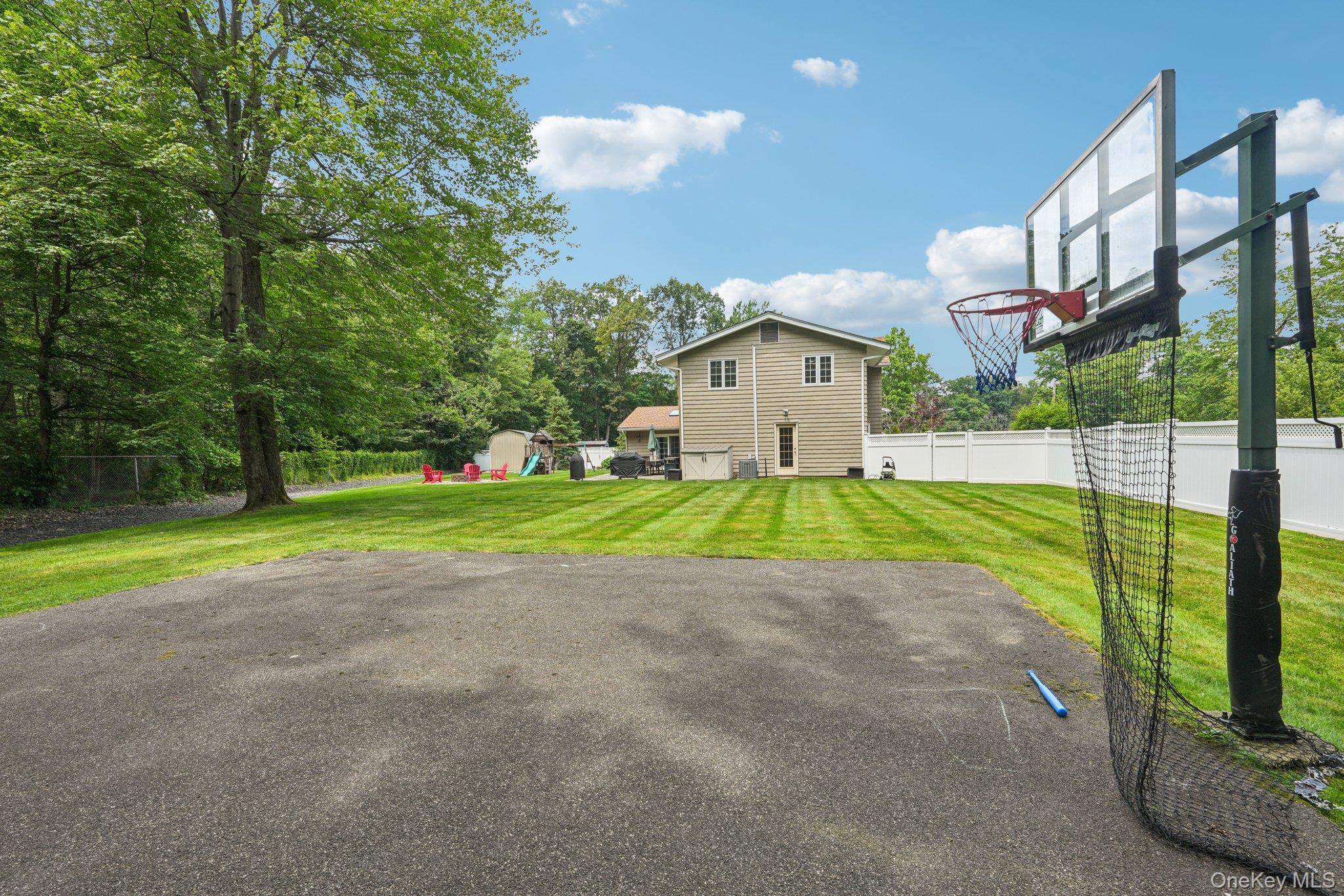 Welcome to Brenda Lane in Bardonia! This awesome colonial offers a formal living room with recessed lighting, large dining room and a spacious open eat-in kitchen floor plan. Boasts an amazing bonus family room addition with cathedral ceiling, new skylights and gas fireplace. Just perfect for entertaining!! A den off the kitchen that’s ideal for a home office, playroom or guest room. Features hardwood floors throughout. Master bedroom suite with a huge walk-in closet plus a second closet. 3 additional spacious bedrooms. Countless updates including: roof, siding, front door, boiler, water heater, dishwasher, brand new washer/dryer, bathrooms and even smart thermostats. This beauty has great curb appeal with beautiful oversized new driveway with Belgium block and garage. The private wooded backyard shows like a dream with new patio, built in fire pit and your very own basketball court. A perfect yard for family fun and parties. Shed and front & back underground sprinklers too! Conveniently located near public transportation, shopping and major highways. All this and award winning Clarkstown schools. This home definitely checks off all the boxes!