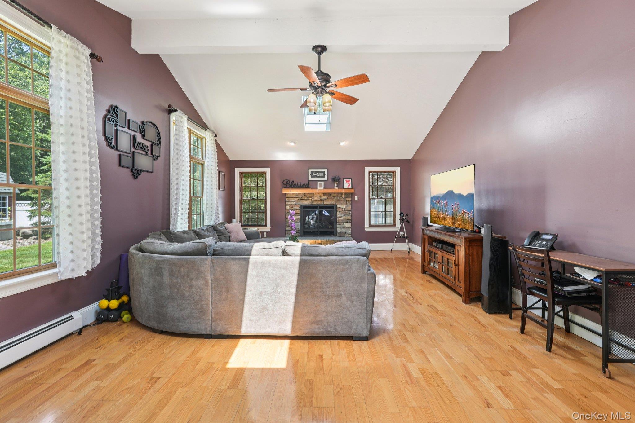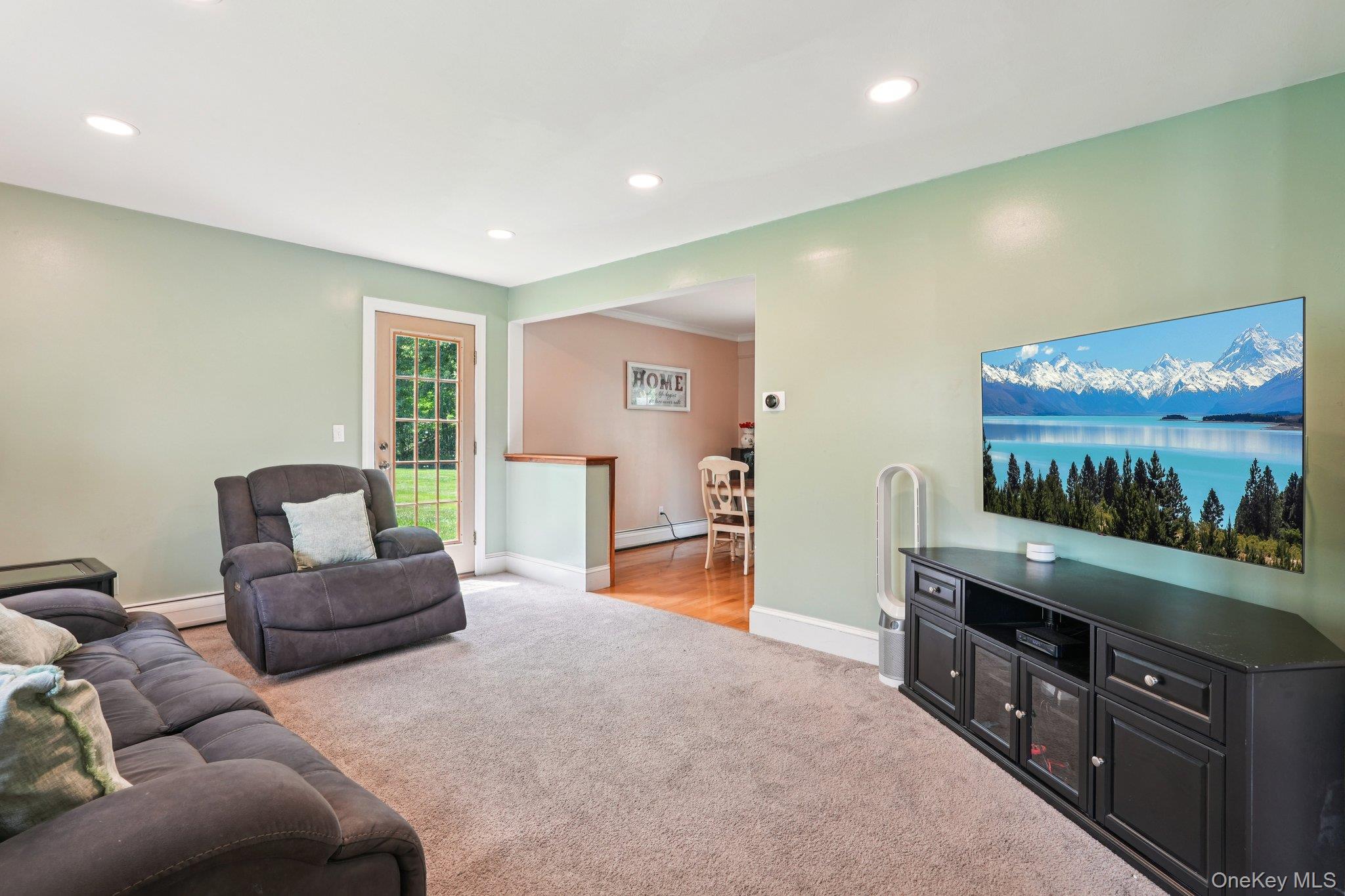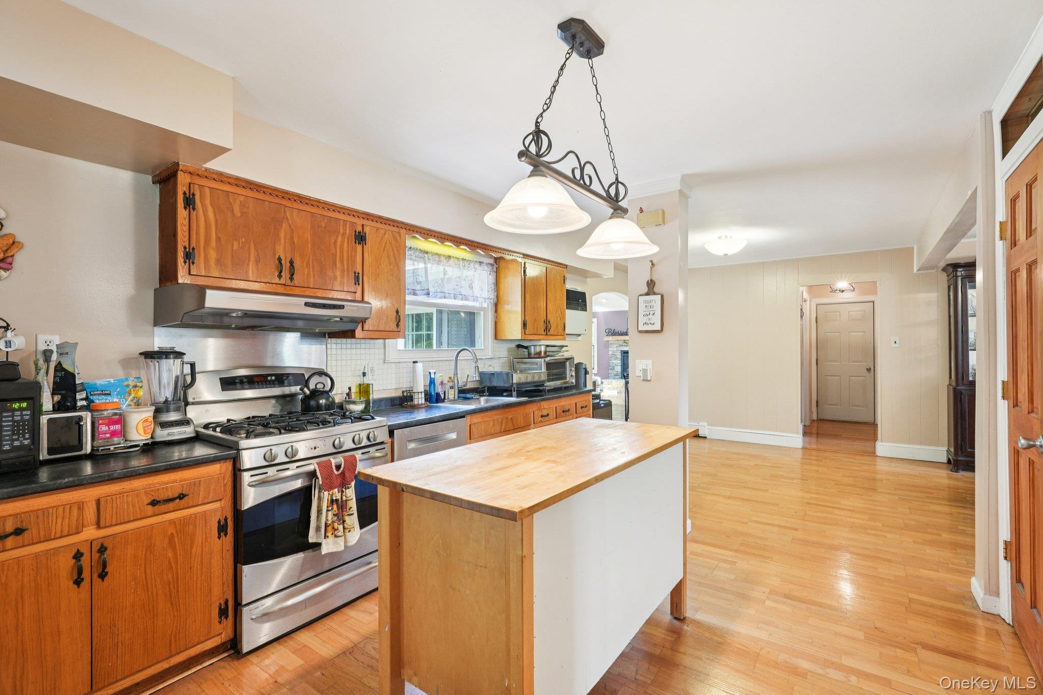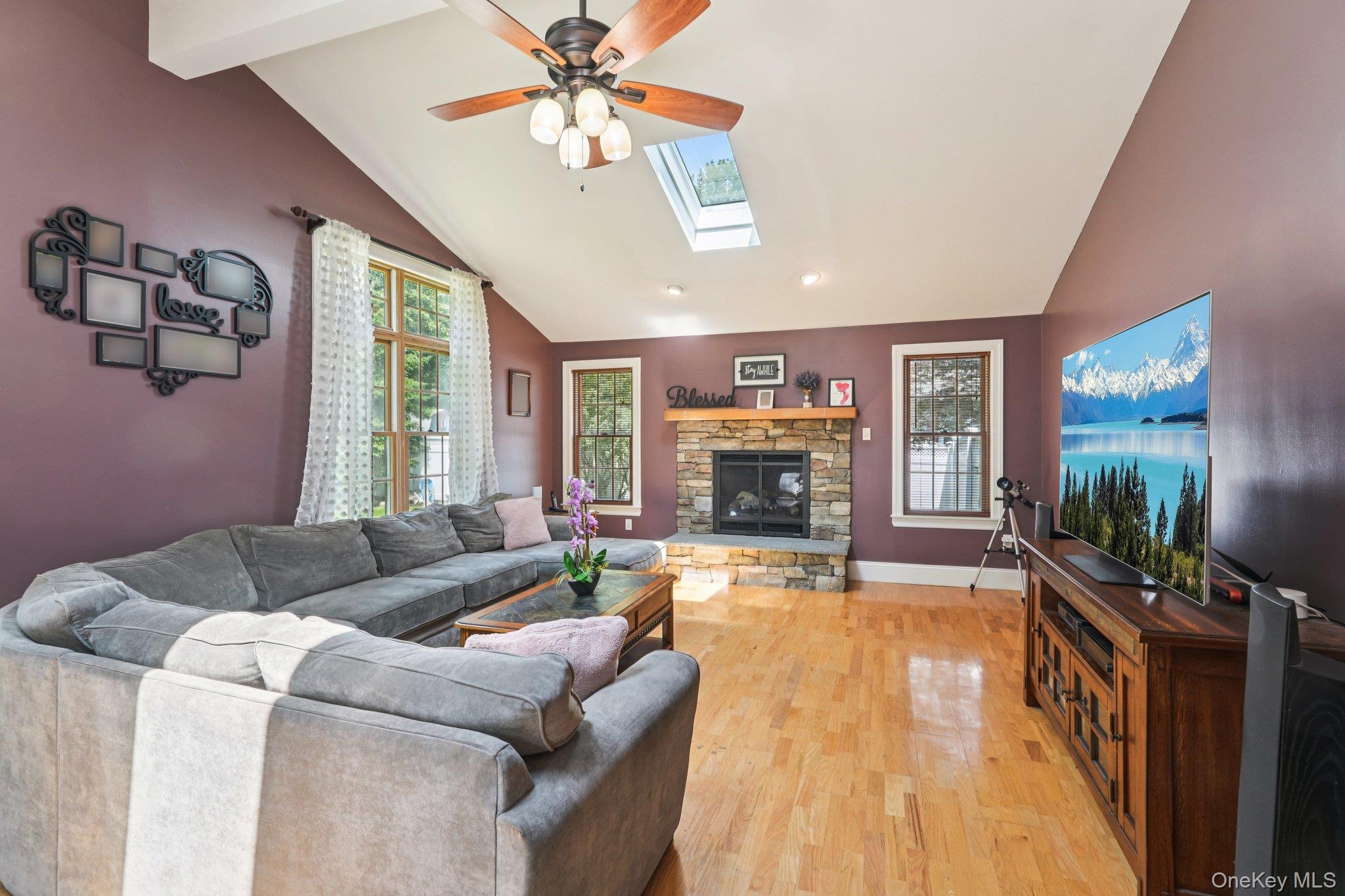 Welcome to Brenda Lane in Bardonia! This awesome colonial offers a formal living room with recessed lighting, large dining room and a spacious open eat-in kitchen floor plan. Boasts an amazing bonus family room addition with cathedral ceiling, new skylights and gas fireplace. Just perfect for entertaining!! A den off the kitchen that’s ideal for a home office, playroom or guest room. Features hardwood floors throughout. Master bedroom suite with a huge walk-in closet plus a second closet. 3 additional spacious bedrooms. Countless updates including: roof, siding, front door, boiler, water heater, dishwasher, brand new washer/dryer, bathrooms and even smart thermostats. This beauty has great curb appeal with beautiful oversized new driveway with Belgium block and garage. The private wooded backyard shows like a dream with new patio, built in fire pit and your very own basketball court. A perfect yard for family fun and parties. Shed and front & back underground sprinklers too! Conveniently located near public transportation, shopping and major highways. All this and award winning Clarkstown schools. This home definitely checks off all the boxes!