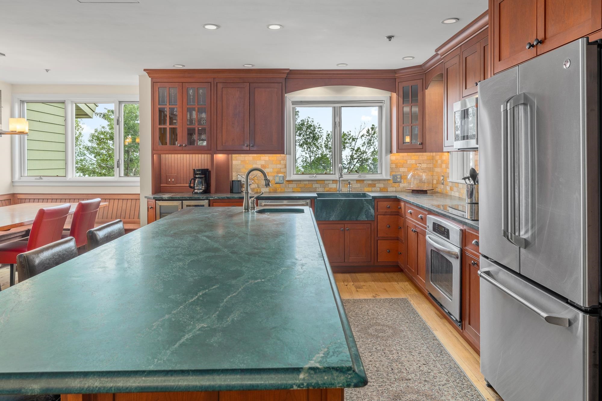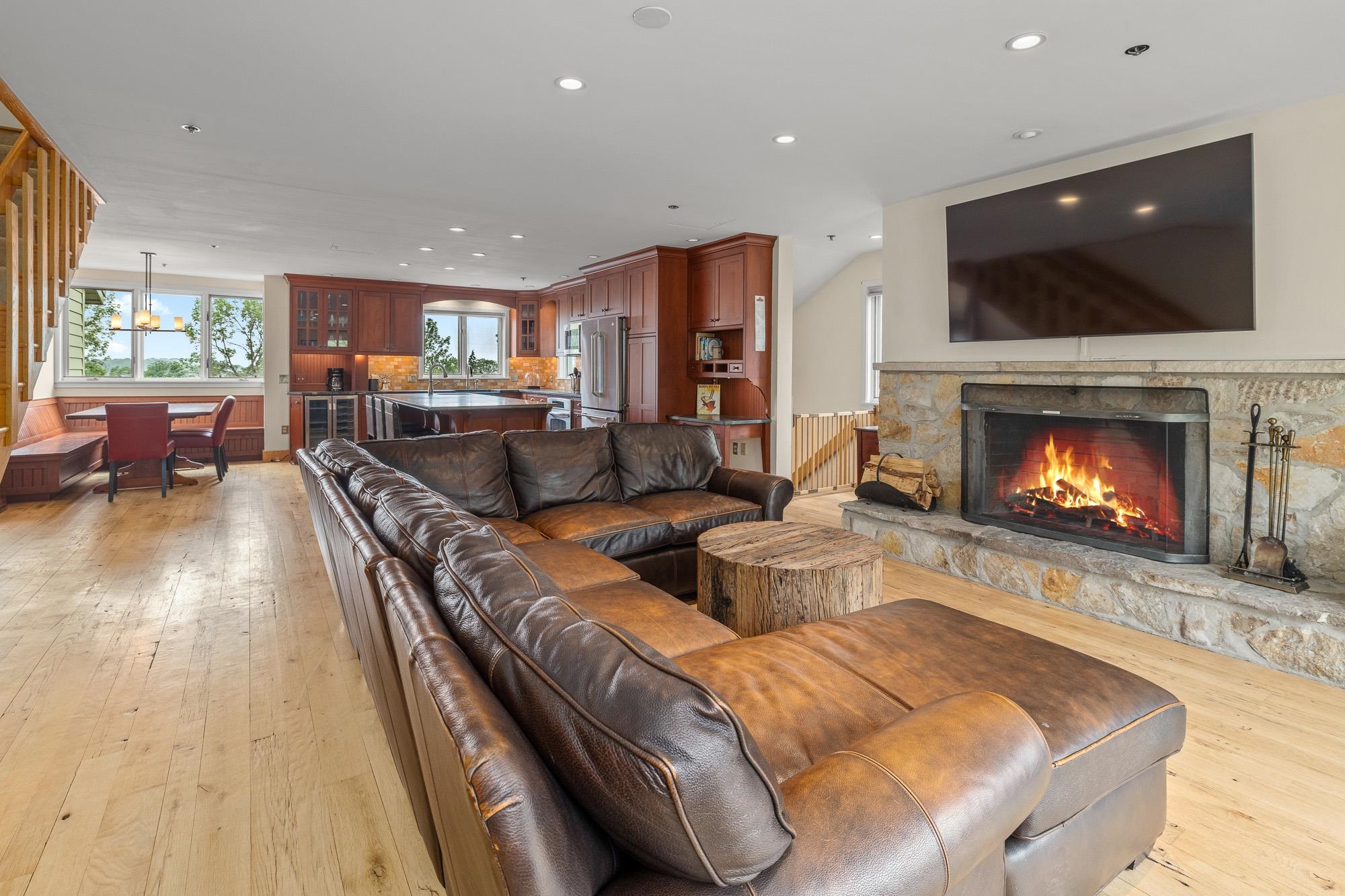 Experience this Extraordinary Location in the heart of the Stratton Resort Village from this RENOVATED and EXPANDED Village Square 4 bedroom unit where you can walk to everything and be on the lifts in just a few minutes. Nothing compares to trailside living in the VILLAGE where convenience abounds and you won't touch your car until it's time to hit the highway. Ski home for lunch and you'll have the best apres ski experiences in your beautifully renovated great room and kitchen. Gather around the oversized kitchen island for buffet and beverages, cozy up around the wood burning fireplace and gather in the dining area for dinner after a full day on the slopes. The unit comfortably accommodates friends and family with a current bed set up for 10. A mudroom entry, and 2 parking spaces beneath the Landmark and Sport Center eligibility, bring ease to your premier resort getaway. Whether you are a winter weekend warrior, have kids in the ski or racing programs, die hard mountain bikers or golfers, this location will be an exceptional home base for the mountain lifestyle you create. Don't miss the opportunity to own a rare Village location. There's nothing like it!