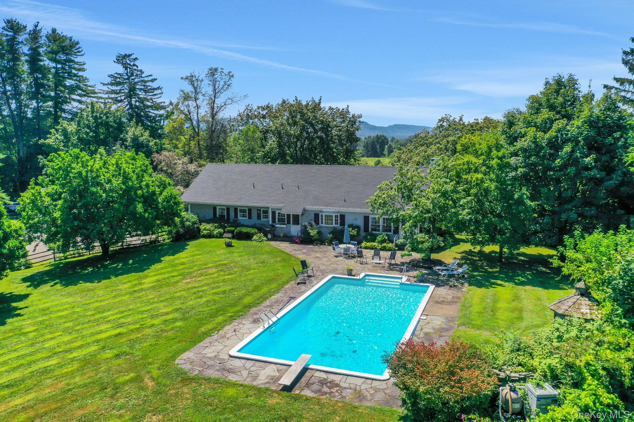 Offered for the very first time, this lovingly built and maintained 1950s ranch with full walk up attic, sits on 2. 65 picturesque acres and delivers sweeping views of the Shawangunk Mountain Ridge from the front and the Catskills from back of the home. Elevated far off the road behind a meandering driveway, the property offers a sense of privacy, tranquility and space, with a front lawn that feels like a private park and a backyard that invites you to slow down and stay a while. The 2, 314 sq ft home features 3 bedrooms and 3 full baths, with generous living spaces and easy, one-level living. The living room is anchored by a classic wood-burning fireplace flanked by built-ins and windows that let in natural light and frame the expansive landscape outside. Lovingly preserved and always meticulously maintained, this home offers a timeless interior that can be enjoyed as-is or reimagined to provide a great canvas for future vision plus your personal touch. A basement area, easily brought to life with the benefit of the 3rd full bath, and second fireplace, connects to the drive-under oversized two-car garage for practical access and extra flexibility. The full walk up ''attic'' provides additional, convenient storage and potential future living space, if desired The real showstopper here is the backyard: secluded and peaceful with a manicured lawn, curated gardens, and a sparkling in-ground pool — all surrounded by mature trees for extra privacy set against the backdrop of the sky and the Catskill Mountains in the distance, create an experience ideal for both relaxing and entertaining. Whether it's morning coffee on the porch, volleyball on the lawn or an afternoon by the pool, the outdoor spaces here invite every kind of enjoyment. Located just minutes from the charming hamlets of High Falls and Stone Ridge, you're close to local shops, farm stands, restaurants, and trailheads — yet set apart enough to savor the stillness. This is a very rare opportunity to own a property with privacy, space, views, and limitless potential in one of the most scenic corners of the Hudson Valley. ACCEPTED OFFER 10/17/2025