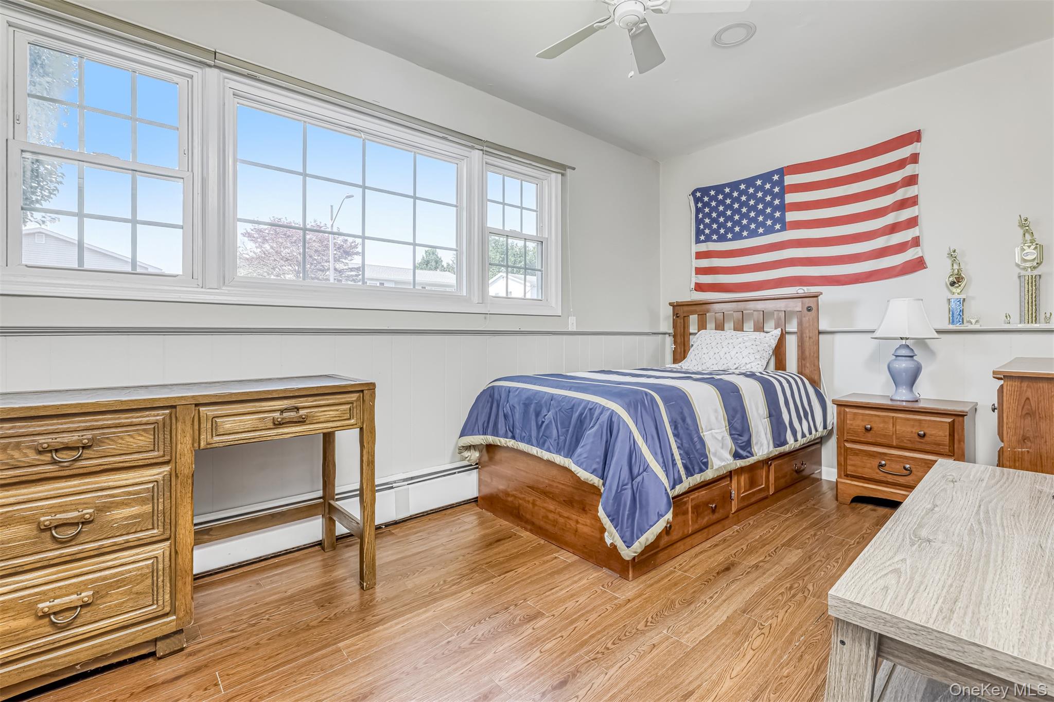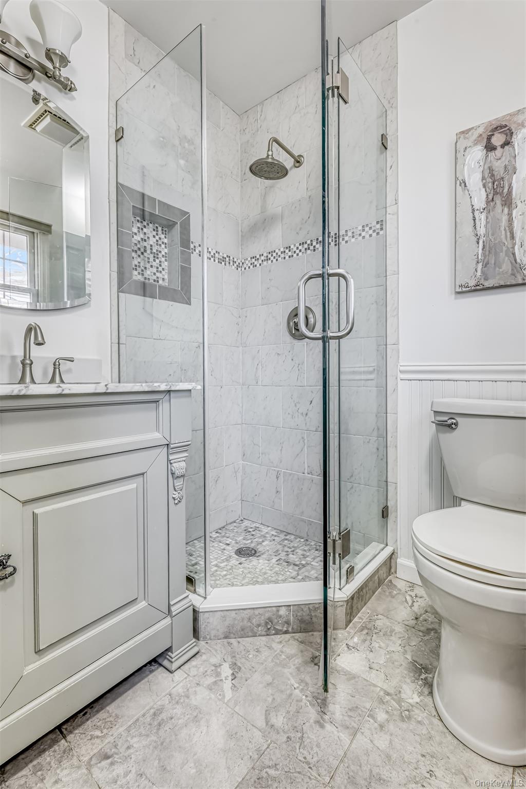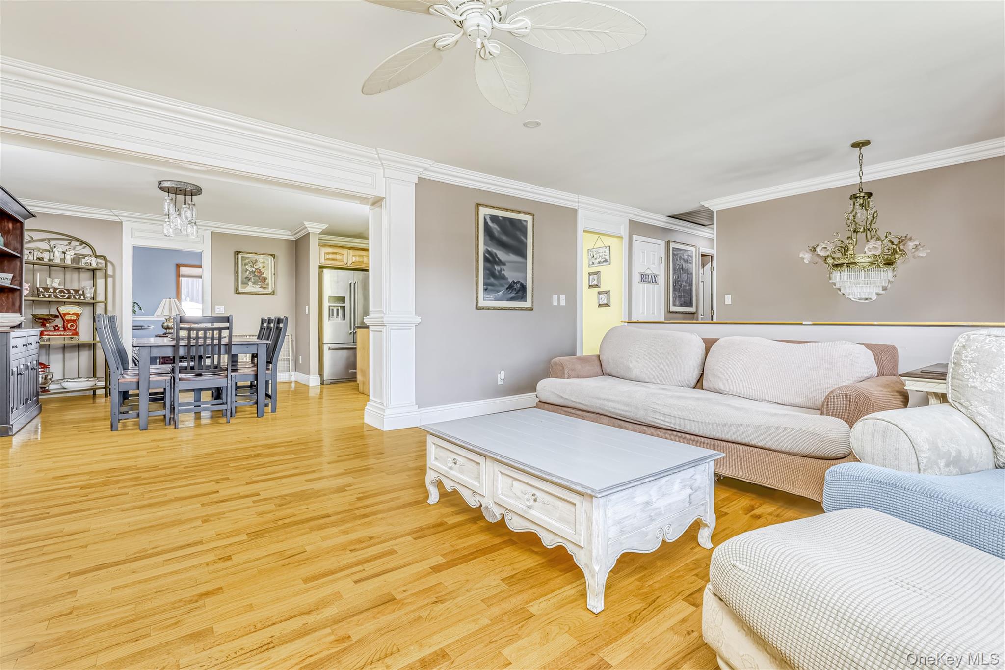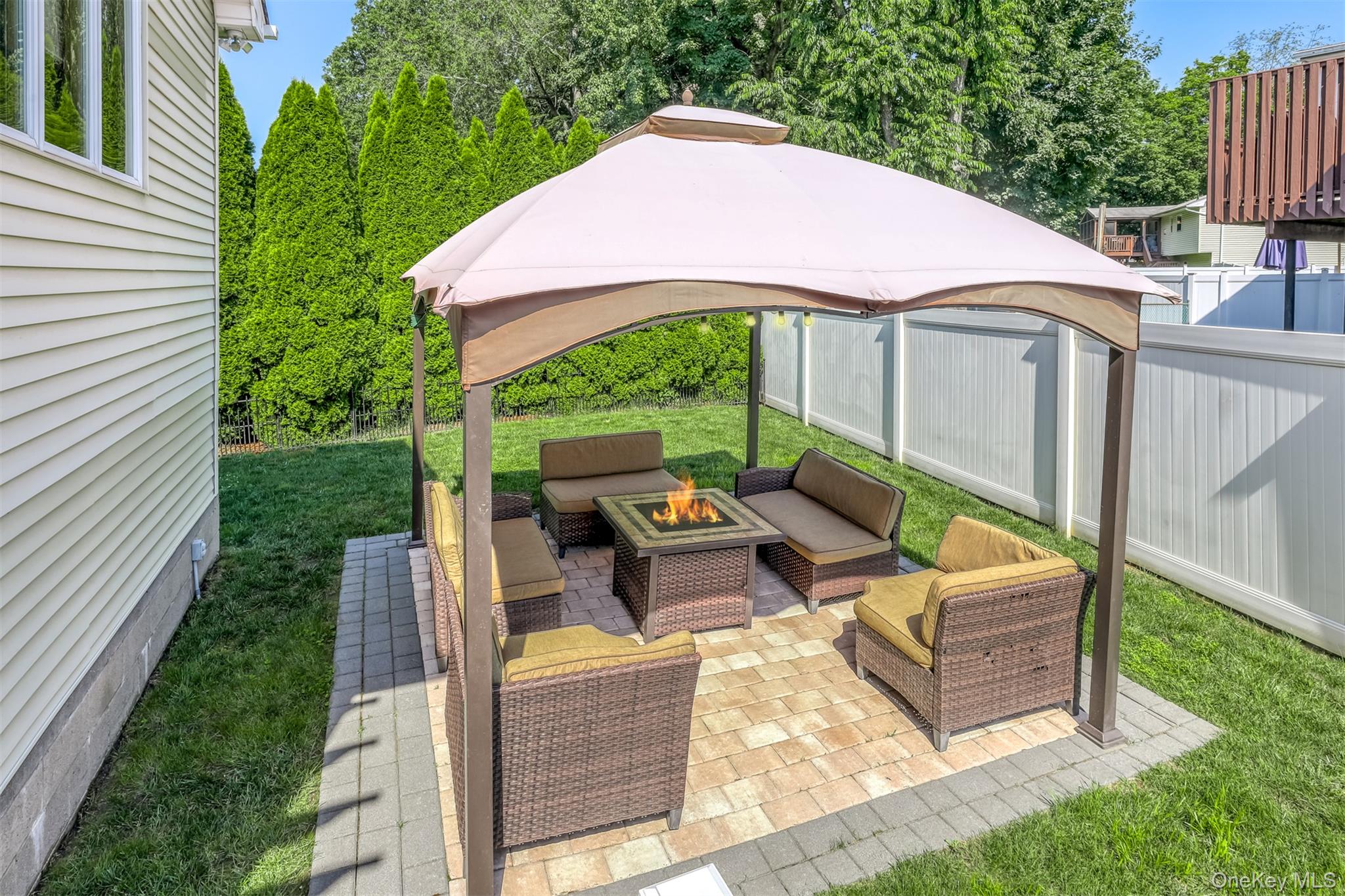 Welcome to this beautifully updated, move in ready, 5 bedroom, 3 bath, Raised Ranch situated on a spacious corner lot. This light-filled home features hardwood floors throughout, crown molding, and an open concept layout ideal for everyday living and entertaining. The designer kitchen boasts granite countertops, stainless steel appliances including a Wolf oven, island with seating, and stylish finishes throughout. A bonus sunroom with doors that lead to a Trex deck, perfect for summer barbeques or relaxing. Downstairs offers a versatile family room with a brick wall and remote controlled gas fireplace, ideal for a cozy retreat, plus a guest suite. All three bathrooms have been recently renovated. Additional highlights include a tankless water heater, new driveway, roof, paver patio, bluestone flower bed, shed (detached with electric), extra storage under the porch, security cameras outside and both a pergola and gazebo included. Don't miss this incredible opportunity!