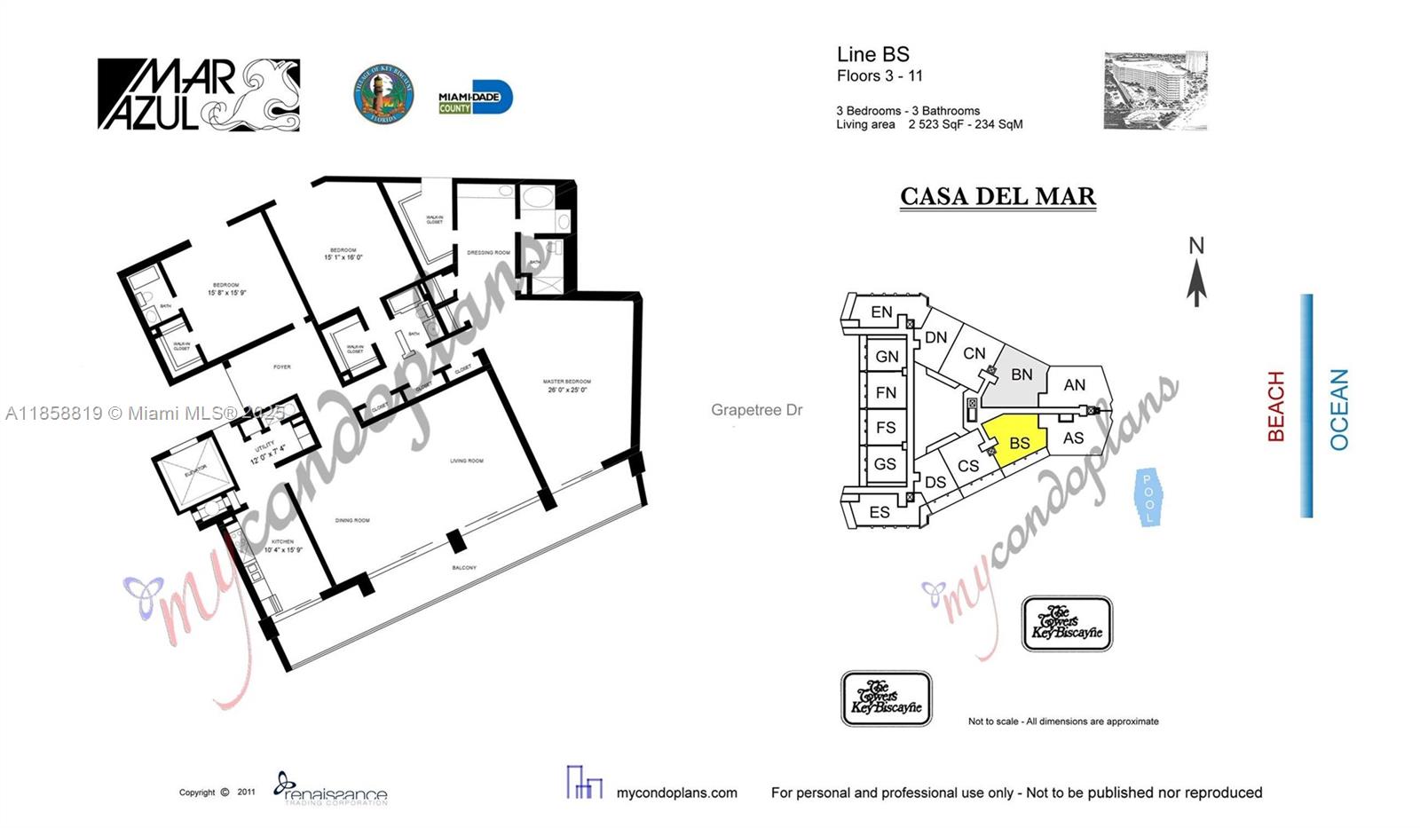Rarely on the market! Located at the prestigious Mar Azul Condominium, an oceanfront boutique residence with only 126 units & direct beach access. This spacious 3-bedroom, 3-bath home spans 2, 523 sq. ft. The elegant open layout blends a fully renovated kitchen with expansive living and dining spaces, perfect for entertaining. Each bedroom is a generous suite with modern baths, complemented by abundant storage. A wraparound balcony embraces the reception and primary suite, unveiling uninterrupted ocean vistas. Semi private elevator lobby shared with just one neighbor.