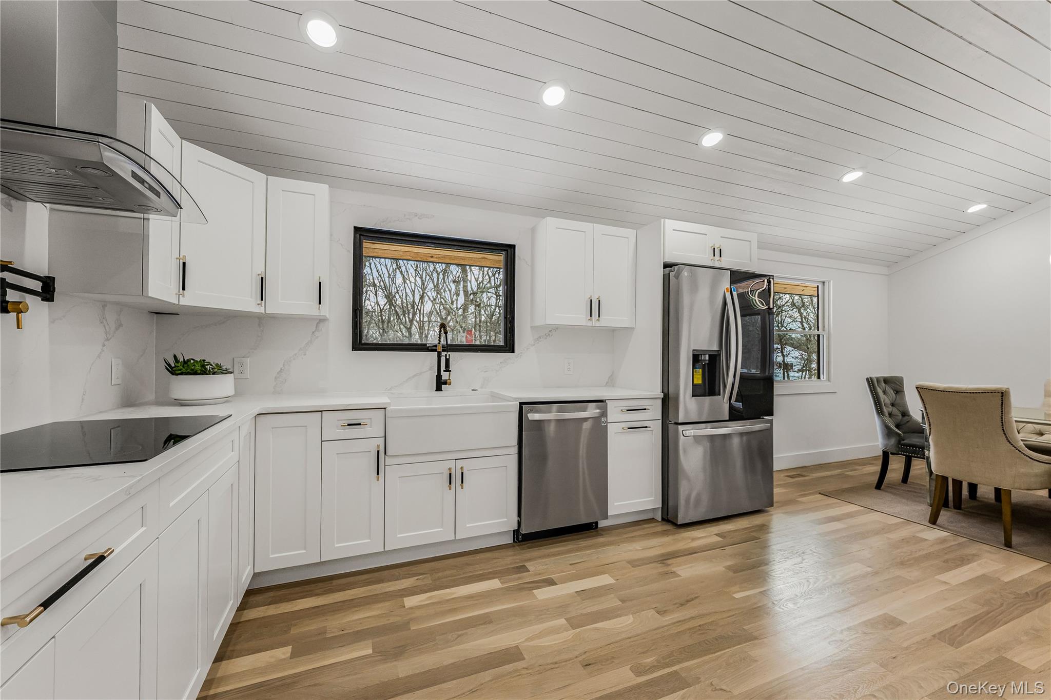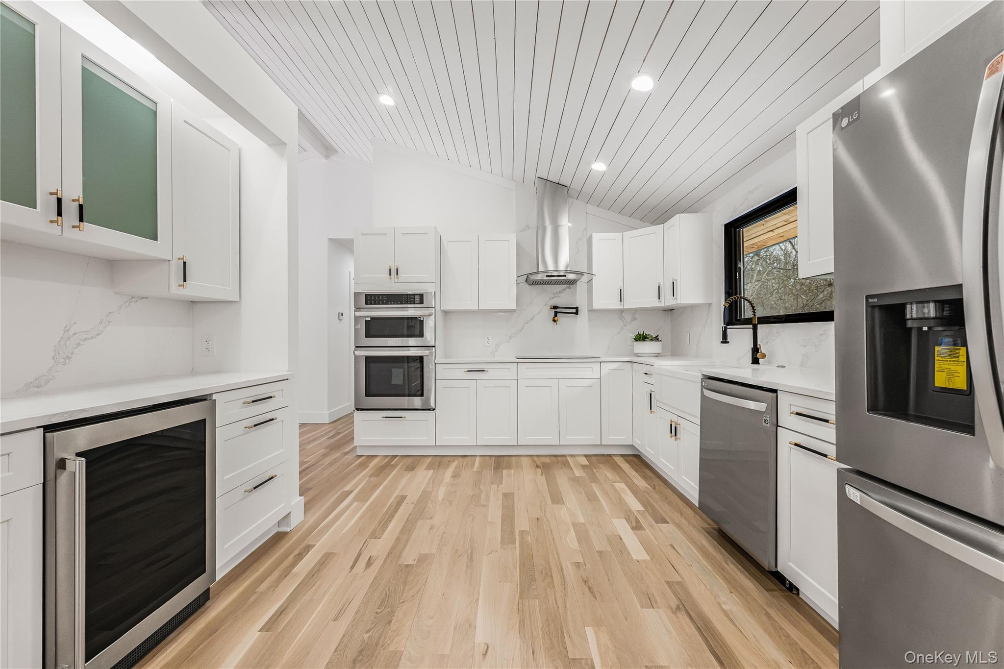 Welcome to 105 Old Riverhead Rd, Experience the best of the Hamptons living in this great High Ranch, modern elegance Perfectly positioned on a spacious 2. 64 acre lot in the heart of Hampton Bays, where this home being renovated throughout offers 4 bedrooms, 3 bathrooms, and over 2. 600 square feet of meticulously designed. the welcoming covered balcony on the side and rear set the stage for year-round indoor-outdoor living. Inside, the home impresses with soaring ceilings, oversized Andersen ENERGY STAR windows. Throughout the home, upstairs, wide-plank white oak hardwood floors add warmth and character, while the designer kitchen features Avanti quartz countertops, stainless steel appliances, 3 bedrooms filled with natural light, along with 2 well-appointed bathrooms throughout. and sleek finishes ideal for both everyday living and entertaining. Downstairs, the thoughtfully designed layout includes 2 bedrooms, laundry, full bathroom and the recreation space offers bar zone and wine fridge. the ultimate retreat. Step outside to your own backyard oasis complete with a heated pool, surrounded by elegant oak wood coping, curated landscaping. A car garage with dual electric doors adds convenience and functionality. Additional Features & Energy-Efficient Upgrades Include: central vacuum, Navien tankless hot water heater, Dual-zone central air & gas furnace HVAC system, Closed-cell spray foam insulation for superior thermal performance, Andersen Low-E windows for reduced heat transfer and UV protection, High-efficiency plumbing and mechanical systems throughout Located just minutes from beaches, bays, shopping, and dining, this exceptional home captures the very best of Hamptons living-offering a sophisticated yet relaxed lifestyle in a coveted coastal setting.