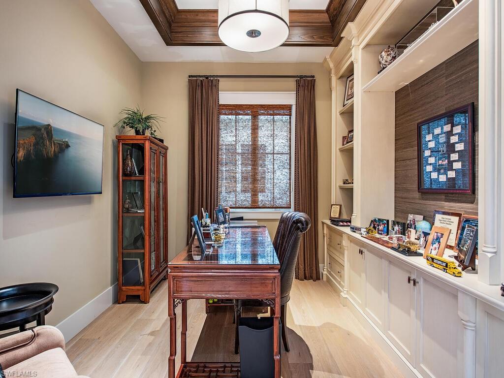 An exceptional waterfront residence in Mangrove Bay, this customized Amelia II plan perfectly captures the relaxed elegance of Naples living. Featuring rarely available direct water views in Mangrove Bay, the home blends the comfort of single-family design with the ease of condo-style convenience. Ideally situated in the heart of downtown, the 3, 607 sq. ft. residence offers desirable southern exposure, a gas-heated pool and spa, a 2-car garage, superior finishes, and a covered boat slip with a 16, 000 lb lift. The gourmet kitchen showcases Ruffino cabinetry, quartz countertops, and top-tier Wolf and Sub-Zero appliances. A thoughtfully reimagined open floor plan highlights a dramatic 13-foot bar equipped with a Sub-Zero wine cooler, beverage drawers, and a clear ice machine—designed for effortless entertaining. Wide-plank oak flooring, tongue-and-groove and wood beam ceilings, and expansive outdoor living spaces with a kitchen and automated screens/shutters further enhance the home’s appeal. Community amenities include a wellness center, kayak storage, and a private boat ramp, with Baker Park and the Gordon River Greenway just steps away. Residents also enjoy proximity to the new Gulfshore Playhouse, along with the fine dining and boutique shopping of 5th Avenue. This home embodies the charm of Old Naples while offering all the benefits of a true waterfront lifestyle. Agents, see confidential remarks regarding floor plan.