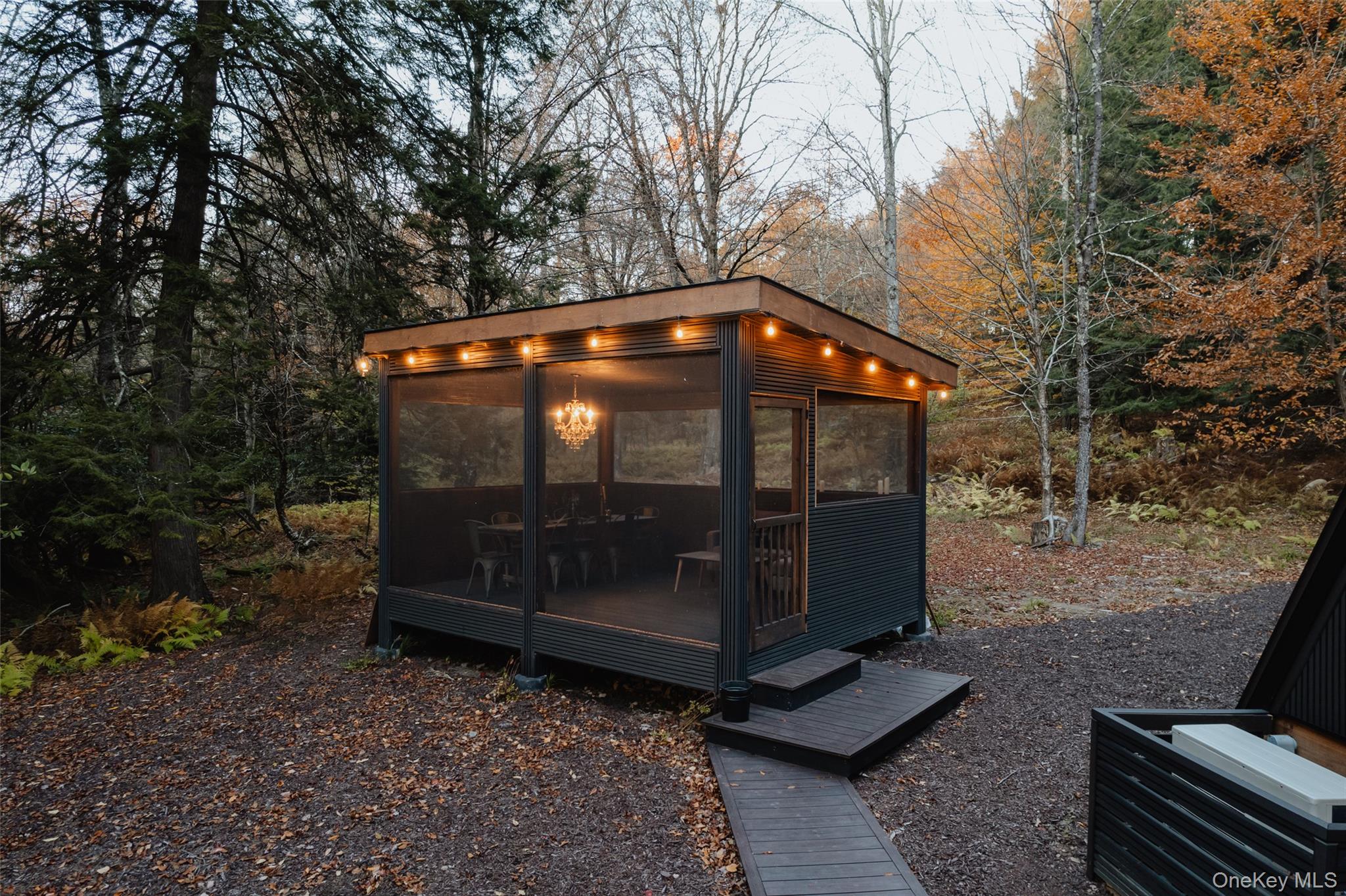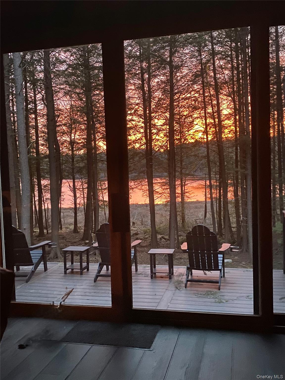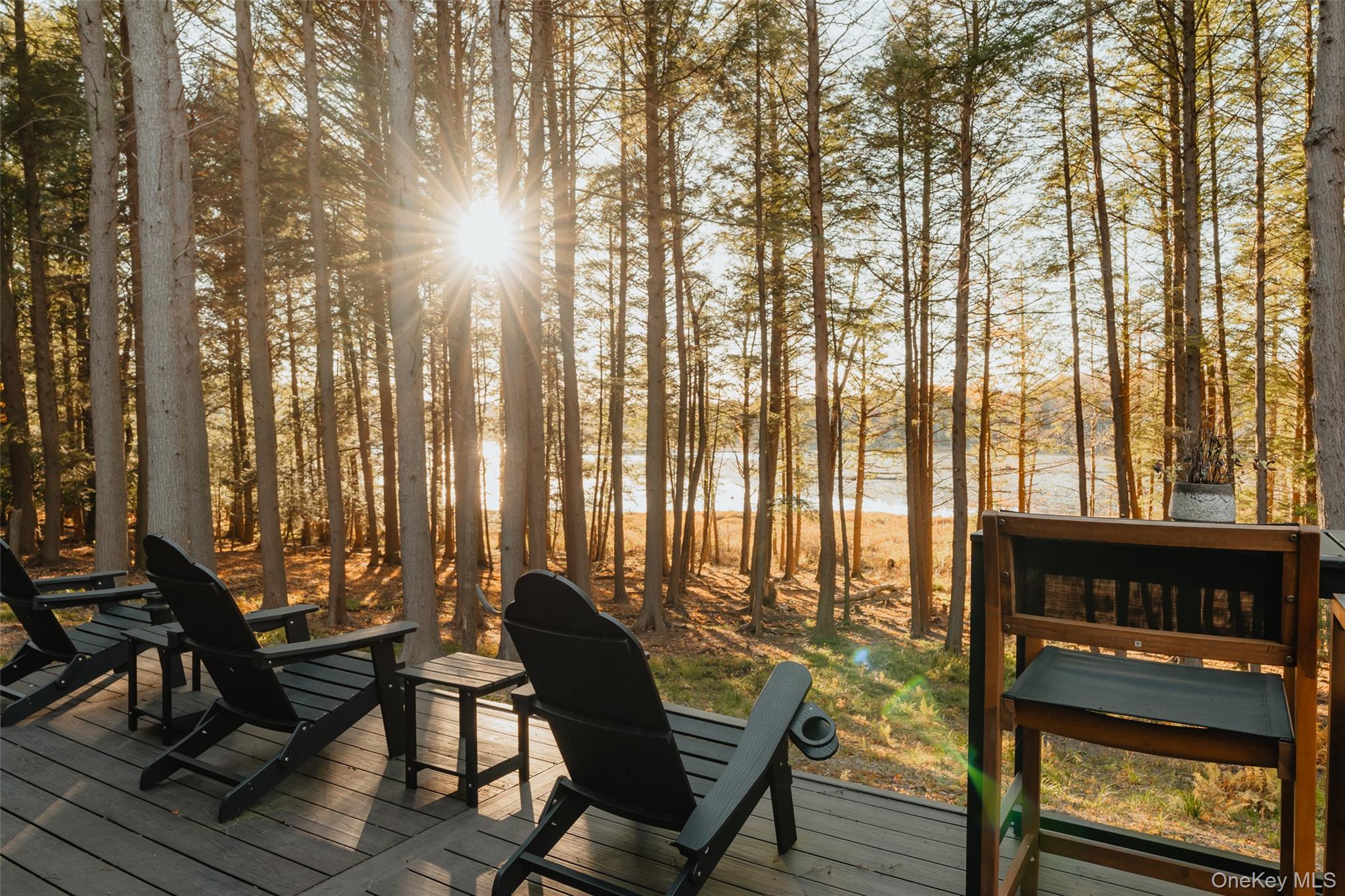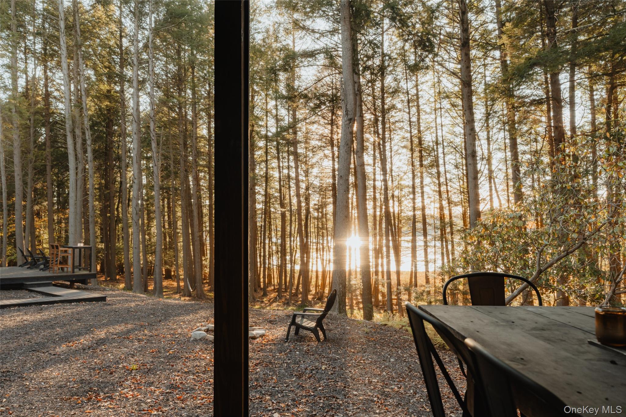 Escape to your own private woodland getaway in this striking double A-frame home, custom-designed by a local builder known for creating spaces rich in character and textures. Nestled on a secluded, lakeview-wooded lot, PerryWood exudes the charm and warmth of a classic A-frame, but delivers the space and comfort of a full-size home with 3 bedrooms and full baths, a chef’s kitchen, 2 dining spaces, loft office, yoga studio, equipped gym, screen room, and two back decks. The large unfinished basement provides opportunity for additional expansion of living space. Built in 2021, Perrywood is offered with most of its furnishings which have been creatively curated to complement its unique design. Two hours from NYC and minutes to Bethel Woods Center for the Performing Arts. This is a lake "view" not lake "front" property-- there is NO RIGHT OF ACCESS to the private lake.