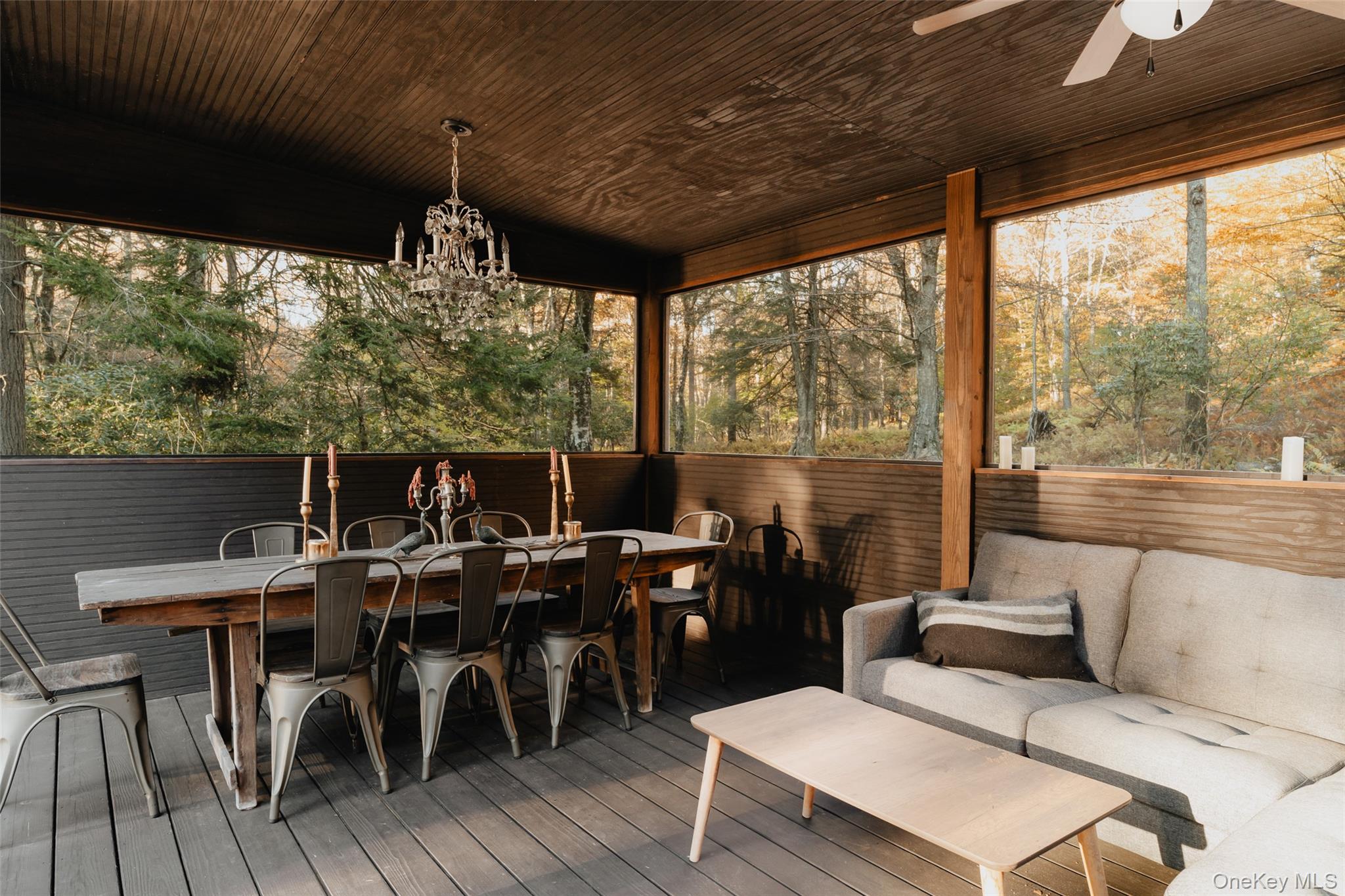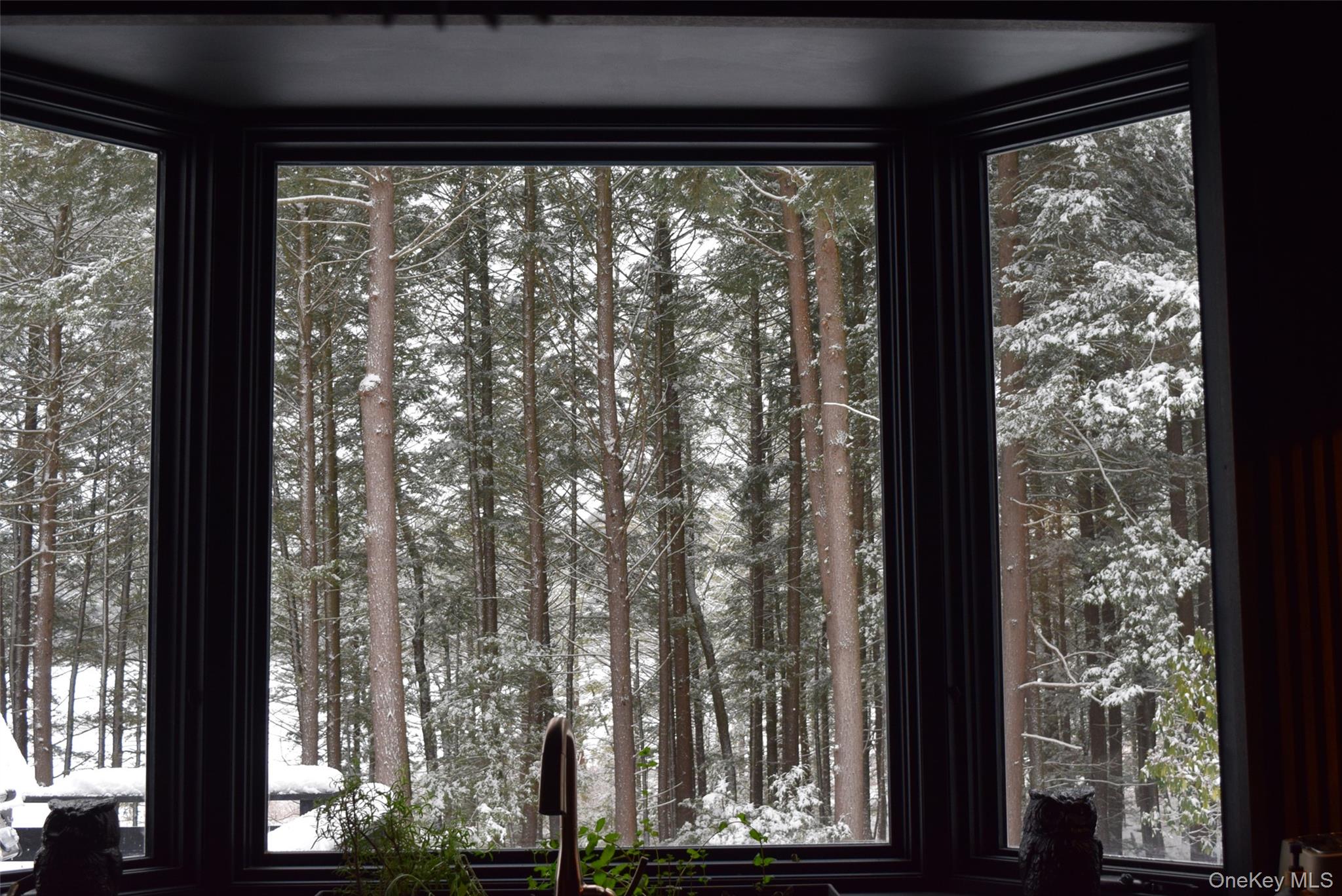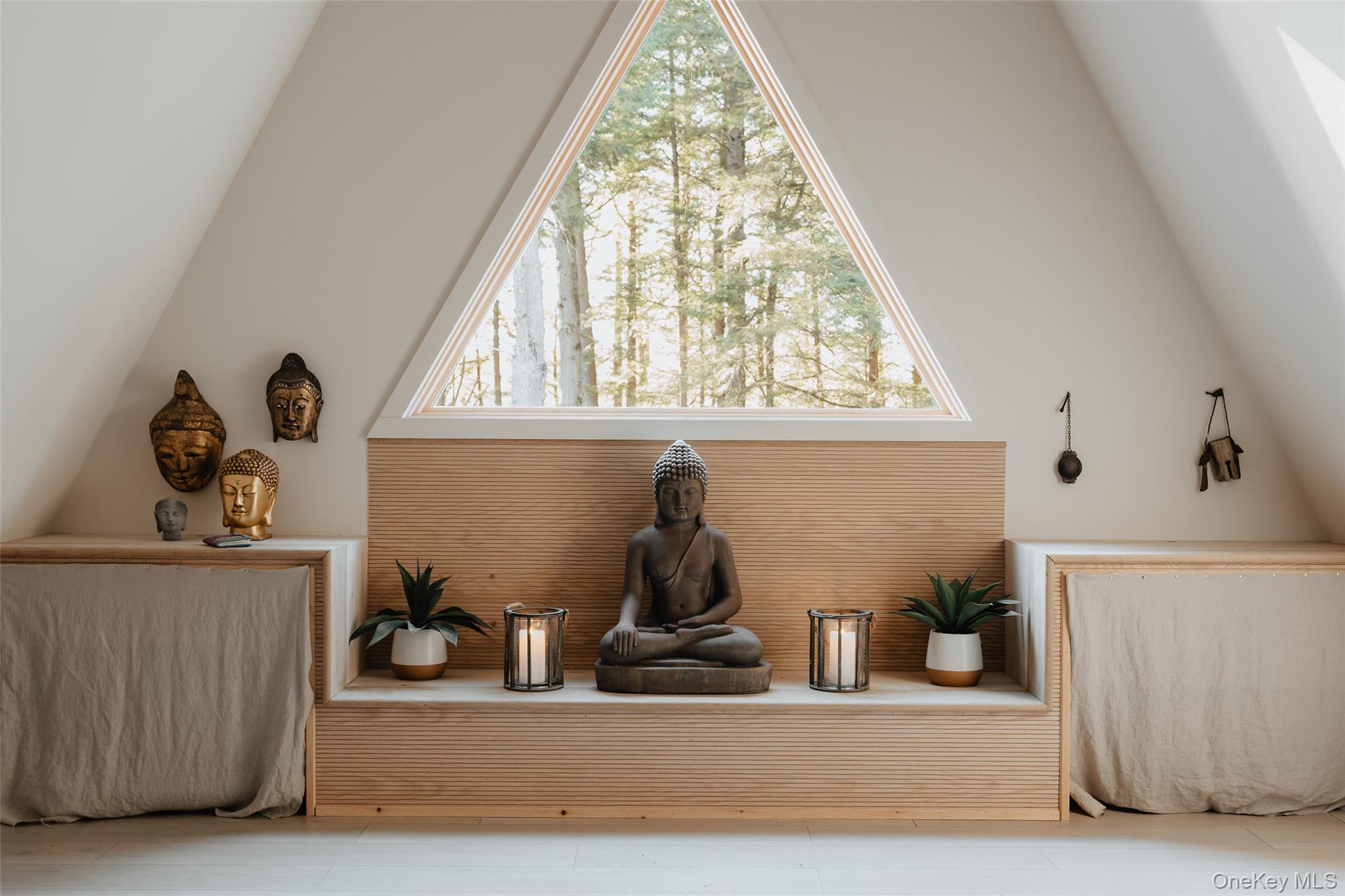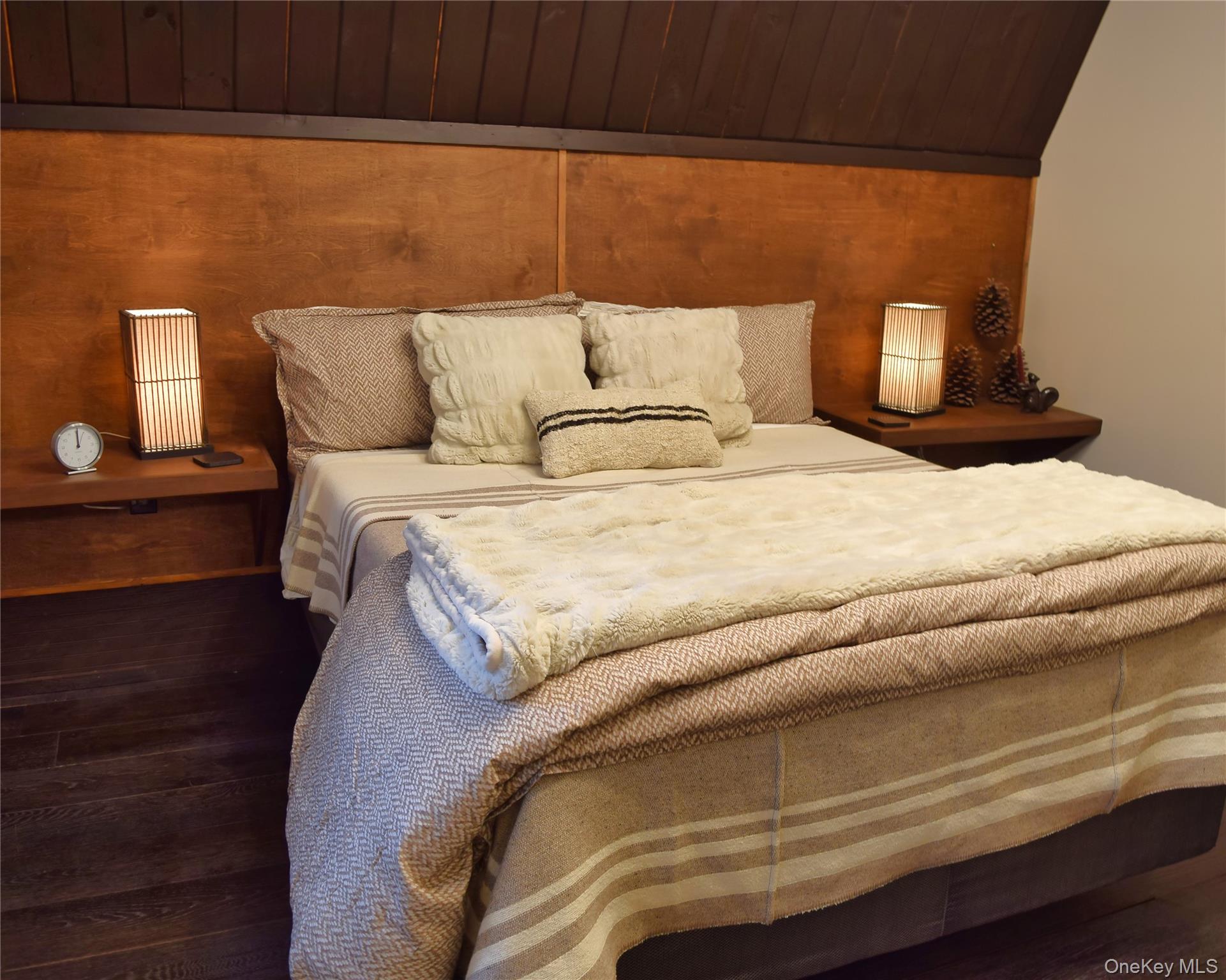 Escape to your own private woodland getaway in this striking double A-frame home, custom-designed by a local builder known for creating spaces rich in character and textures. Nestled on a secluded, lakeview-wooded lot, PerryWood exudes the charm and warmth of a classic A-frame, but delivers the space and comfort of a full-size home with 3 bedrooms and full baths, a chef’s kitchen, 2 dining spaces, loft office, yoga studio, equipped gym, screen room, and two back decks. The large unfinished basement provides opportunity for additional expansion of living space. Built in 2021, Perrywood is offered with most of its furnishings which have been creatively curated to complement its unique design. Two hours from NYC and minutes to Bethel Woods Center for the Performing Arts. This is a lake "view" not lake "front" property-- there is NO RIGHT OF ACCESS to the private lake.