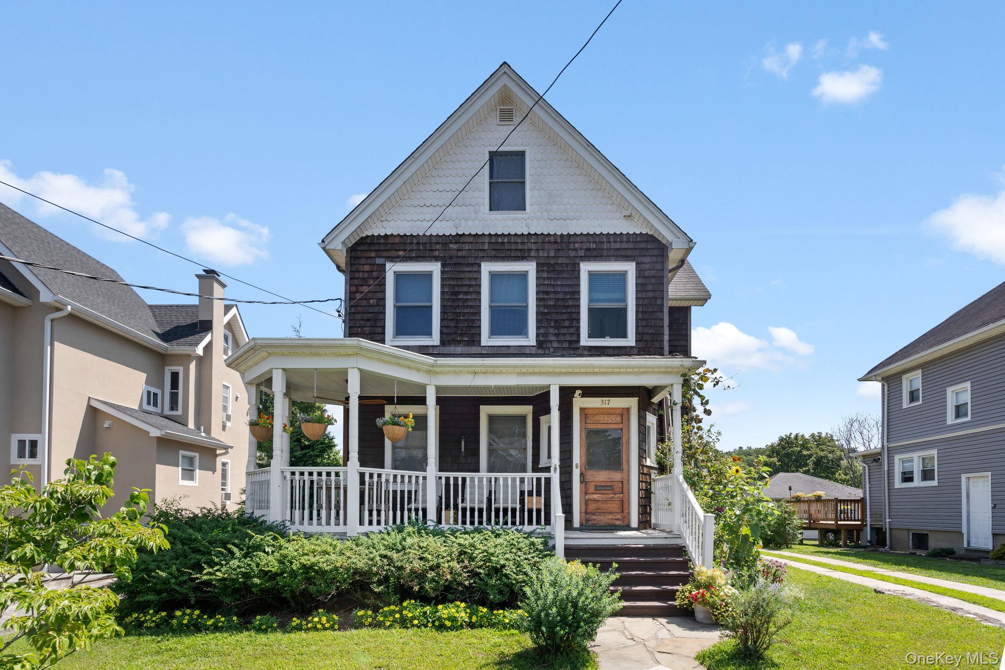 Enjoy the many perks of Peekskill living along the riverfront with its scenic park, flower-filled walking and biking paths, antique train station, and trendy restaurants just down the street from this beautiful Victorian home! Featuring spacious rooms, hardwood floors throughout, and antique touches from the turn of the century, this impressive property has so much to offer! With three bedrooms, two full baths, a lower level bonus room with half bath, plus an impressive walk-up-attic with partial river views and abundant light from every direction, this home lives like a five bedroom estate! Entertain with ease in the eat-in kitchen and formal dining room, with a split staircase and vintage archways leading into the sunlit living room. Relaxation is a dream as you listen to the song of the birds and the breeze on the quaint covered front porch, the peaceful covered rear porch, the private gravel patio, the grassy rear yard enveloped by flowers, and down the gated steps to the sunken rear terrace. Storage abounds outside thanks to the oversized 3 car garage, and inside with the unfinished basement/utility space. Centrally located, commute to the city with ease via the Peekskill Metro North Station only half a mile west, or the nearby Cortlandt Metro North station, Route 9A, and the Taconic Pkwy. Enjoy sunny days in the delightful Village of Peekskill nearby with an abundance of cafes, coffee shops, antique stores, and the landmark Paramount Theater. Come take a look today and make this amazing house your home tomorrow!