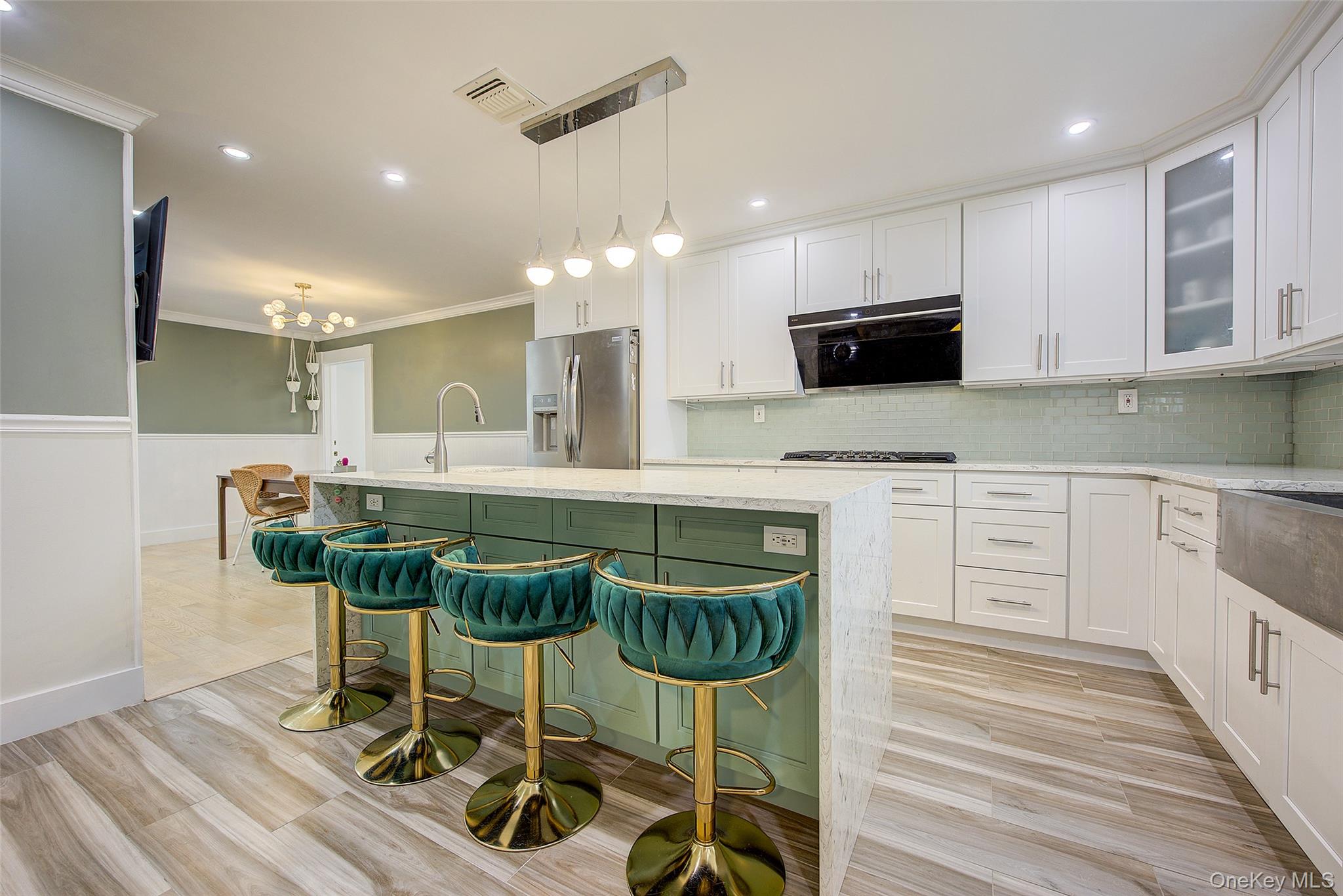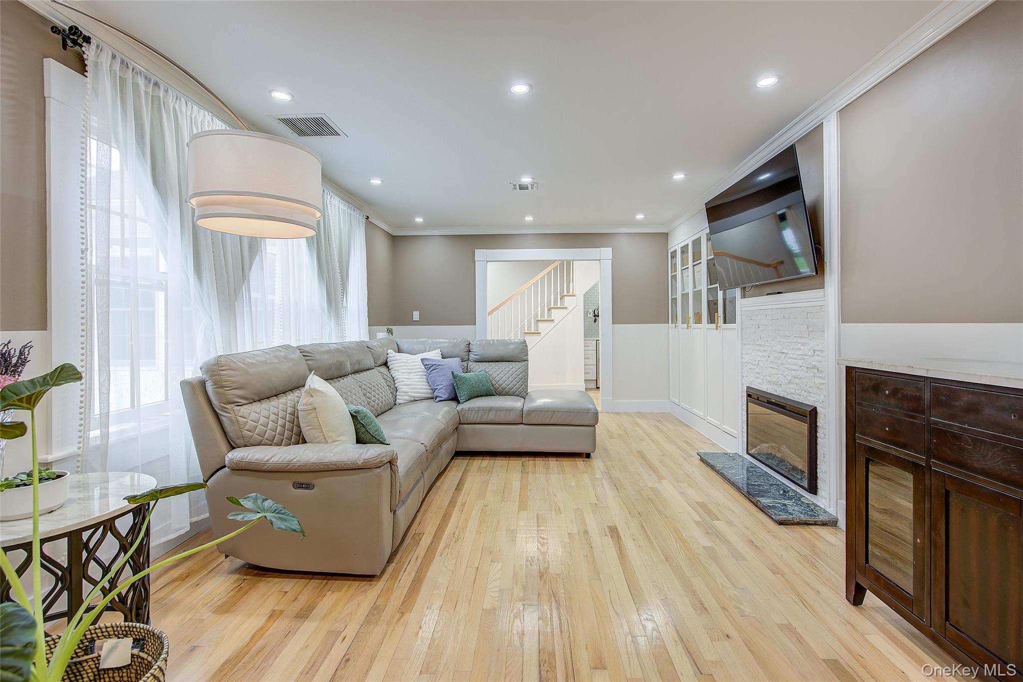 Welcome to this beautifully renovated home offering a total of 6 bedrooms, 4. 5 baths, and exceptional living space for modern comfort and style. Step into the inviting foyer and discover a cozy living room, an open-concept kitchen featuring a stunning waterfall island, dining area with fireplace, and a separate custom built coffee bar. A huge family room with custom blinds, built-in bookcases and direct backyard access. Additionally the main level includes a laundry room, half bath, and a convenient first floor bedroom with its own ensuite bath. Upstairs, you’ll find four bedrooms, two full baths, and a light-filled loft space with sitting area and seamless access to a fully finished attic boasting another private bedroom and full bath. Elegant modern updates shine throughout, with new recessed lighting, beautiful flooring, and thoughtful design details in every room. The outdoors are equally impressive, with a huge parklike private backyard, multiple access points from inside, stunning landscaping, new pavers, new fence, and a storage shed. A 1-car garage, private driveway, and welcoming curb appeal complete the picture. This home perfectly blends luxury, function, and charm - ready for you to move in and enjoy.