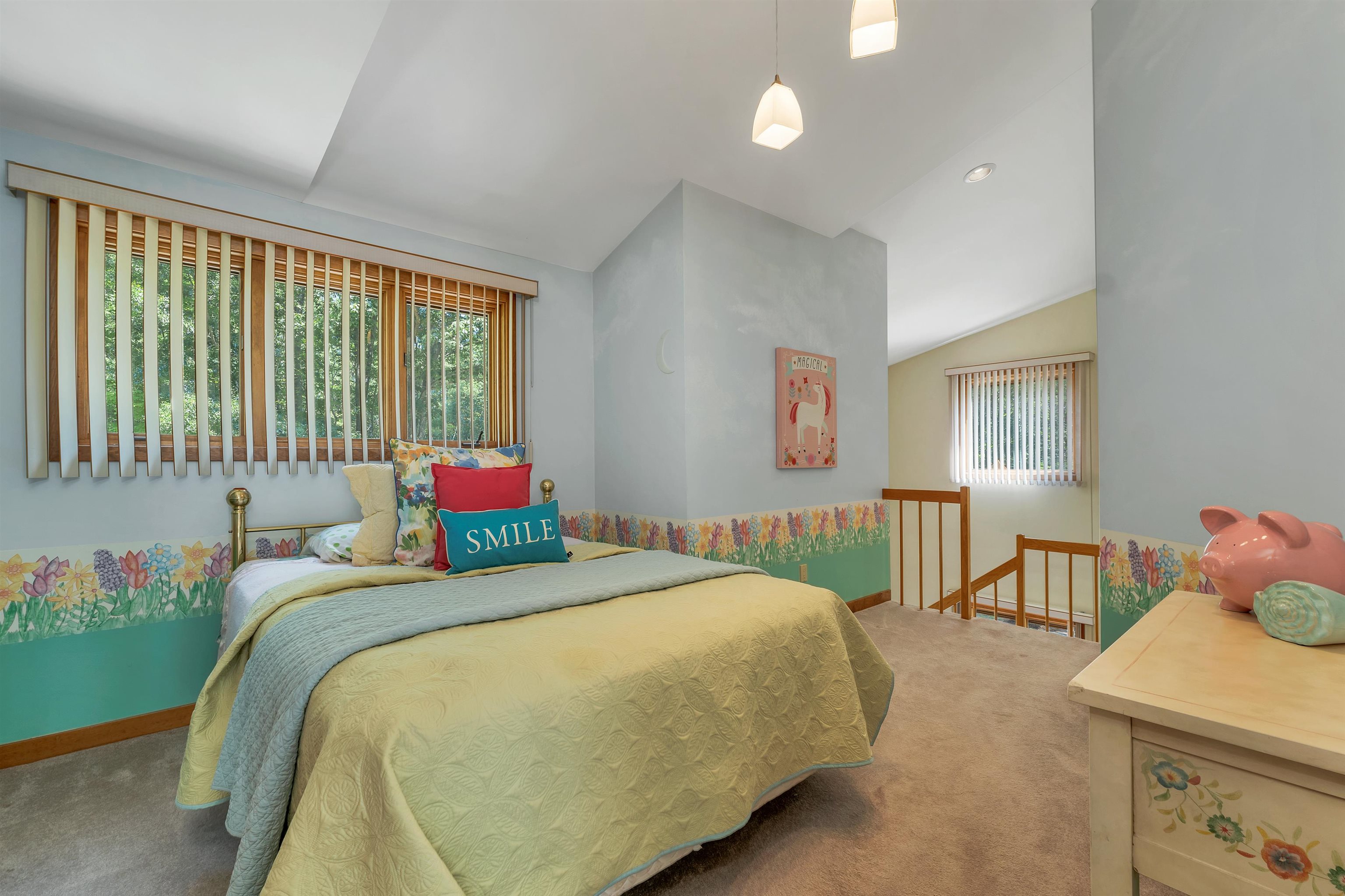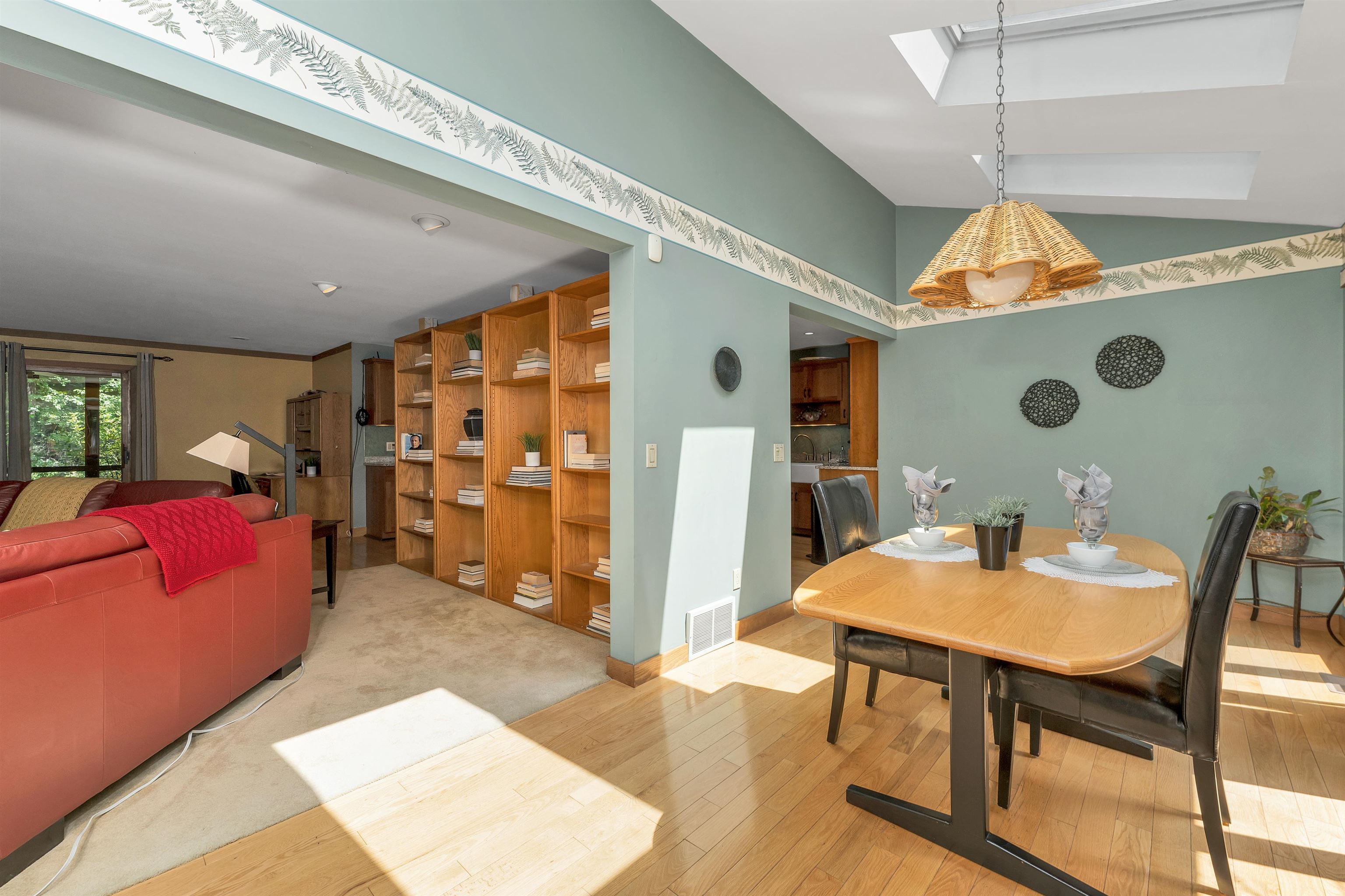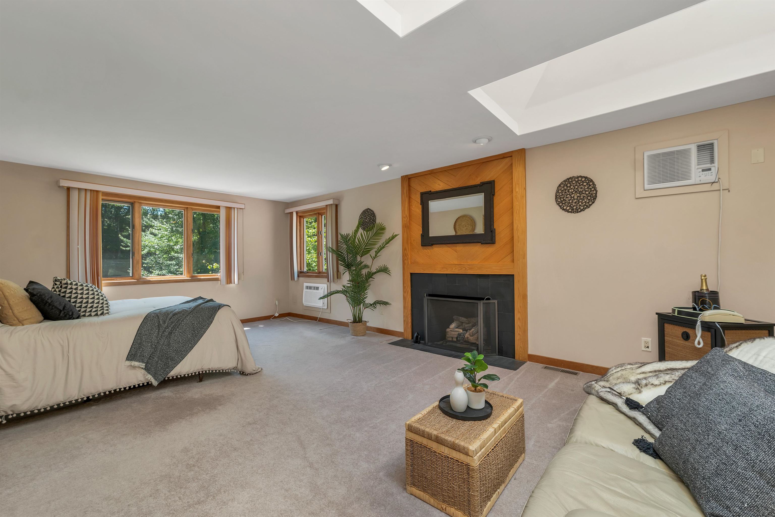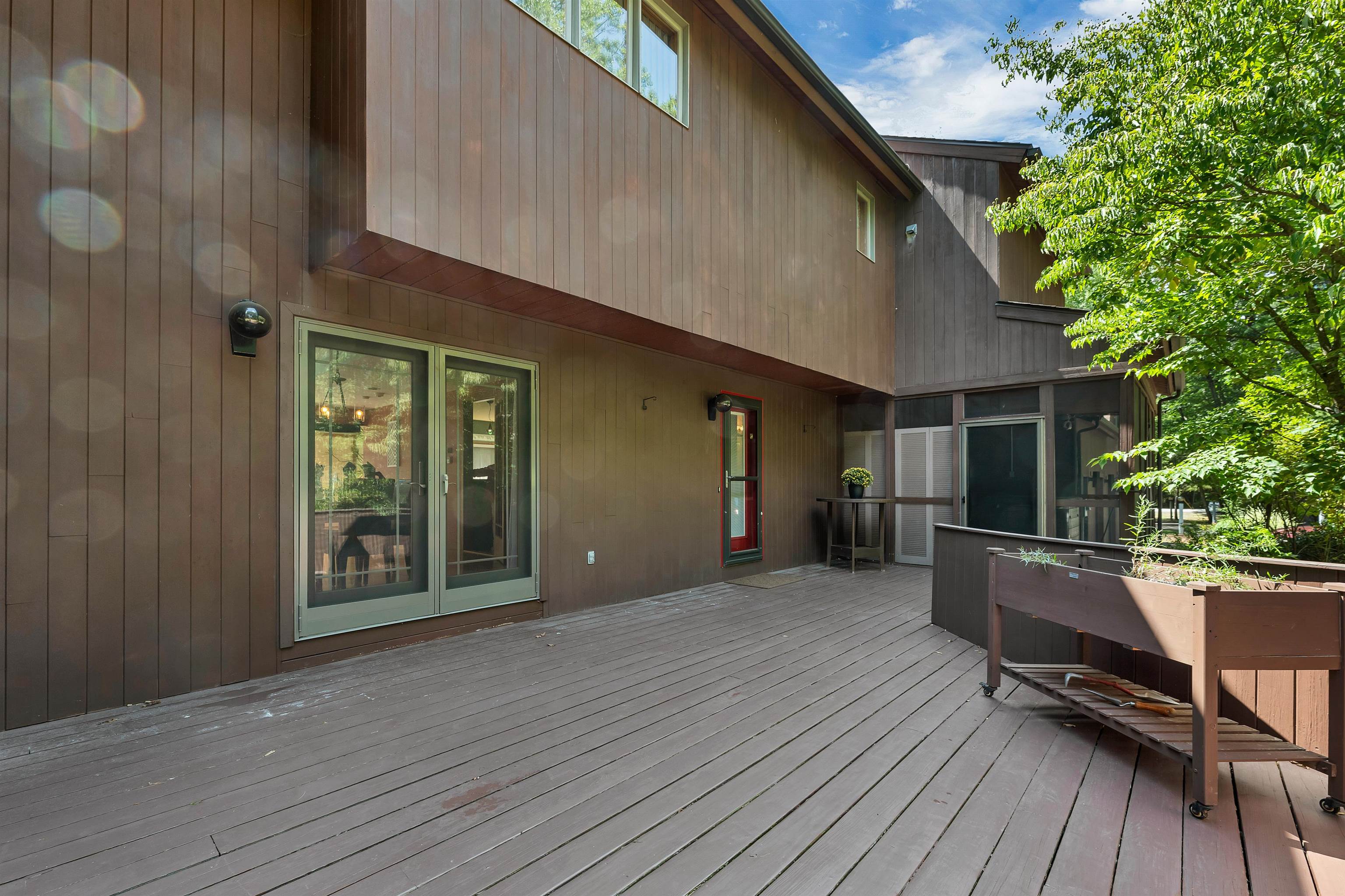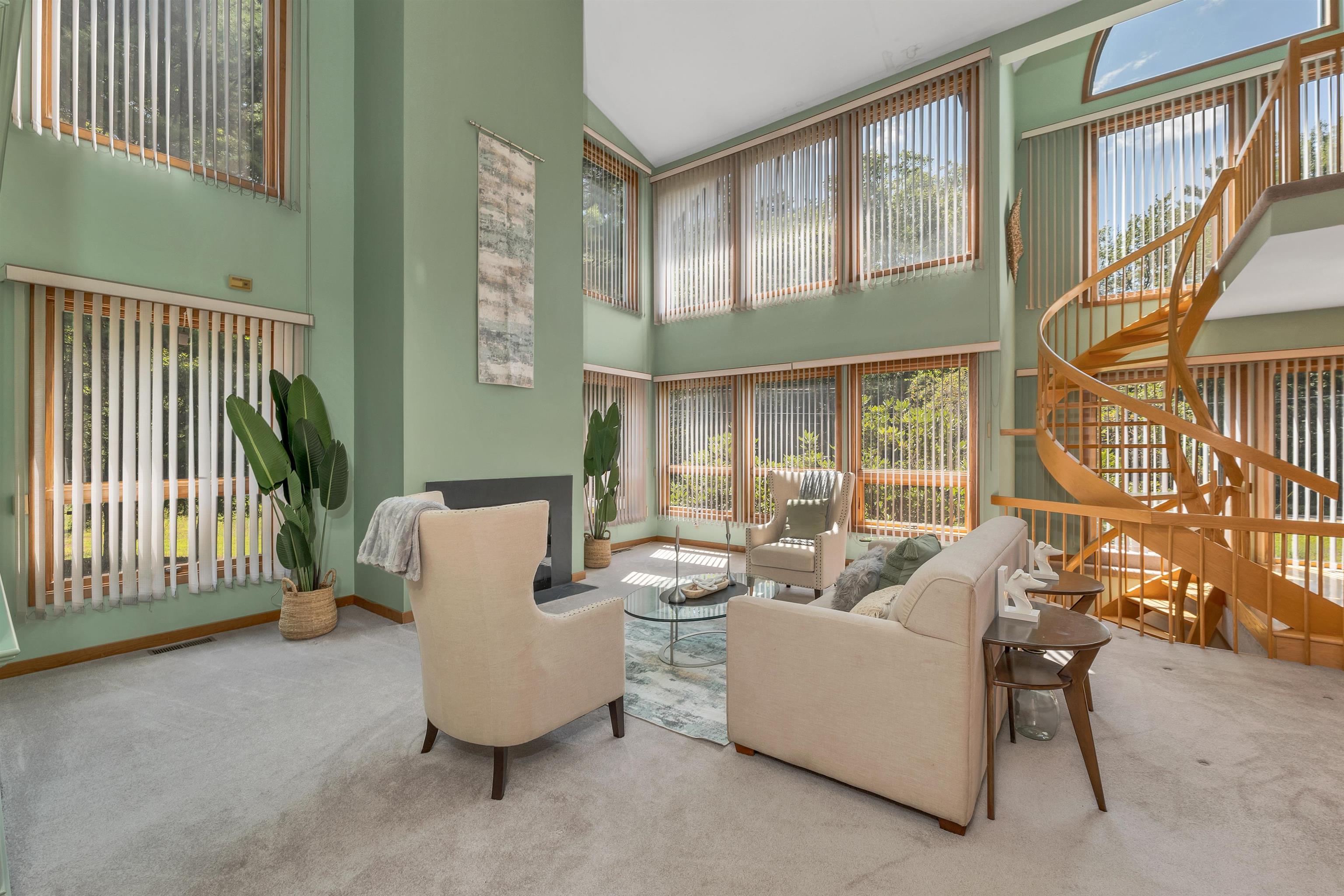 BACK ON MARKET! Amazing modern contemporary home, lovingly cared for over 30 years and solidly built by TF Moran with quality updates throughout. Beautifully landscaped and thoughtfully designed, this south-facing redwood home features striking truss construction. Updated nearly 2, 000 sq. ft. IN-LAW APARTMENT WITH OWN ENTRANCE. Heated 3+ car garage, flat lot with a spacious backyard, and a two-story 24x14 shed with run-in space for two vehicles. Inside, the great room impresses with soaring 28-foot ceilings, a large foyer, and open walkways above. The main house includes three bedrooms, highlighted by a primary suite with walk-in closet, fireplace, and laundry. A unique bedroom sits above a first-floor walk-up, while a skylighted 3/4 bath serves two additional bedrooms. 1998 addition over the garage provides an office and two more rooms—one with a fireplace—plus its own entrance. In total, the home offers five fireplaces, four gas-powered, along with custom spiral staircases, built-ins, and walls of windows. The lower level, fully updated in 2025, includes a bedroom, full bath, kitchen with counter seating, living room with fireplace, sitting area, cedar closet, oversized bonus room, and utility/storage. Outdoor spaces feature custom stone walls, mature plantings, large decks, and a screened porch designed for a spa as well as extra seating area. Convenient to shopping, MCC Golf, and highways. Rare property blending space, versatility, and exceptional character.