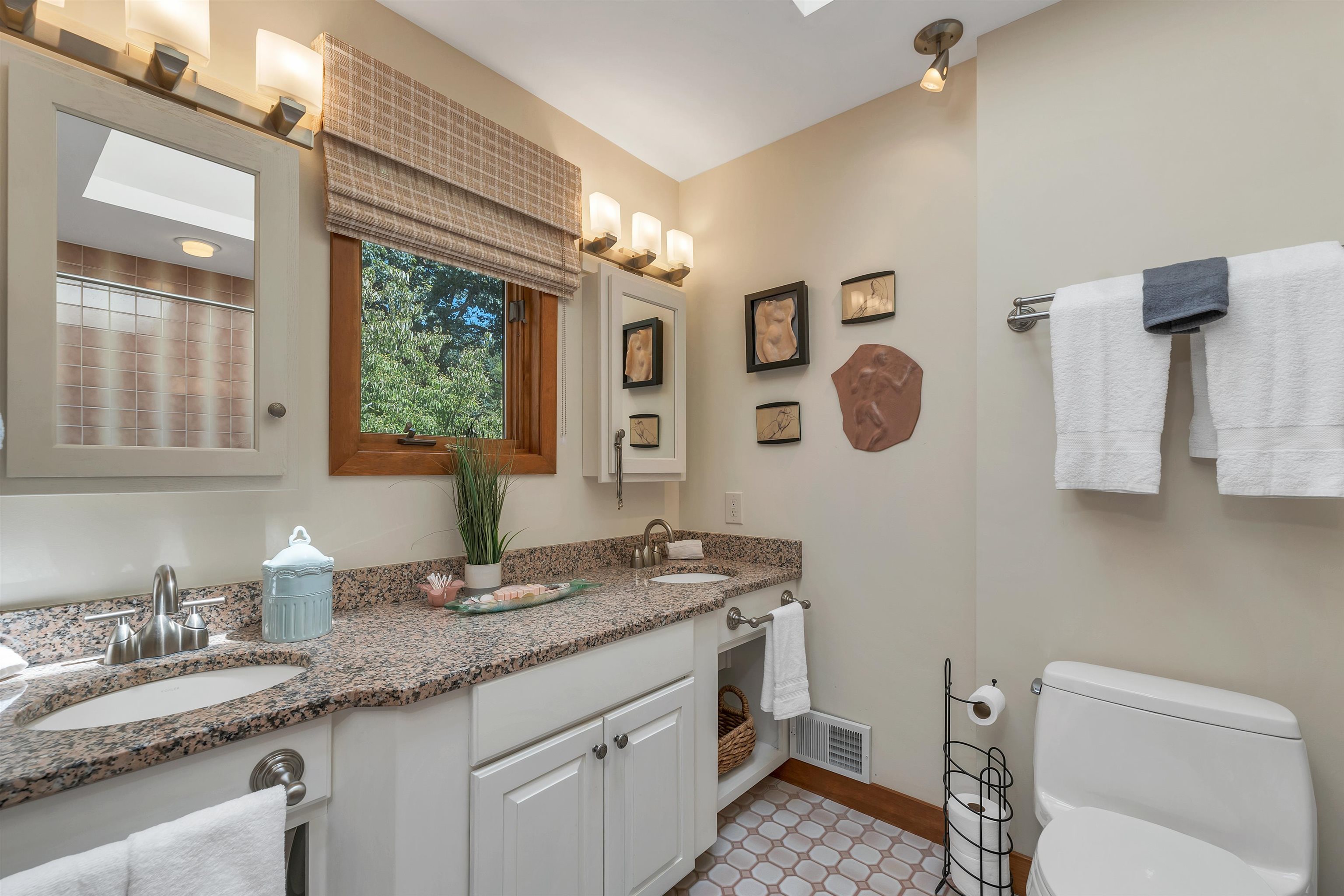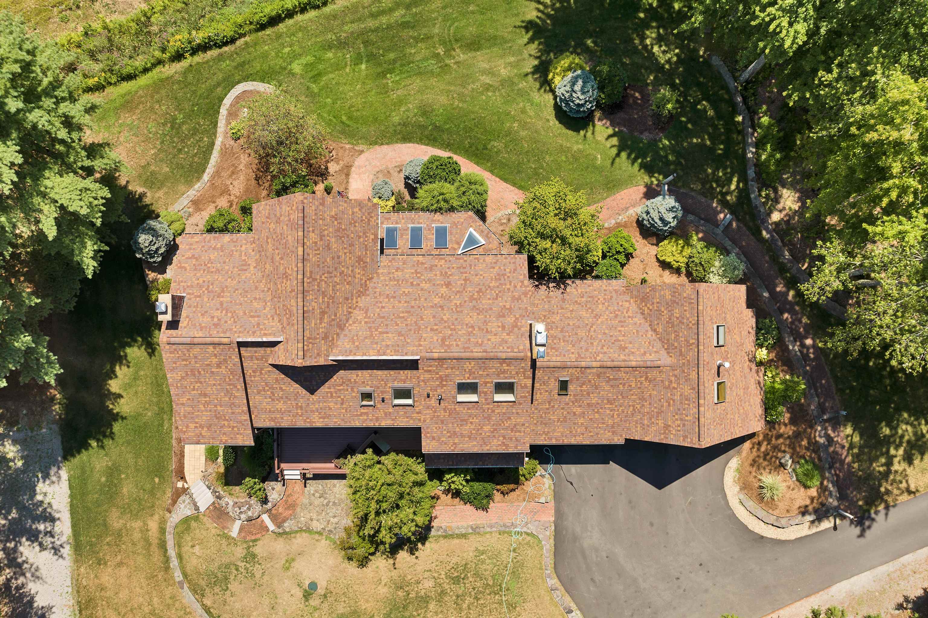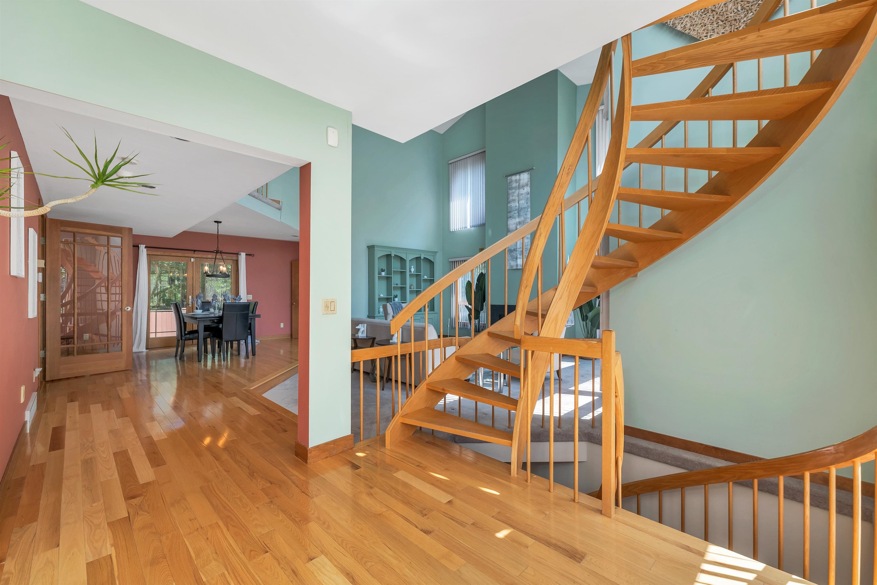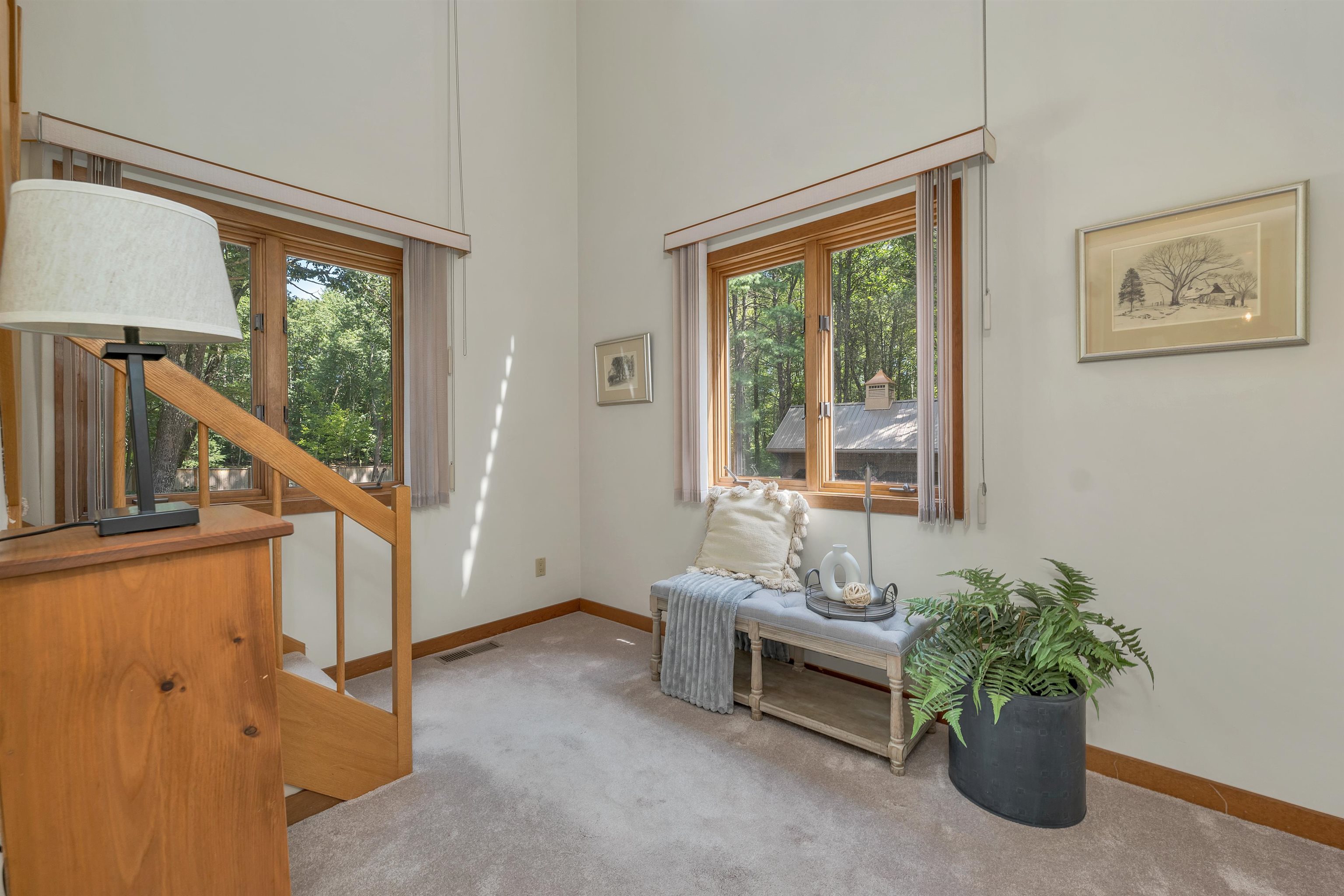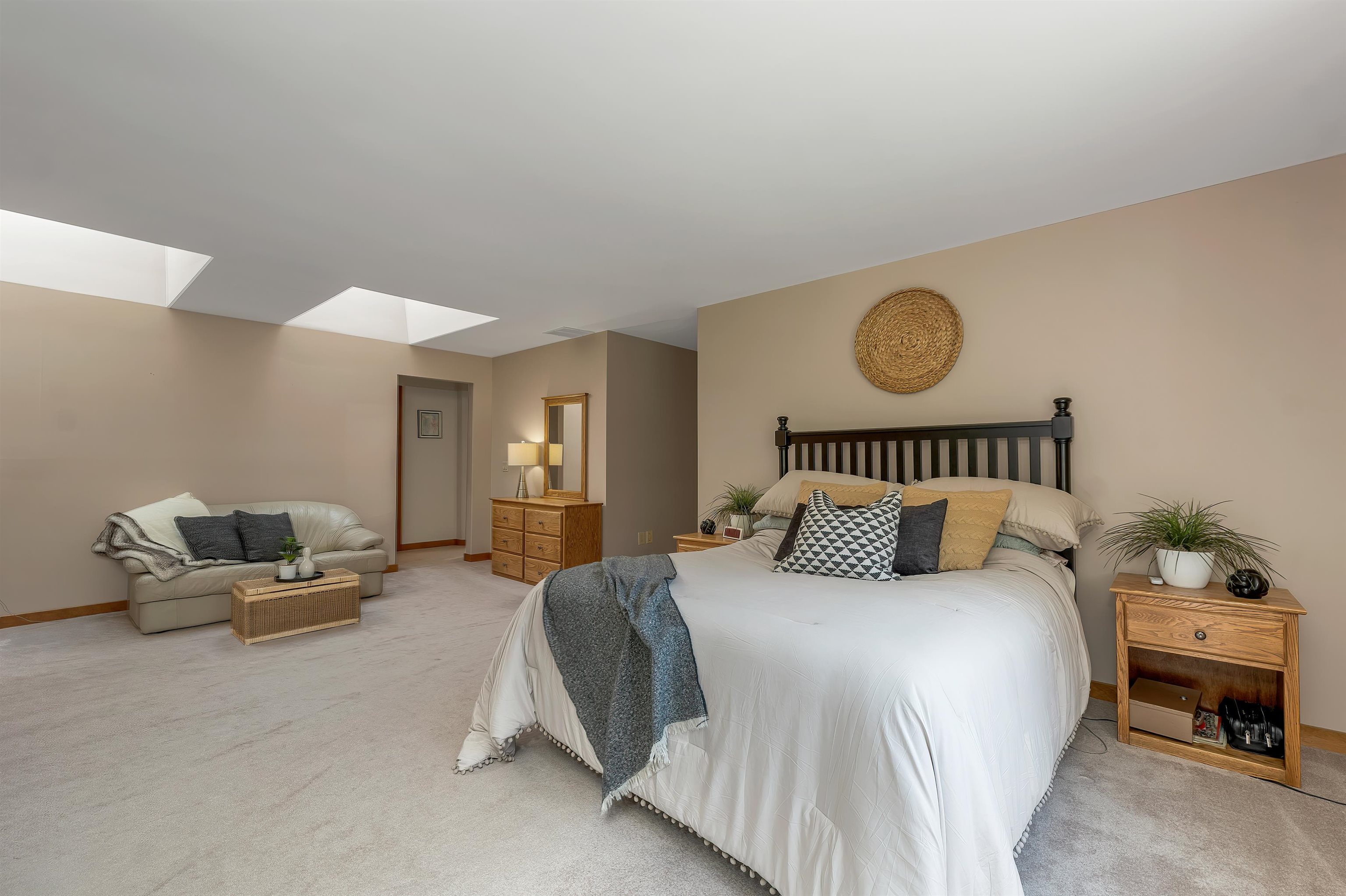 BACK ON MARKET! Amazing modern contemporary home, lovingly cared for over 30 years and solidly built by TF Moran with quality updates throughout. Beautifully landscaped and thoughtfully designed, this south-facing redwood home features striking truss construction. Updated nearly 2, 000 sq. ft. IN-LAW APARTMENT WITH OWN ENTRANCE. Heated 3+ car garage, flat lot with a spacious backyard, and a two-story 24x14 shed with run-in space for two vehicles. Inside, the great room impresses with soaring 28-foot ceilings, a large foyer, and open walkways above. The main house includes three bedrooms, highlighted by a primary suite with walk-in closet, fireplace, and laundry. A unique bedroom sits above a first-floor walk-up, while a skylighted 3/4 bath serves two additional bedrooms. 1998 addition over the garage provides an office and two more rooms—one with a fireplace—plus its own entrance. In total, the home offers five fireplaces, four gas-powered, along with custom spiral staircases, built-ins, and walls of windows. The lower level, fully updated in 2025, includes a bedroom, full bath, kitchen with counter seating, living room with fireplace, sitting area, cedar closet, oversized bonus room, and utility/storage. Outdoor spaces feature custom stone walls, mature plantings, large decks, and a screened porch designed for a spa as well as extra seating area. Convenient to shopping, MCC Golf, and highways. Rare property blending space, versatility, and exceptional character.