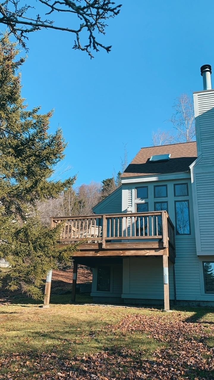 Enjoy Green Mountain views from this bright and spacious end-unit townhouse, perfectly sited on the 1st fairway at the Haystack Golf Course. An oversized deck invites outdoor dining and entertaining, with sunsets over Haystack Mountain as your backdrop. Inside, natural light pours through windows and skylights into the open floor plan featuring vaulted ceilings, a fieldstone wood-burning fireplace, and updated main-level flooring. The kitchen offers a breakfast bar and gas range, while the dining area flows seamlessly into the living space. Upstairs, the open loft bedroom includes a private updated bath with oversized shower. The lower level provides a generous primary suite with jetted tub, two additional bedrooms, full hall bath, and laundry area. A covered porch entry with mudroom keeps golf and ski gear organized. The association handles exterior maintenance, landscaping, snow removal, and even delivers firewood to your door for true ease of ownership. Located just steps from golf, a short drive to Wilmington’s shops and restaurants, minutes from Lake Whitingham, and within easy reach of both Haystack and Mount Snow ski resorts, this townhouse is the ideal four-season getaway.