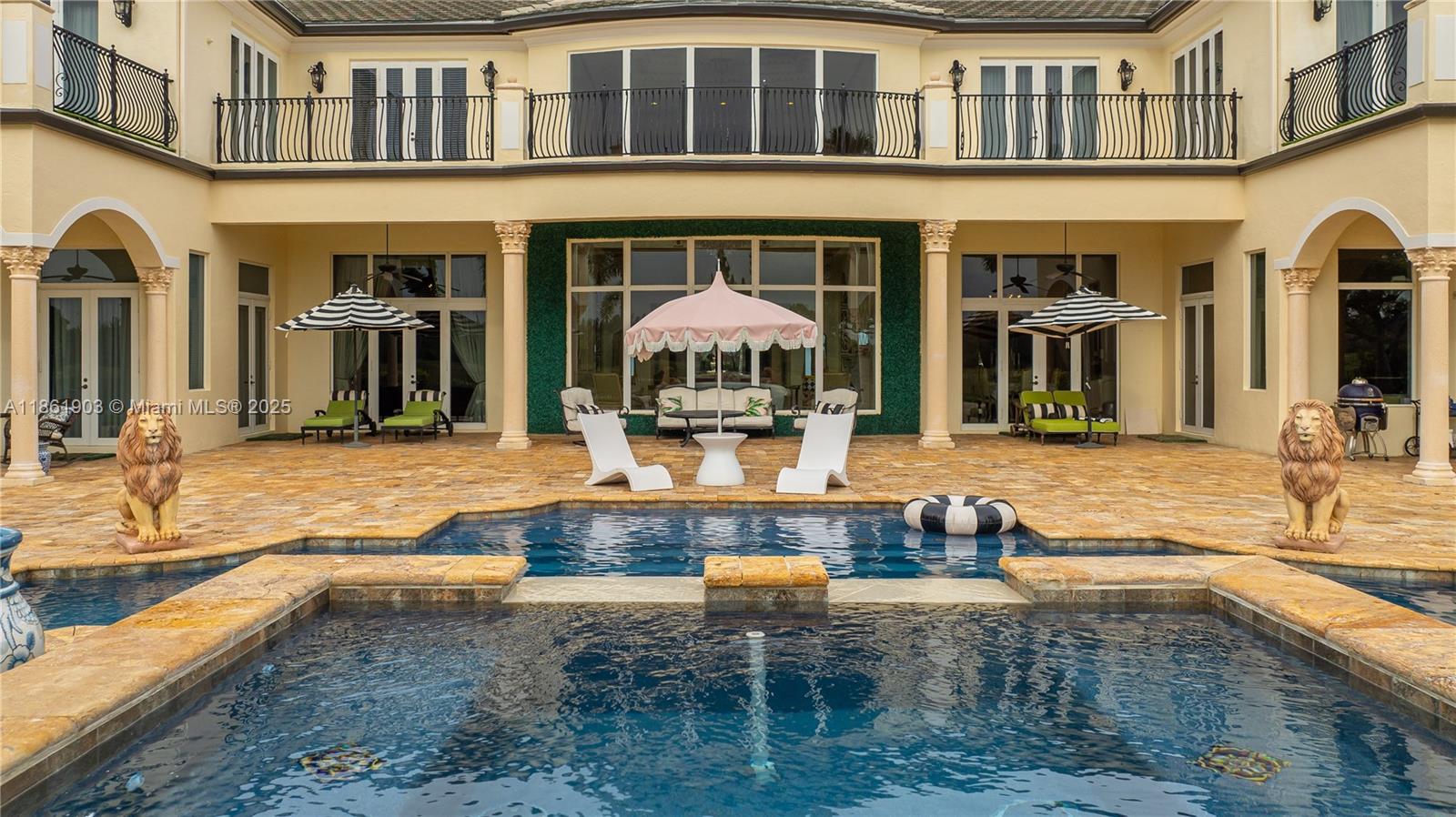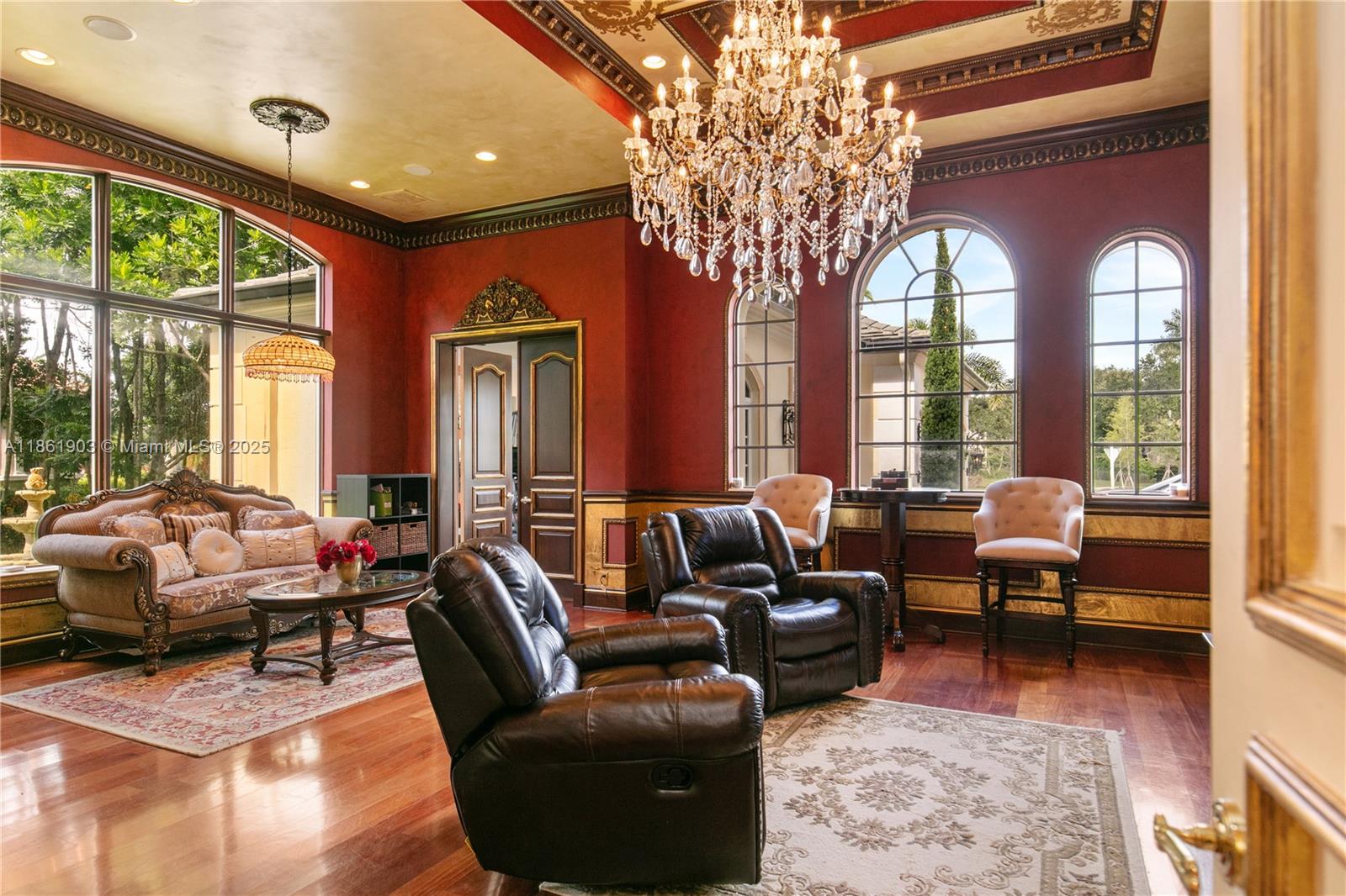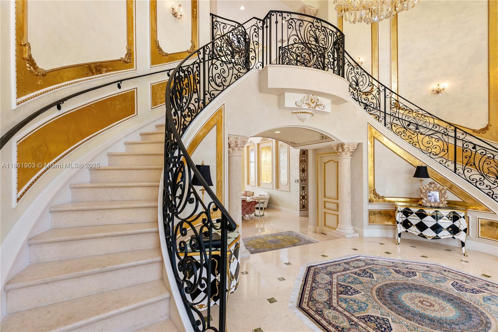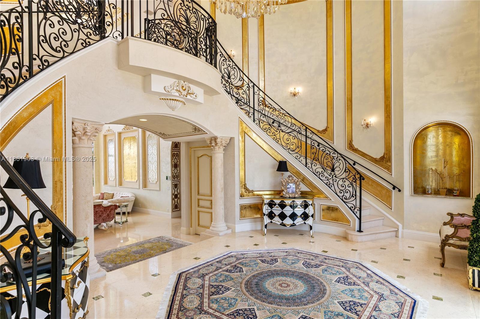 Welcome to "Bella Maison", a 2-story estate in the gated community of Windmill Reserve. Featuring 8BR/8FB/2HB, 4-car garage, Travertine circular driveway, on protected natural preserve w/ western sunsets. Marble & wood flooring, incredible gourmet kitchen, large island, walk-in pantry, granite, Wolf gas range & high-end appliances, 2 new Bosch dishwashers. Featuring home theater, game room, gym, elevator, bar/billiards room, office study, sunroom, up/down laundry rooms, 5 marble fireplaces & impact glass and doors. Owner's suite w/vast walk-in closets. French-renaissance style w/hand-painted artistry, crown moldings, gold/silver leaf foil & murals, 3 balconies, 2 fountains, decorated lions, lush landscape, heated pool & spa. *New roof in 2015. *5 new