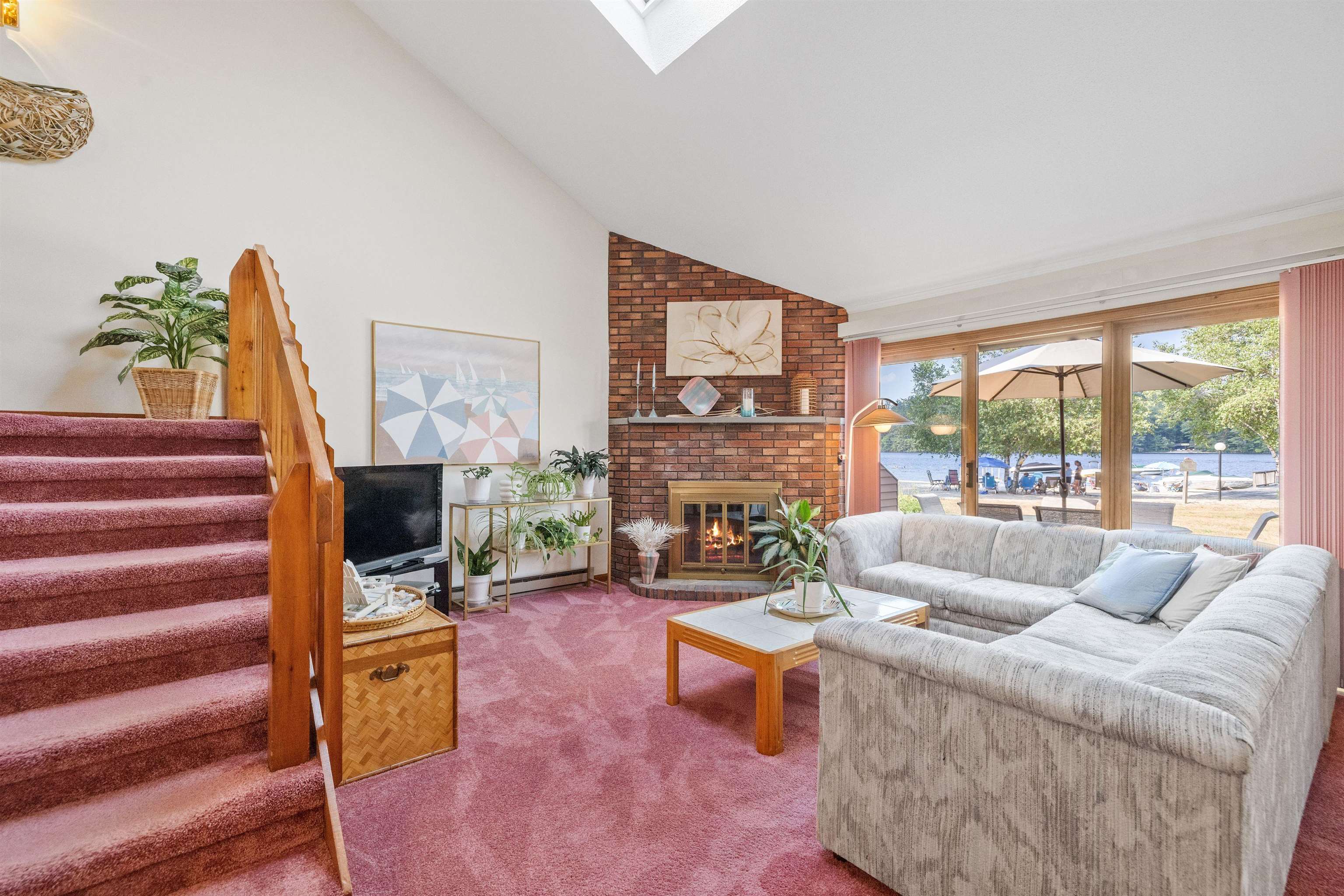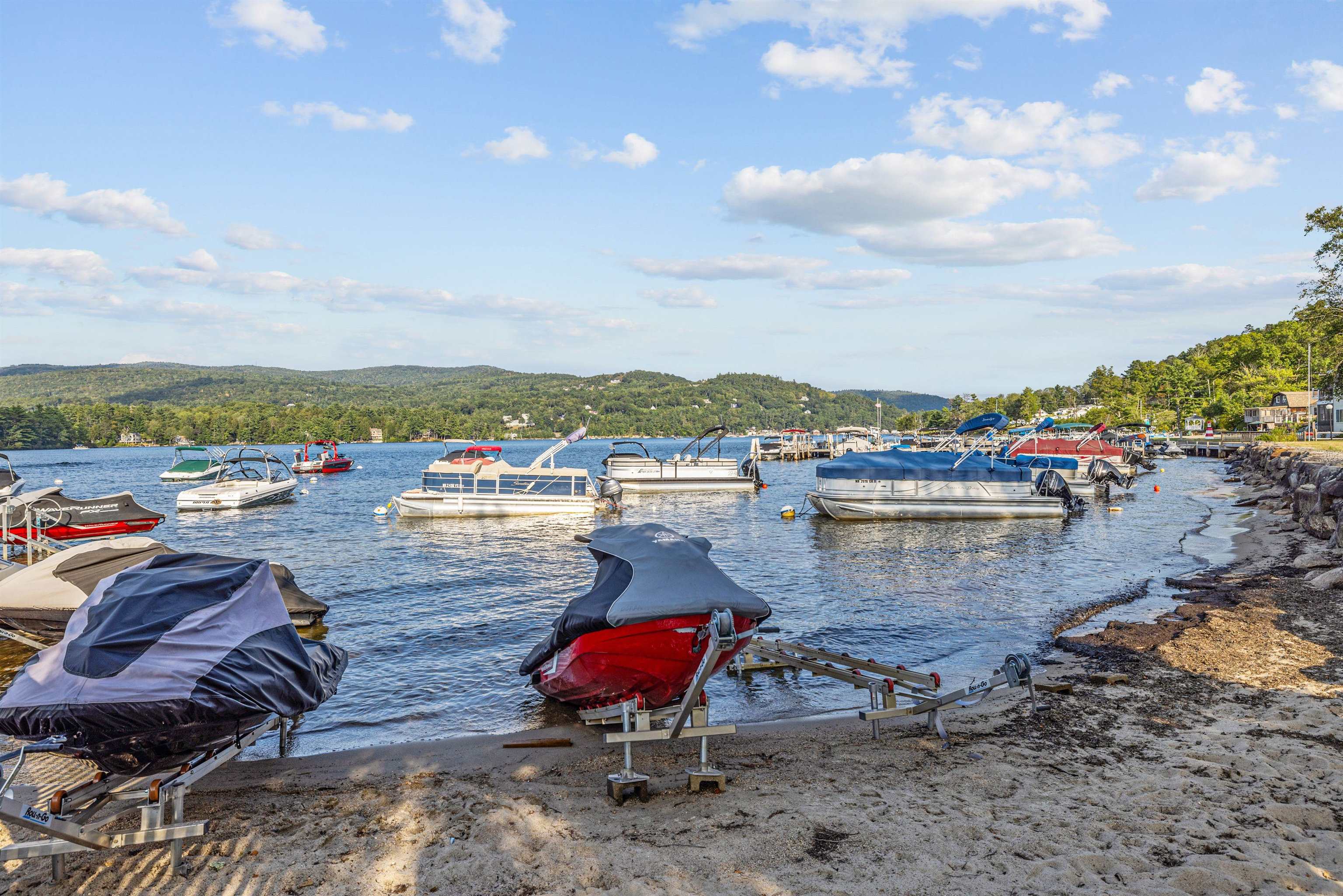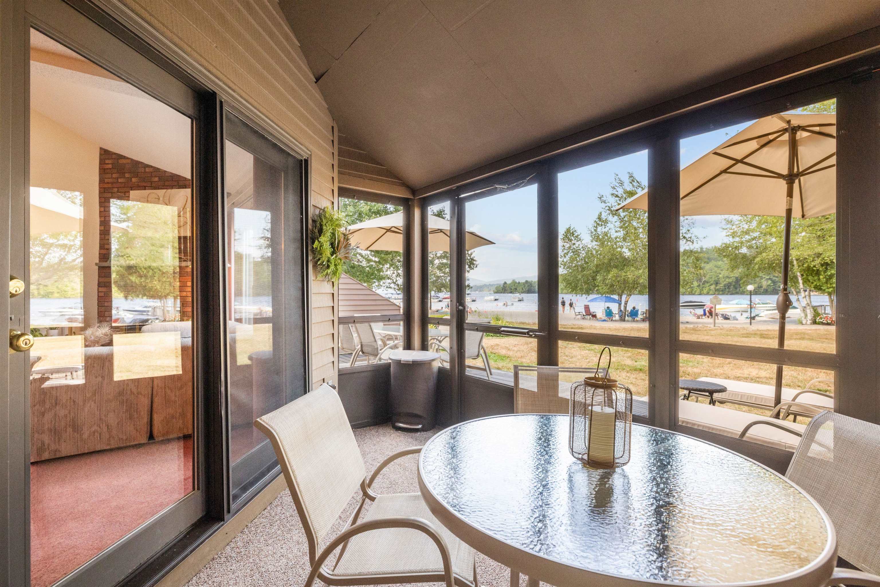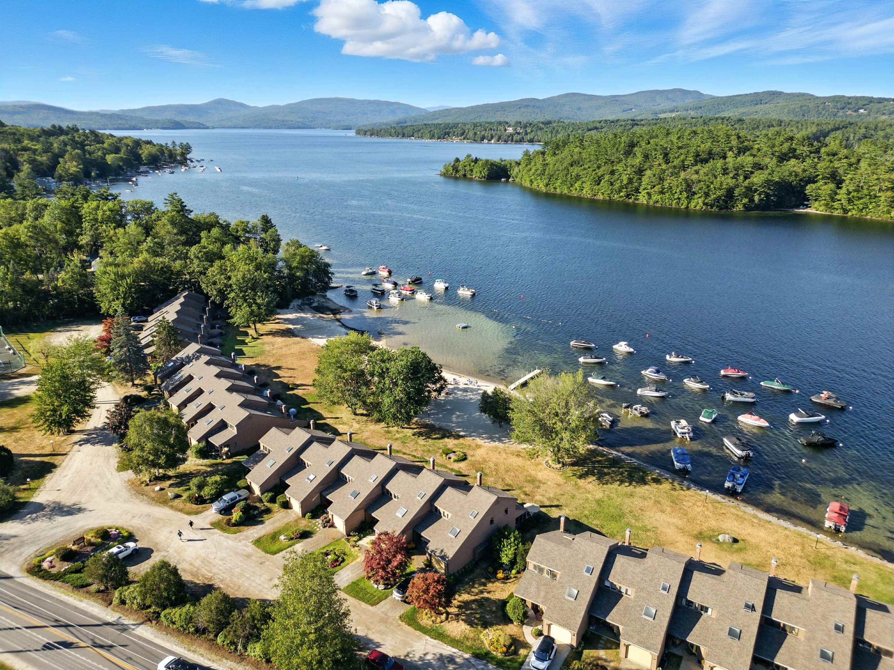Newfound Lake WATERFRONT townhouse—a rare opportunity to own a multi-level home directly on the water's edge. This home is the FRONT ROW with sweeping views of the lake & mountains. Watch the boats go by from almost every window! Enjoy 680 ft of beachfront on Newfound Lake. Quartz kitchen with spectacular lake views. This 2/3 bedroom home features the option of a first floor sleeping area and a full bath/laundry room. Breathtaking lake views and a sandy beach are just steps from your spacious deck, perfect for outdoor entertaining. Relax and enjoy lakeside dining from your screened porch. Two oversized second floor bedrooms share a full bath. Winters can be spent by the fireplace enjoying views of the water from all living areas. Stunning open floor plan with soaring ceilings and an abundance of natural light. First floor flex room (used as a bedroom) could be a perfect den or home office. Enjoy shared private beach frontage, day dock access, tennis & pickleball courts, moorings (waitlist) and space for your jet ski at your doorstep. Attached one car garage. Offset your expenses with short or long term rentals. Sold partially furnished . . enjoy the rest of summer on the crystal clear shores of Newfound Lake. (note: home is a 2br + flex room that is used as a 3rd br. STR allowed, no more than 1 renter per 7 day period)