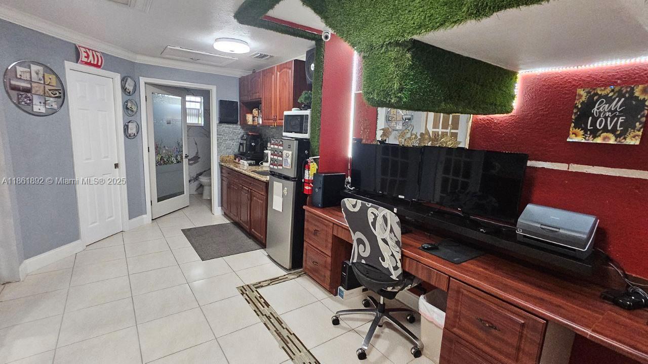 Turn-key 610 sqft office/light warehouse in prime Doral location. Fully furnished & decorated, ready to move in! Includes water & trash private full bath, kitchenette, and space for 4–5 desks Front & back doors, storage, and 2 assigned parking spaces+ ample guest parking. Gorgeous lake views. Perfect for small businesses, startups, or professional services seeking a modern, an office solution in the heart of Doral. What truly sets this suite apart is the move-in ready condition. Here, everything is prepared and operational from day one. Add in the private bathroom, kitchenette, dual entrances, storage, and lake views, and it becomes clear that this is not just an office — it’s a complete business solution. Possible sublease private off