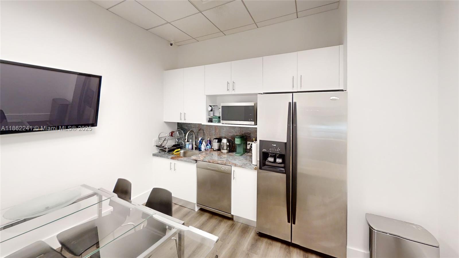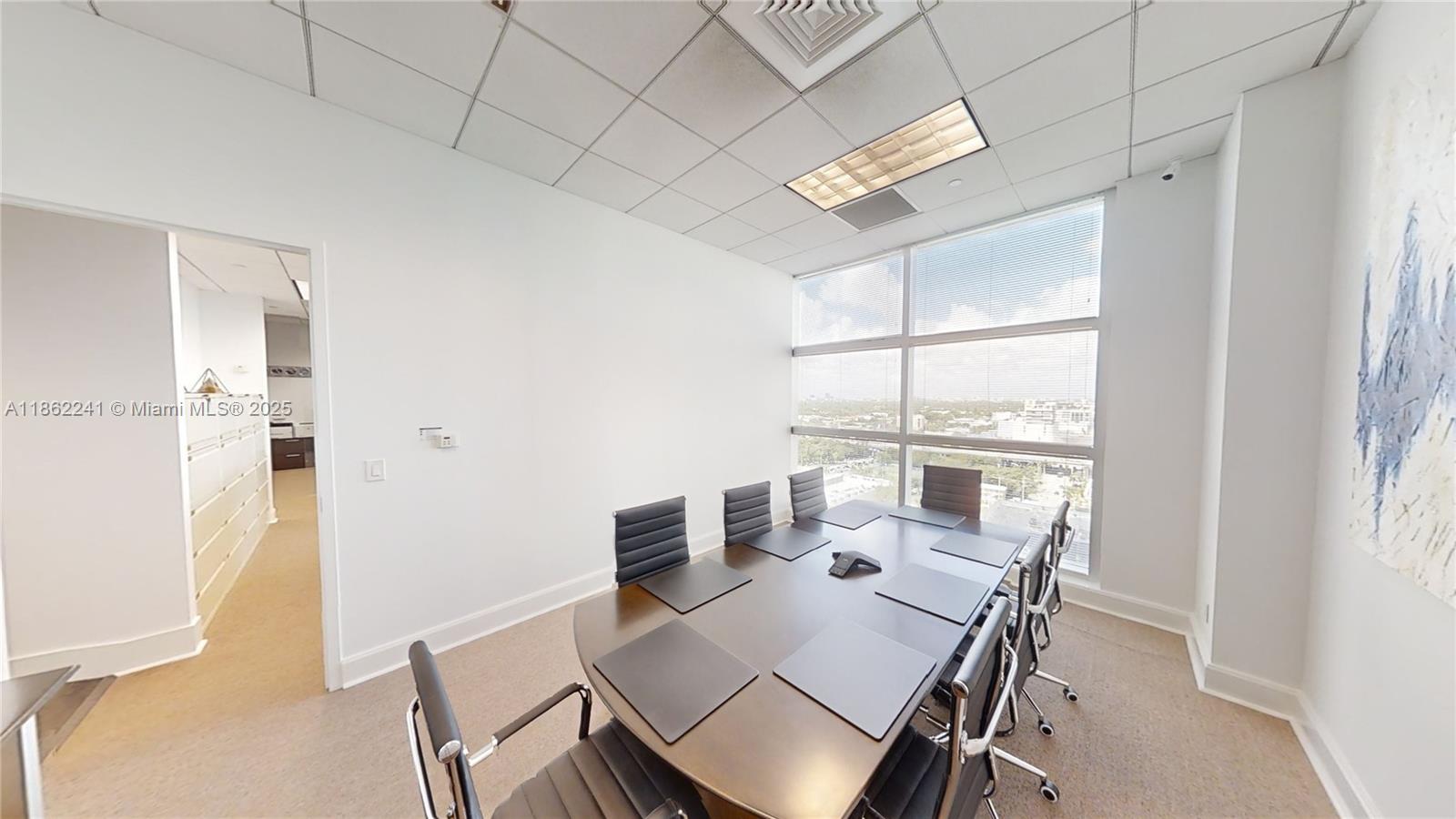 Corner Office Fully furnished 1472 sq ft SHARED SPACE of 2124 sq ft. with only two owner members. Up to 3 separate workstation areas included. One 25' x 12'-foot office area desk, One 20' x 19' Five-person workstation, One 8' x 10' reception desk. Plus, private lobby waiting room receptionist area, large conference room & storage/IT room & filing cabinets a rarely available private kitchen/lunch area. Perfect for professional financial services style office. Excellent location on the Miami Riverwalk path and on-site restaurants for visiting clientele. Guest parking and valet available for monthly rates.
