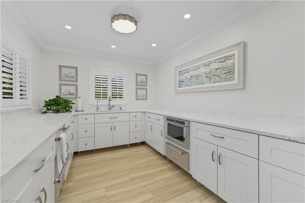New on the market! Booked 1/1/25’ to 4/30/25’. This freshly remodeled, 3 bedroom, 2 bath end unit is a pristine, bright, and sunny residence, offering wraparound, south-eastern lake, and golf course views. Kelly’s building D offers a prime, private location on a cul-de-sac at the end of the community, next to a picturesque, wraparound lake, with ample guest parking. Enjoy the open floor plan, with 9‘, 3“ ceilings, stylish furnishings, and excellent natural light from the many sets of screen/air conditioned sliders, and the large windows throughout. The living rooms has a couch, 2 aqua-colored upholstered recliners, large tv, and entertainment center. The dining area has a rectangular table and 6 chairs. The spacious, eat-in kitchen with a round table and 4 chairs, has white cabinetry, granite counters, and stainless appliances. The master suite offers a king-size bed, tv, walk-in closet, and private bath with a shower and soaking tub. The 1st guest bedroom has a queen-size bed, and 2nd bedroom offers twin beds, sharing a guest bath with a walk-in shower. Enjoy the beautiful screen/glass-enclosed lanais with 2 chaise lounges, and table and 4 chairs. Calle offers convenient access to marker 36 trim for easy travel to Pelican Bay’s two private beach clubs with dining. One can also enjoy the Pelican Bay community center tennis center and state of the art fitness center, as well as the world class shopping and dining at Waterside shops, the Mercato, and Artis-Naples. The Ritz Carlton and Waldorf Astoria anchor this community for guest overflow or entertainment. Just a short drive to the 5th Ave. and Third Street shops and restaurants.