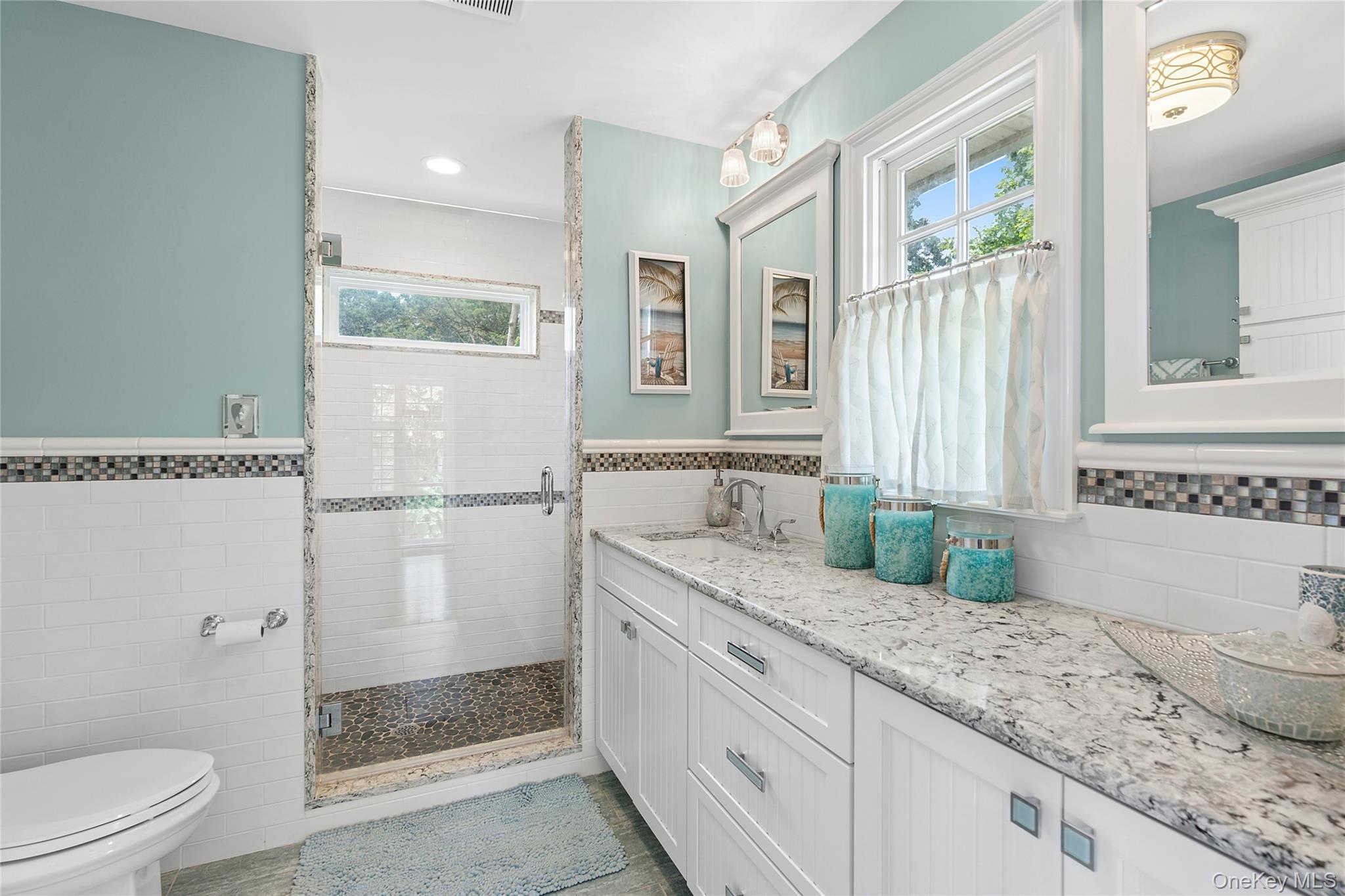 This stunning waterfront residence features over 100 feet of private beach and embodies the essence of coastal living. This three-bedroom, three-bath home built in 2024, boasts an open floor plan, highlighted by a wall of windows that captures breathtaking views of Peconic Bay, creating an inviting space perfect for entertaining. The chef's kitchen, equipped with custom cabinetry and elegant countertops, fosters culinary creativity and includes a spacious island for gathering with loved ones. Two of the bedrooms boast a private top-floor balcony, while the third bedroom is conveniently located on the first floor. The spa-inspired bathrooms are beautifully appointed with exquisite tile and fixtures. The finished lower level features a recreation room with a bar and lounge area, along with a versatile bonus room that can adapt to your needs, serving as an office, gym, or extra storage space. Step outside to the waterfront observation deck, a serene oasis for enjoying the captivating beauty of sunrises and sunsets over the bay. The lower-level storage area provides practical solutions for all your beach essentials, from paddleboards to kayaks. Nestled in a quaint hamlet, this residence offers easy access to the best of the North Fork, where shopping, vineyards, farm stands, and restaurants await your exploration.