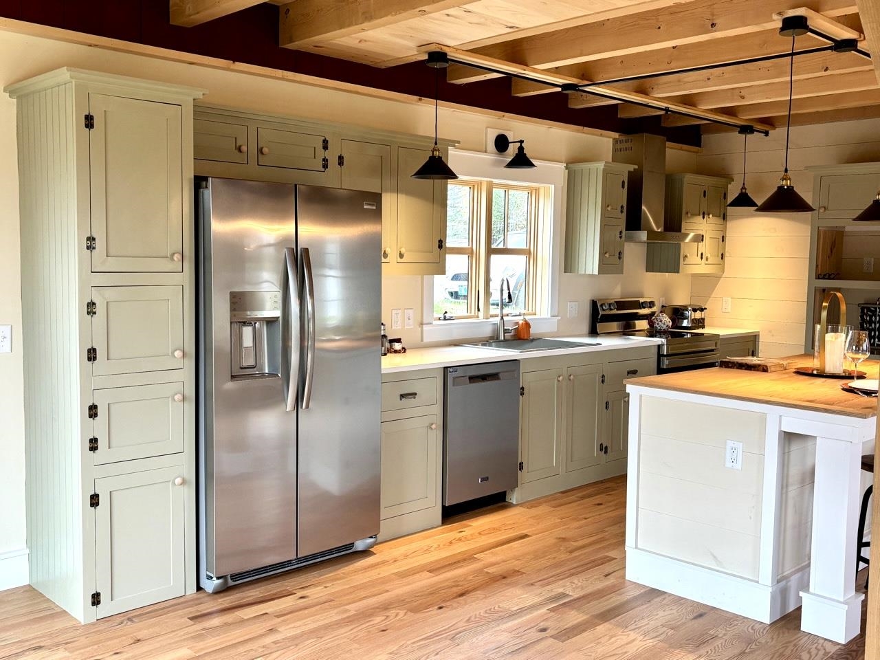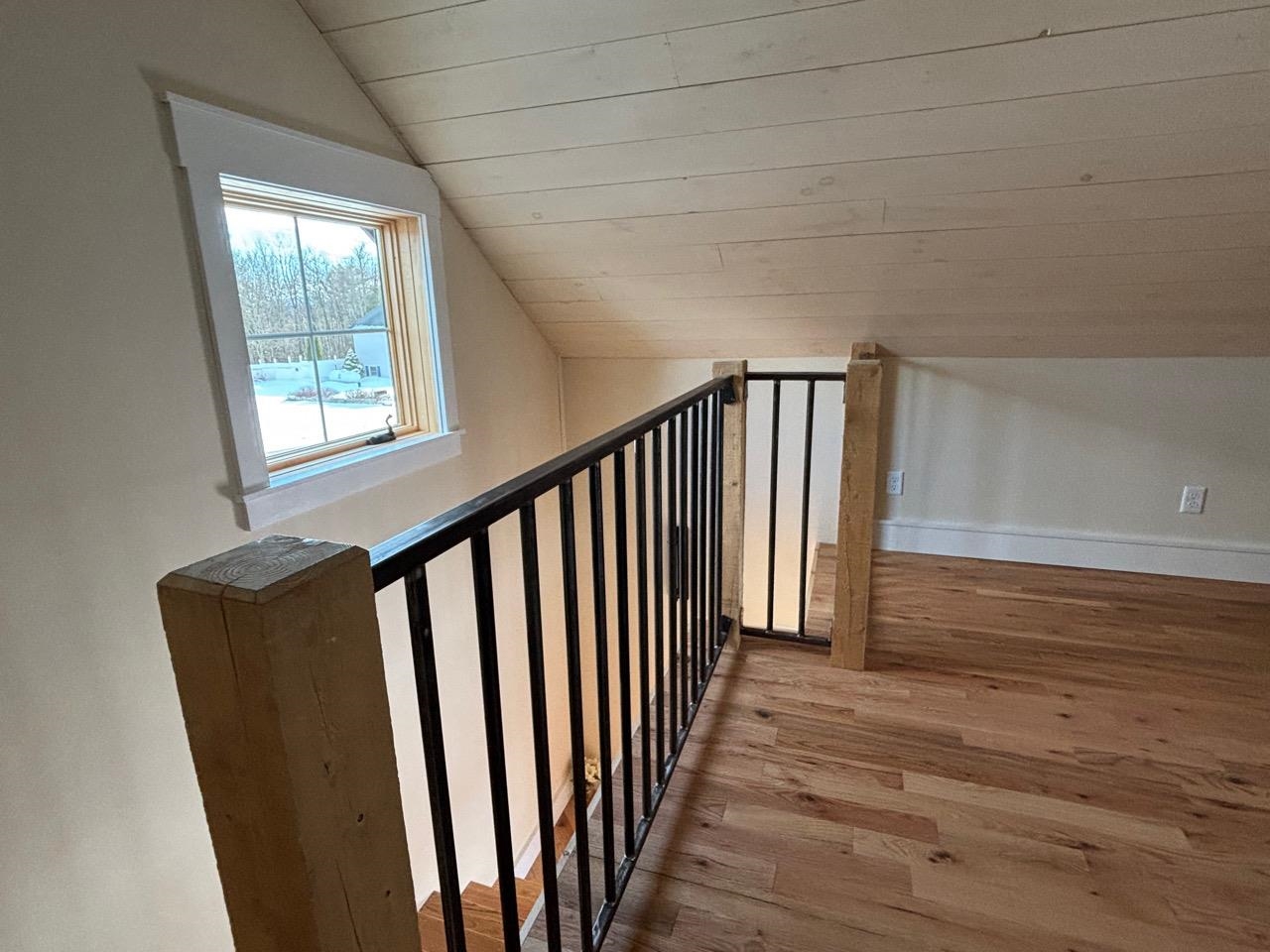 BRAND NEW Carriage House Barn Home AND just added, a 2 car HEATED AND FINISHED GARAGE. Sitting high above it all. Enjoy superb mountain views from the private deck and almost every room. Just 30 minutes from Smuggs for skiing adventures! Another Barbour Construction Custom Home. Like so many previous builds, you’ll find many of the finishes that make these homes so vibrant such as Massive VT-Made Rustic Beams, Top-of-the Line Marvin windows, gorgeous Red Oak hardwood floors, Mudroom w/brick floor, shiplap walls and ceilings, a handcrafted kitchen with magical quartz counters & a copious central island around which to gather for food & conversation. The home comes with all stainless steel appliances. There’s a designated dining area near the double doors. Handcrafted iron railings that lead to a sitting room/office are the creation of local artisan Shane Earle of Unbroken. The 2nd level is also home to 2 bedrooms, a full bath w/a shower & Extra Special Clawfoot Soaking Tub. The primary bedroom is outfitted with a walk-in closet and enjoys Lovely Mountain Views. Enjoy the close proximity to 3 major ski areas. Approximately 1 mile away is the popular Lamoille Rail Trail for walking and biking. Just down the hill you’ll enjoy Johnson’s hub of activity in a quaint VT. Village where you can find eateries & stores. VT. University is a walk away where you'll have access to a full fledged exercise facility. Owner is a VT. Licensed Real Estate Agent