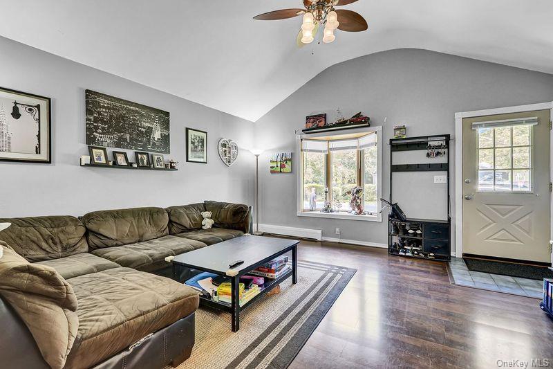 Beautifully maintained ranch with cathedral ceilings in living room and large bay window. The kitchen has new high-end appliances, and an area for a large dining table. There are glass sliding doors out to the oversized backyard. There are new laminate floors throughout the home. The master bedroom has a private bathroom. The basement is large and spotless. There is an attached garage also. This is the perfect starter home. Recent price drop! 8 foot ceilings in basement updated heating system and hot water heater!