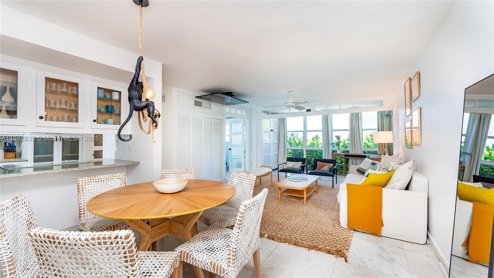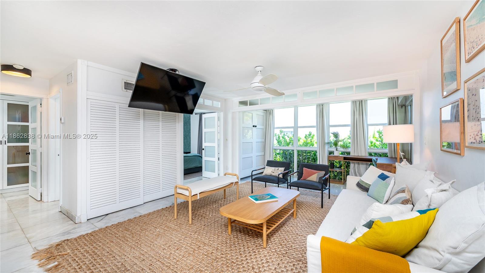located in the heart of Key Biscayne. This fully furnished residence combines contemporary finishes with a warm, homey feel, featuring white marble floors, Brazilian quartz countertops, and custom cabinetry. Large windows flood the space with natural light, while the den with a queen Murphy bed offers the flexibility of a second bedroom. Street-level entry gives it the comfort and privacy of a home. Enjoy FOB beach access just a 5-minute walk away, plus a pool, assigned parking, and free laundry. Smart lock with camera for fingerprint, code, key fob, or app entry. Pet friendly. Available for short-term stays of 3 months or more.