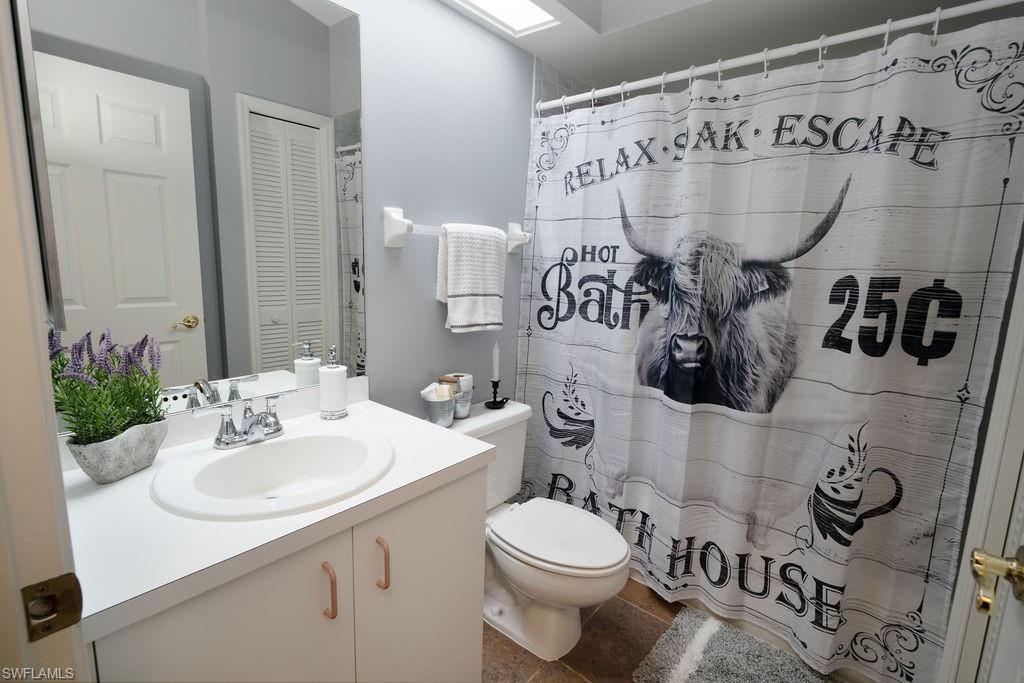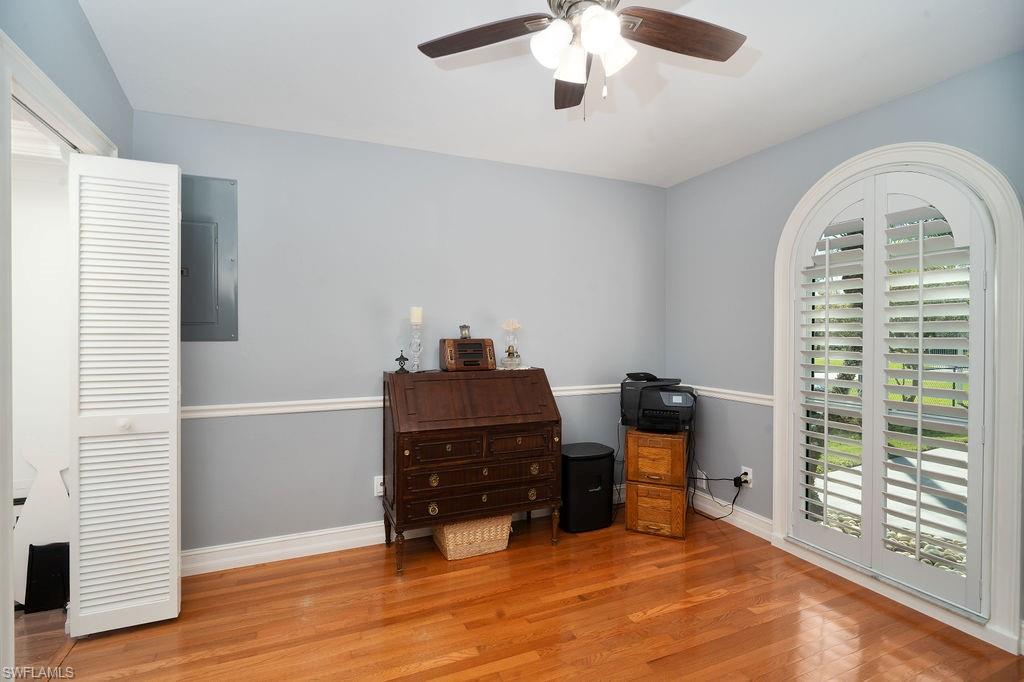 All bedrooms offer walk-in closets, with custom closets in the guest rooms. Recent updates include a new Rheem A/C (May 2024), Rheem water heater (January 2023), and a newer Samsung washer/dryer. The lanai is also outfitted with new fans.
