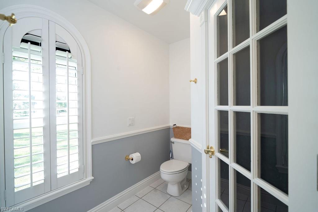 High ceilings enhance the sense of space, with tile flooring in the entry, hallway, kitchen, and bathrooms, while spruce oak hardwood floors add warmth to the living and guest bedrooms. The primary bedroom is carpeted for comfort. This home is equipped with whole-house impact windows, PEX piping, a reverse osmosis system with a 500-gallon tank, crown molding, chair railing, plantation shutters, and new gutters (2024). The garage/workshop features metal manual shutters for added protection.