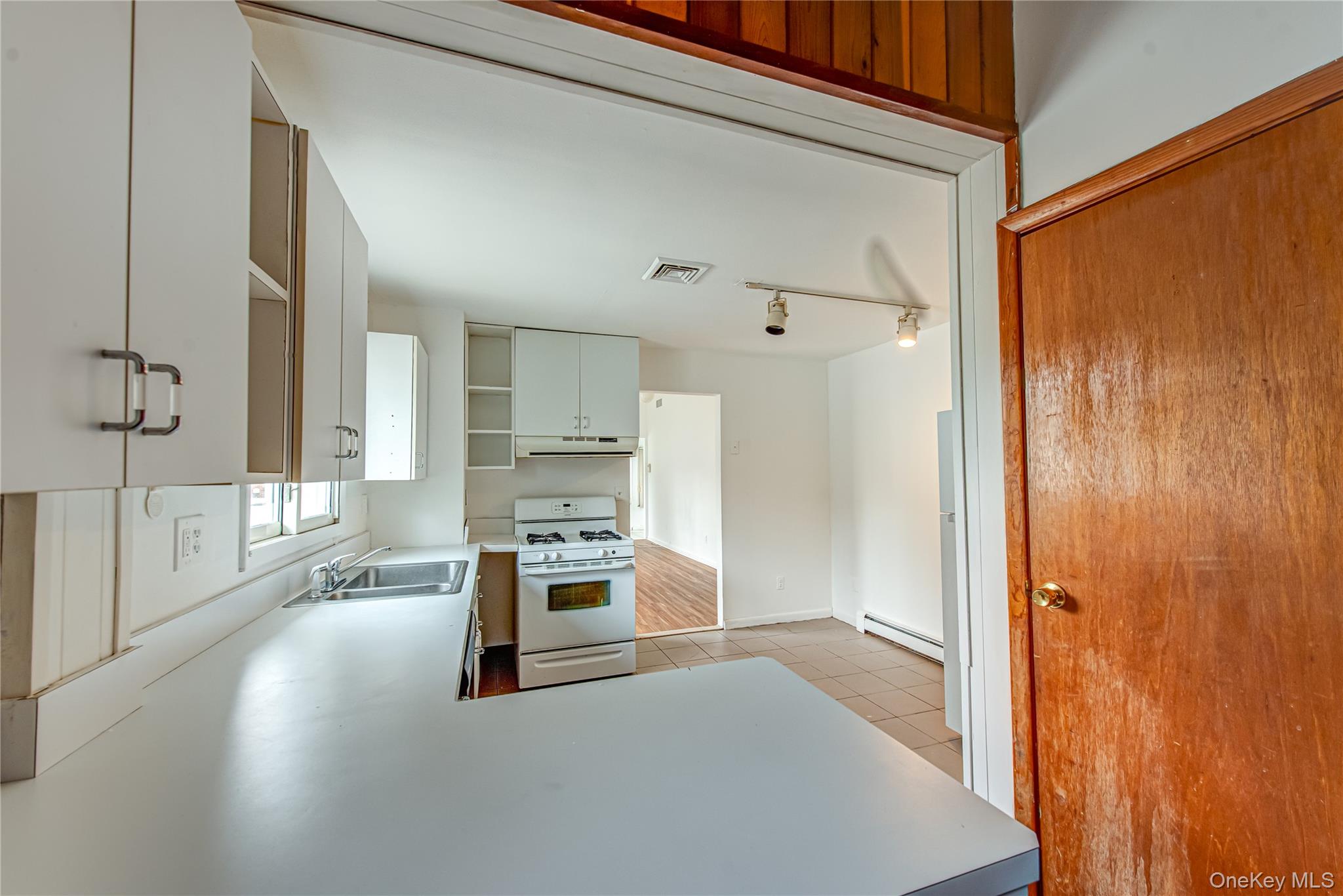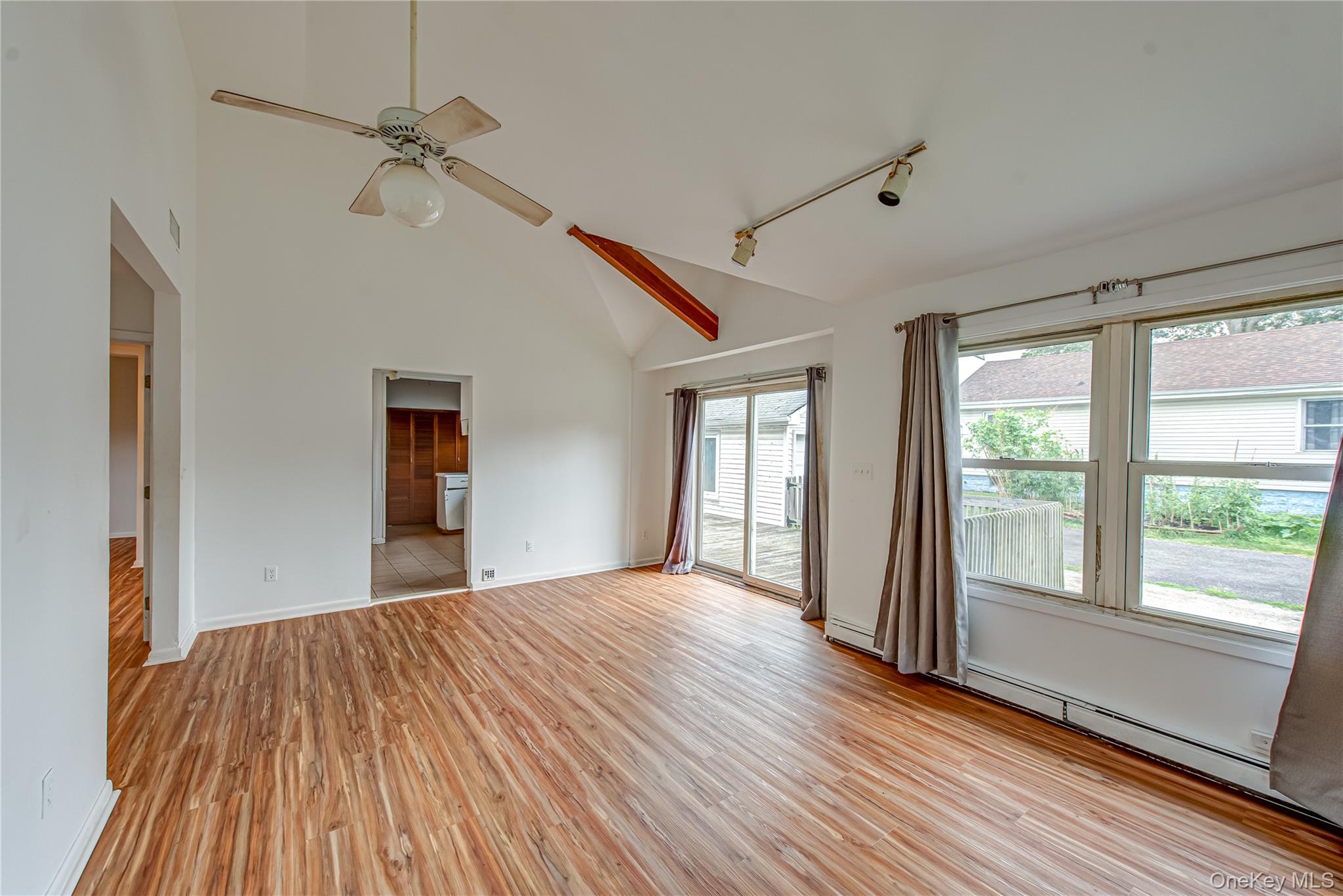 This 2-bedroom Ranch in a convenient location offers a fantastic opportunity for the savvy buyer looking to customize their starter/down size home. The open floor plan on the main level offers a sunroom with wood burning stove, new laminate flooring, eat in kitchen with pantry and open living room and dining area with cathedral ceilings. A full basement offers a convenient outside entrance, many possibilities for additional living space, a workshop, or studio. This home offers natural gas for cooking and has a brand new architectural roof. There is also pull down attic stairs for additional storage and 200 amp service. Central air is installed, condition is unknown. Taxes can be grieved. Outdoor features include a convenient one-car garage and the undeniable appeal of being just blocks from the Lake Ronkonkoma Beach and Recreation Center. Enjoy easy access to the lake, playgrounds, tennis courts, and more, making it ideal for those seeking an active lifestyle or simply enjoying the outdoors. While this home does require some TLC and updating, its prime location and open layout offer a valuable investment opportunity. Ideal location near major highways, shopping and minutes from Islip airport and the Long Island Railroad.