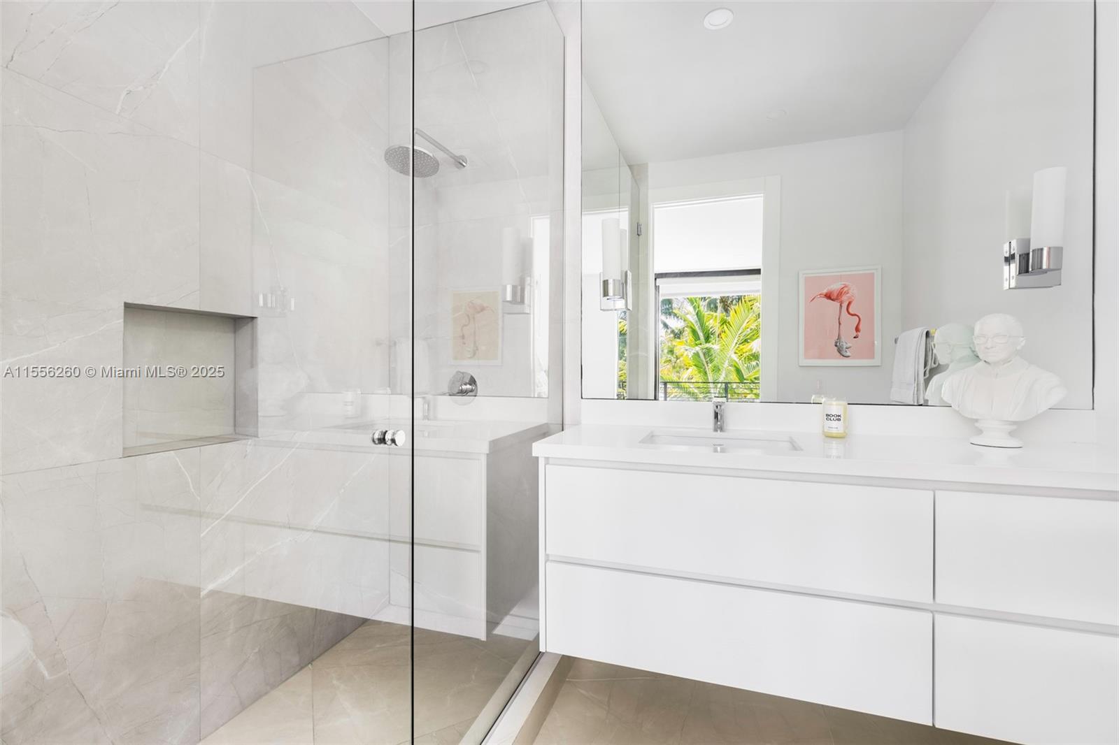Stunning tropical modern home in the coveted guard-gated community of Four-Way Lodge Estates. Walk to the Grove village’s boutiques, cafes & bayfront parks. Experience indoor/outdoor living with light-filled living spaces, volume ceilings & walls of glass overlooking the spectacular oak canopied & lushly landscaped garden. Euro-style kitchen features top-of-the-line appliances and expansive island w/ seating. Ultra-private primary suite offers sitting area, 2 walk-in closets w/custom cabinetry, balcony overlooking the tree-tops and spa-like bath w/ soaking tub & glass enclosed shower. An open office/den on the 2nd level adds a quiet haven. High sea-level elevation. Community boat basin w/ocean access. Enjoy resort-style outdoor spaces featuring a deep covered terrace & tranquil pool.