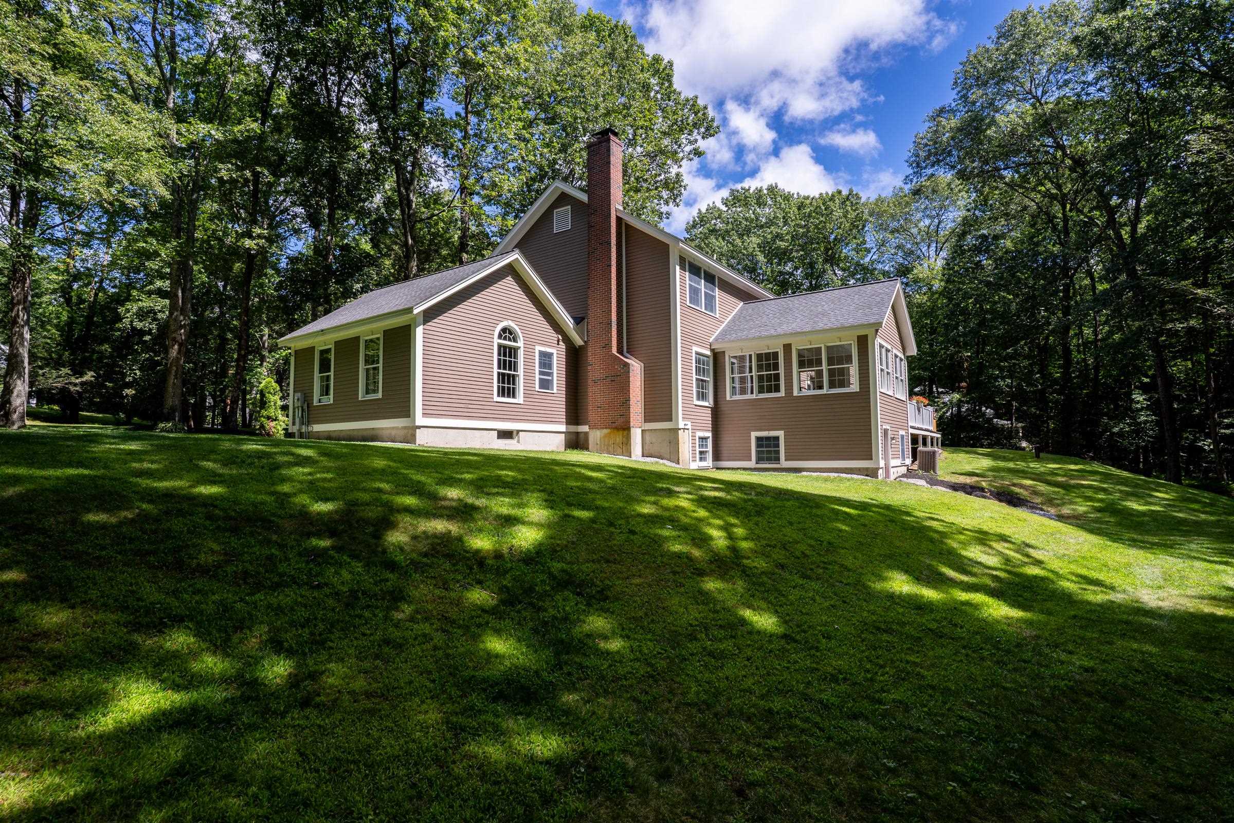 Stunning colonial on nearly 7 acres. This 3, 783 sq. ft. home offers 4 bedrooms, 2 full baths, 1 half bath, and 1 three-quarter bath. Features include newly finished wood floors on the first floor and fresh paint, enhancing the home’s bright and inviting atmosphere. The updated kitchen boasts a gas stove and granite countertops perfect for any home chef. Enjoy cozy evenings by the wood-burning fireplace or entertain guests in the expansive living areas. The spacious floor plan includes a first-floor room with a three-quarter bath, ideal as a future primary suite. Additional highlights include a 3-car garage, central air conditioning, a large outdoor deck, plenty of room for an inground pool, an irrigation system to maintain lush landscaping, and an unfinished walkout basement with great potential for expansion or recreation. Conveniently located close to the Exeter border and Routes 101, 95, and 1, with just a 10-minute drive to the beach. Don’t miss this rare opportunity to own a spacious, well-maintained colonial with plenty of land and easy access to major routes.
