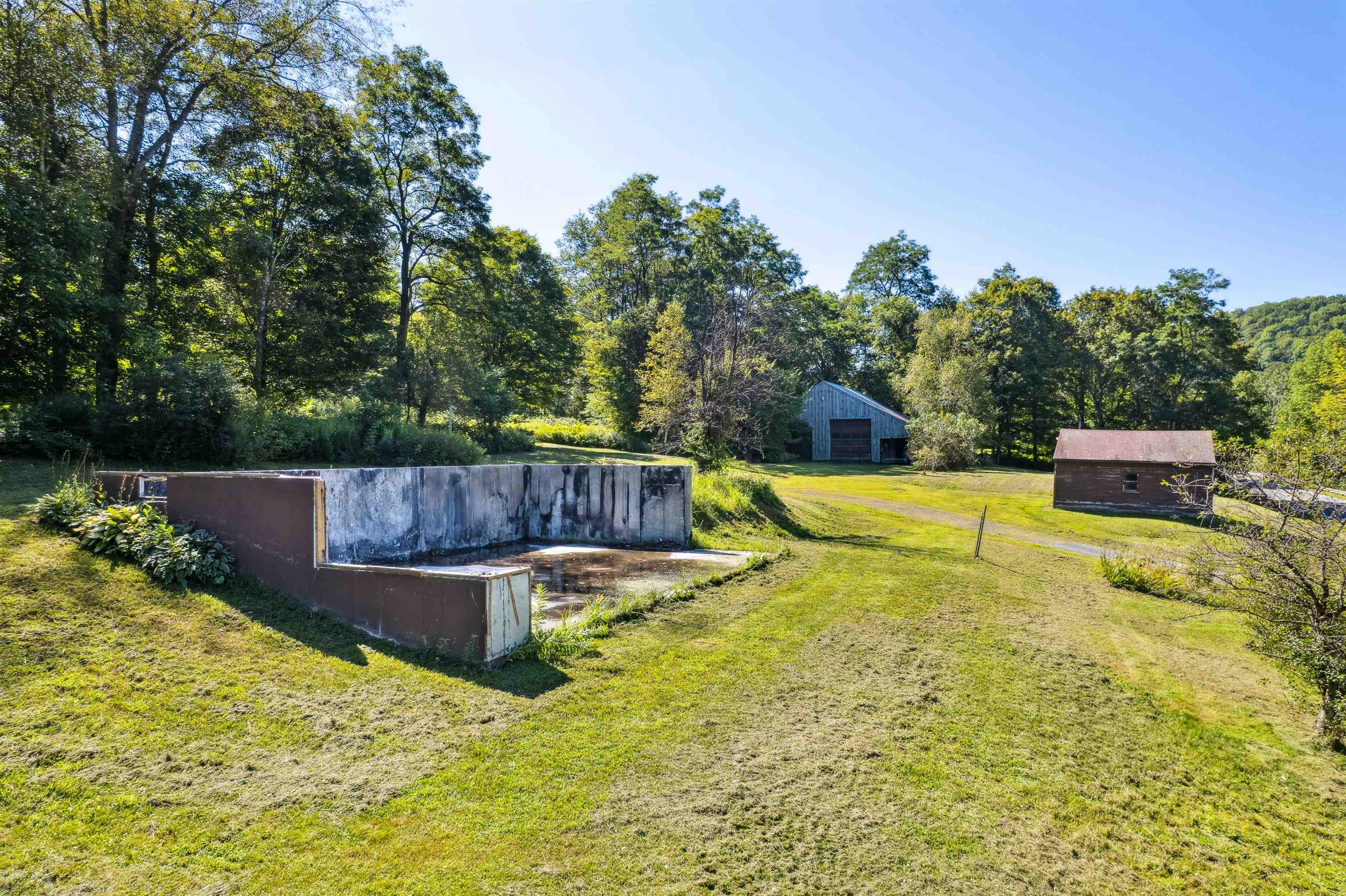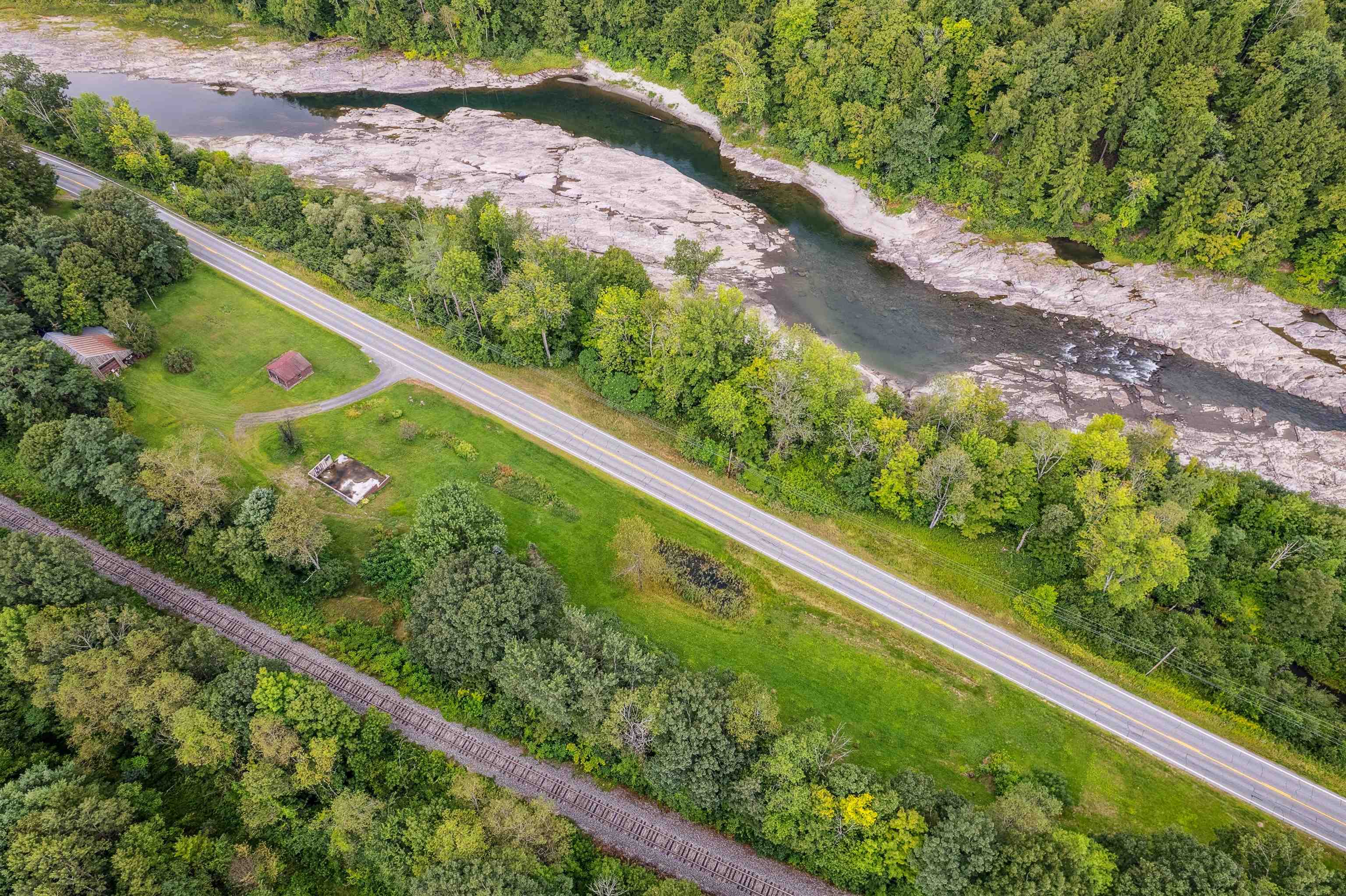 This unique parcel offers a head start for your next build. The previous home was lost to a wood furnace fire in early winter 2025, but the solid poured concrete foundation remains in place, ready for future plans. Supporting infrastructure is already on site, including a drilled well, installed septic system, established driveway and a two-car garage. One of the standout features is the expansive barn with oversized garage doors, ideal for RV or camper storage, a workshop, or farm use. The barn already has power connected, adding flexibility for your projects. The land spans both sides of Route 14, with open acreage perfect for farming, gardening, or simply enjoying wide-open space. The portion with river frontage lies in the flood zone, while the former house site sits safely outside past flood history. The rear of the property borders the train tracks, adding character and a defined boundary line. This property presents a rare opportunity to rebuild with major systems already in place while taking advantage of the land’s versatility and improvements.