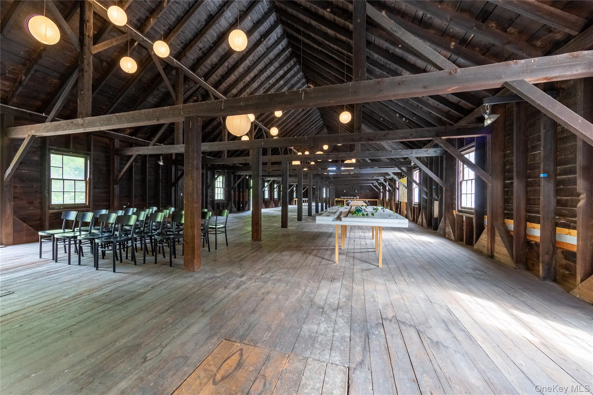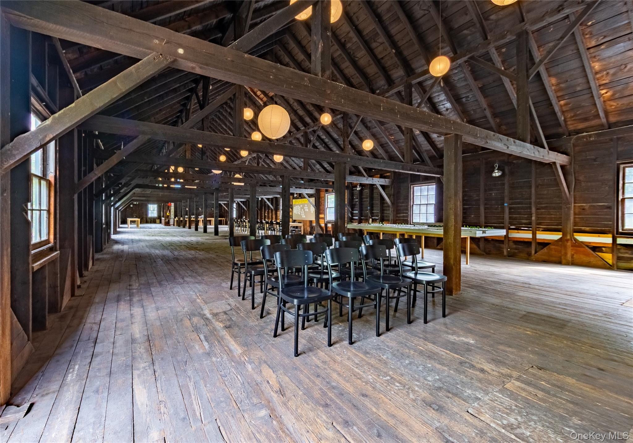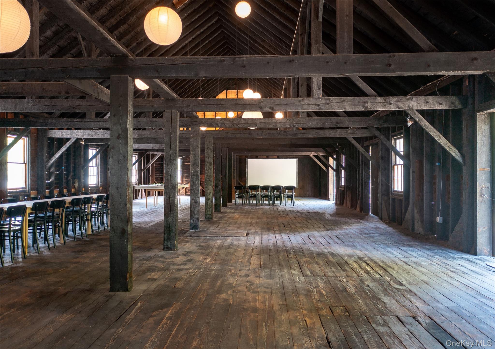 Nestled in the heart of Wassaic Hamlet on Main Street, this meticulously revitalized 1920s two-story barn, spanning 10, 640 SF, stands as a testament to craftsmanship and vision. Over six years, from 2017 to 2023, exceptional contractors, tradespeople, and artisans transformed this historic structure into the Wassaic Commons, a modern masterpiece, blending rustic charm with state-of-the-art functionality. The iconic green barn, with HM zoning, offers a versatile canvas for a variety of uses, including office space, retail, arts instruction, studios, workshops, or storage, making it an ideal investment for entrepreneurs and creatives alike. The first floor, encompassing 5, 320 SF, is thoughtfully divided into 3 distinct spaces. On one side, a 1, 200 SF area houses an 800 SF market space and a 400 SF commercial kitchen, currently leased to the esteemed Vitksy Bakery. On the opposite side, 3, 600 SF of raw retail space awaits, with potential for further subdivision to suit diverse business needs. At the center, a 520 SF section includes an office, 2 bathrooms, and mechanical systems, providing essential infrastructure for seamless operations. The second floor, also 5, 320 SF, features 3, 600 SF of raw space brimming with potential for customization. The remaining 1, 720 SF is currently utilized for mechanical systems and storage. The loft’s 20-foot ceilings are adorned with a breathtaking lighting design inspired by the constellation of Polaris, Ursa Minor, and neighboring stars, with fixtures suspended at varying heights, sizes, and brightness. The timbers on this floor boast a charred finish that is naturally resistant to mold, mildew, and insects, adding aesthetic allure and durability. This is an ancient Japanese technique known as shou sugi ban. The barn’s transformation included extensive upgrades to ensure modern efficiency and comfort. A new metal roof, drilled well, and state-of-the-art water and wastewater treatment systems were installed, alongside plumbing for the existing bathrooms and commercial kitchen, with stubbed-out connections for future interior and exterior expansions. An on-demand gas-fired boiler heats the market and mid-portion of the barn, with pipes ready for future extensions, while Mitsubishi mini-split heat pumps with ducted air handlers provide cooling to these areas. The electrical system was upgraded to a 400 AMP service, and redundant CAT 6 insulated cables converge at a central rack in the service closet, equipped with a business-grade router, smart switch, video recorder, and high-definition cameras for enhanced connectivity and security. Custom cabinetry, paneling, and millwork, crafted by master carpenters, elevate the interior, with careful attention to acoustics for an optimal environment. The structure itself has been rigorously evaluated by structural engineers, architects, and timber specialists, ensuring its integrity and longevity. Outside, the barn’s exterior was meticulously scraped and painted, with reclaimed planting areas, cleared views of the bordering stream, outdoor seating, and bicycle racks creating an inviting destination for residents and visitors. A concrete sidewalk connects the barn to a 748 SF storage shed, which houses a 12 x 6 commercial-grade walk-in cooler and additional storage space. Located just steps from the Wassaic Art Project, the Lantern Inn, Calsi’s General Store and the local post office, this property is centrally positioned between Amenia, Millbrook, Millerton, Kent, Sharon, and Pawling. Its proximity to the Wassaic Metro North Train Station, the final stop on the Harlem line, and Route 22 make it a convenient 2 hour journey to NYC by car or train. For outdoor enthusiasts, the barn marks the starting point of the Harlem Valley Rail Trail, offering 46 miles of paved trails for bicyclists. This extraordinary property, blending historic charm with modern innovation, is a rare opportunity to own a versatile and vibrant cornerstone in the heart of Wassaic Hamlet.