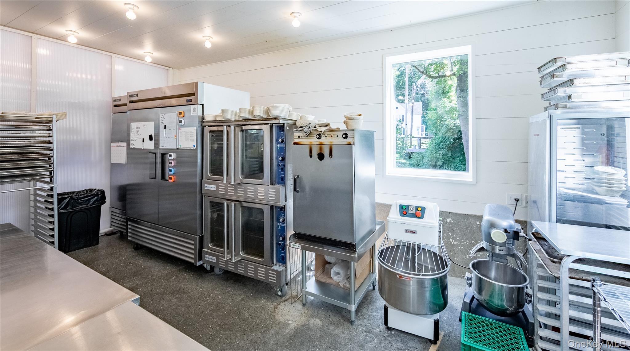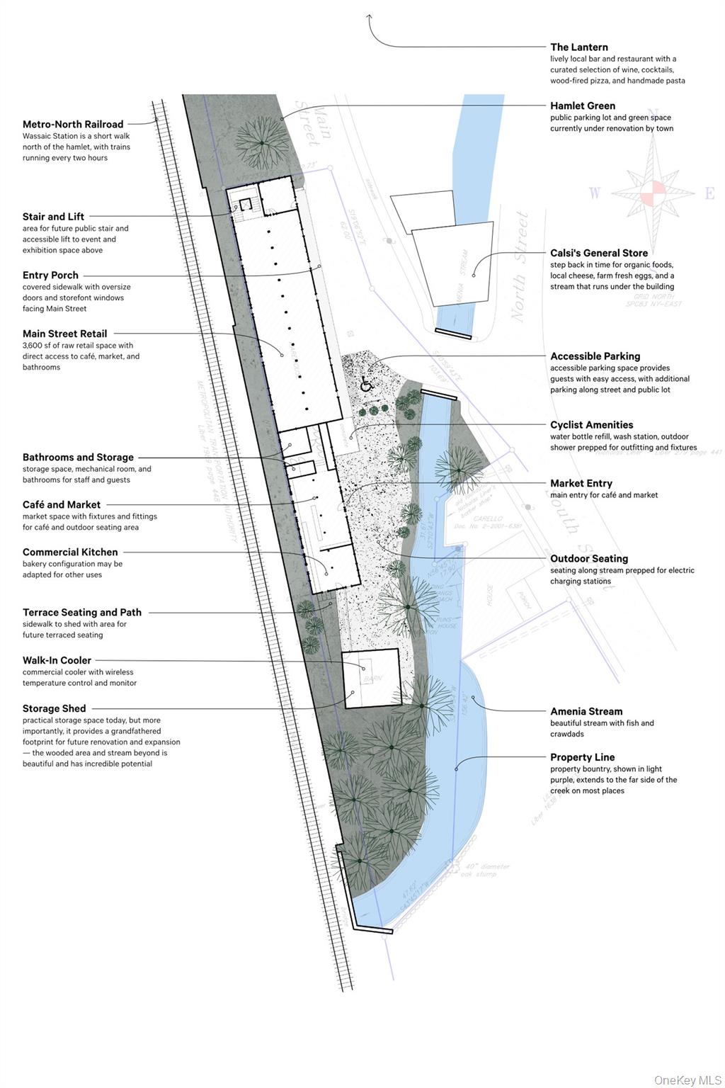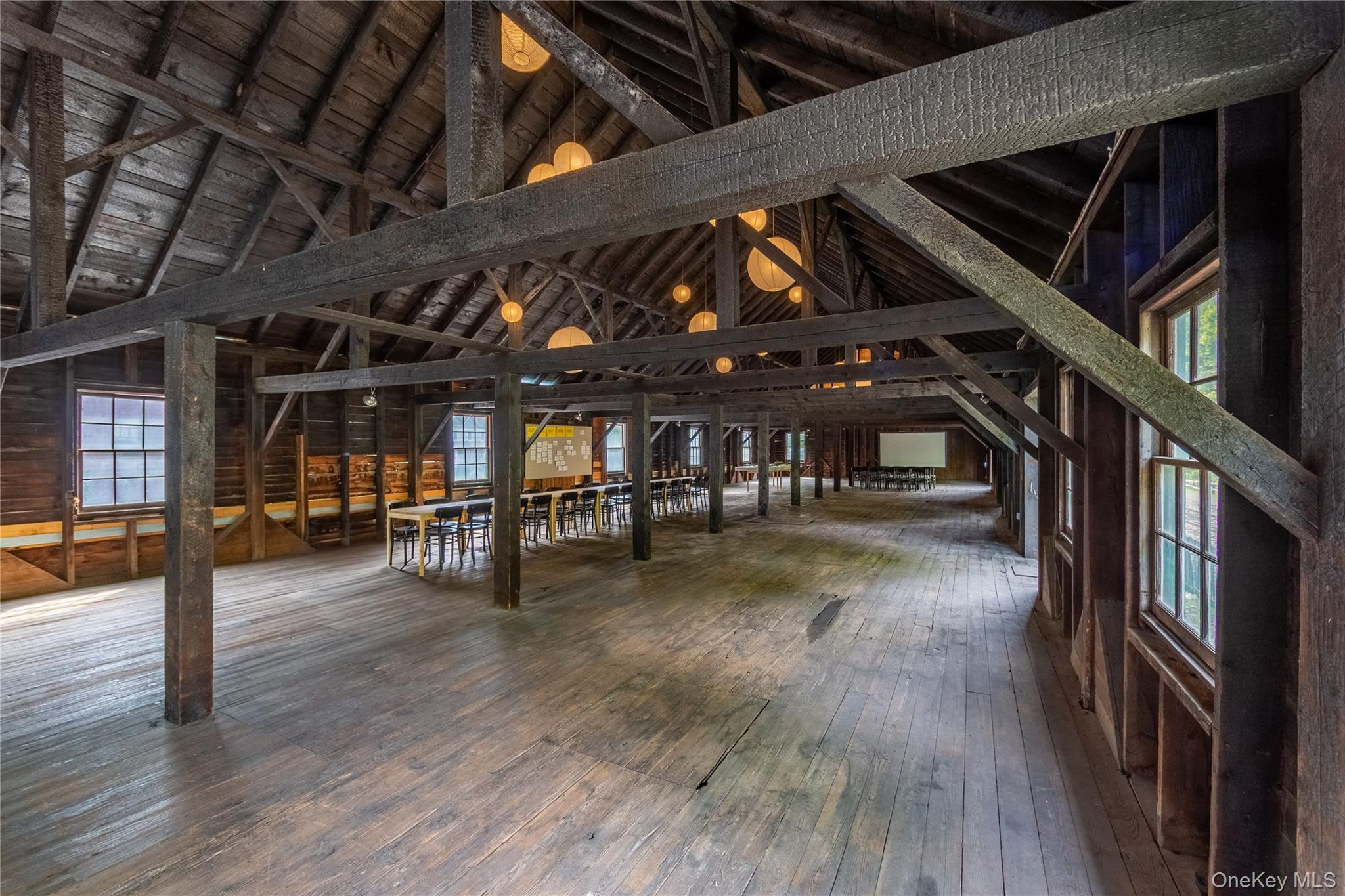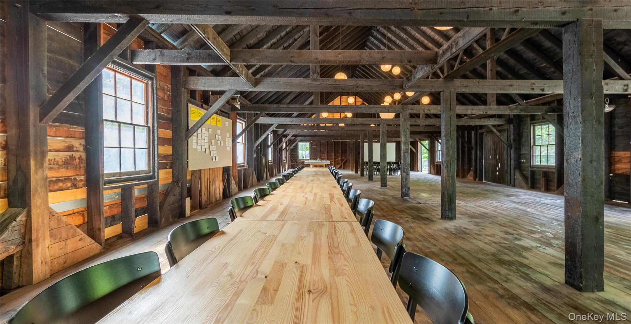Nestled in the heart of Wassaic Hamlet on Main Street, this meticulously revitalized 1920s two-story barn, spanning 10, 640 SF, stands as a testament to craftsmanship and vision. Over six years, from 2017 to 2023, exceptional contractors, tradespeople, and artisans transformed this historic structure into the Wassaic Commons, a modern masterpiece, blending rustic charm with state-of-the-art functionality. The iconic green barn, with HM zoning, offers a versatile canvas for a variety of uses, including office space, retail, arts instruction, studios, workshops, or storage, making it an ideal investment for entrepreneurs and creatives alike. The first floor, encompassing 5, 320 SF, is thoughtfully divided into 3 distinct spaces. On one side, a 1, 200 SF area houses an 800 SF market space and a 400 SF commercial kitchen, currently leased to the esteemed Vitksy Bakery. On the opposite side, 3, 600 SF of raw retail space awaits, with potential for further subdivision to suit diverse business needs. At the center, a 520 SF section includes an office, 2 bathrooms, and mechanical systems, providing essential infrastructure for seamless operations. The second floor, also 5, 320 SF, features 3, 600 SF of raw space brimming with potential for customization. The remaining 1, 720 SF is currently utilized for mechanical systems and storage. The loft’s 20-foot ceilings are adorned with a breathtaking lighting design inspired by the constellation of Polaris, Ursa Minor, and neighboring stars, with fixtures suspended at varying heights, sizes, and brightness. The timbers on this floor boast a charred finish that is naturally resistant to mold, mildew, and insects, adding aesthetic allure and durability. This is an ancient Japanese technique known as shou sugi ban. The barn’s transformation included extensive upgrades to ensure modern efficiency and comfort. A new metal roof, drilled well, and state-of-the-art water and wastewater treatment systems were installed, alongside plumbing for the existing bathrooms and commercial kitchen, with stubbed-out connections for future interior and exterior expansions. An on-demand gas-fired boiler heats the market and mid-portion of the barn, with pipes ready for future extensions, while Mitsubishi mini-split heat pumps with ducted air handlers provide cooling to these areas. The electrical system was upgraded to a 400 AMP service, and redundant CAT 6 insulated cables converge at a central rack in the service closet, equipped with a business-grade router, smart switch, video recorder, and high-definition cameras for enhanced connectivity and security. Custom cabinetry, paneling, and millwork, crafted by master carpenters, elevate the interior, with careful attention to acoustics for an optimal environment. The structure itself has been rigorously evaluated by structural engineers, architects, and timber specialists, ensuring its integrity and longevity. Outside, the barn’s exterior was meticulously scraped and painted, with reclaimed planting areas, cleared views of the bordering stream, outdoor seating, and bicycle racks creating an inviting destination for residents and visitors. A concrete sidewalk connects the barn to a 748 SF storage shed, which houses a 12 x 6 commercial-grade walk-in cooler and additional storage space. Located just steps from the Wassaic Art Project, the Lantern Inn, Calsi’s General Store and the local post office, this property is centrally positioned between Amenia, Millbrook, Millerton, Kent, Sharon, and Pawling. Its proximity to the Wassaic Metro North Train Station, the final stop on the Harlem line, and Route 22 make it a convenient 2 hour journey to NYC by car or train. For outdoor enthusiasts, the barn marks the starting point of the Harlem Valley Rail Trail, offering 46 miles of paved trails for bicyclists. This extraordinary property, blending historic charm with modern innovation, is a rare opportunity to own a versatile and vibrant cornerstone in the heart of Wassaic Hamlet.
