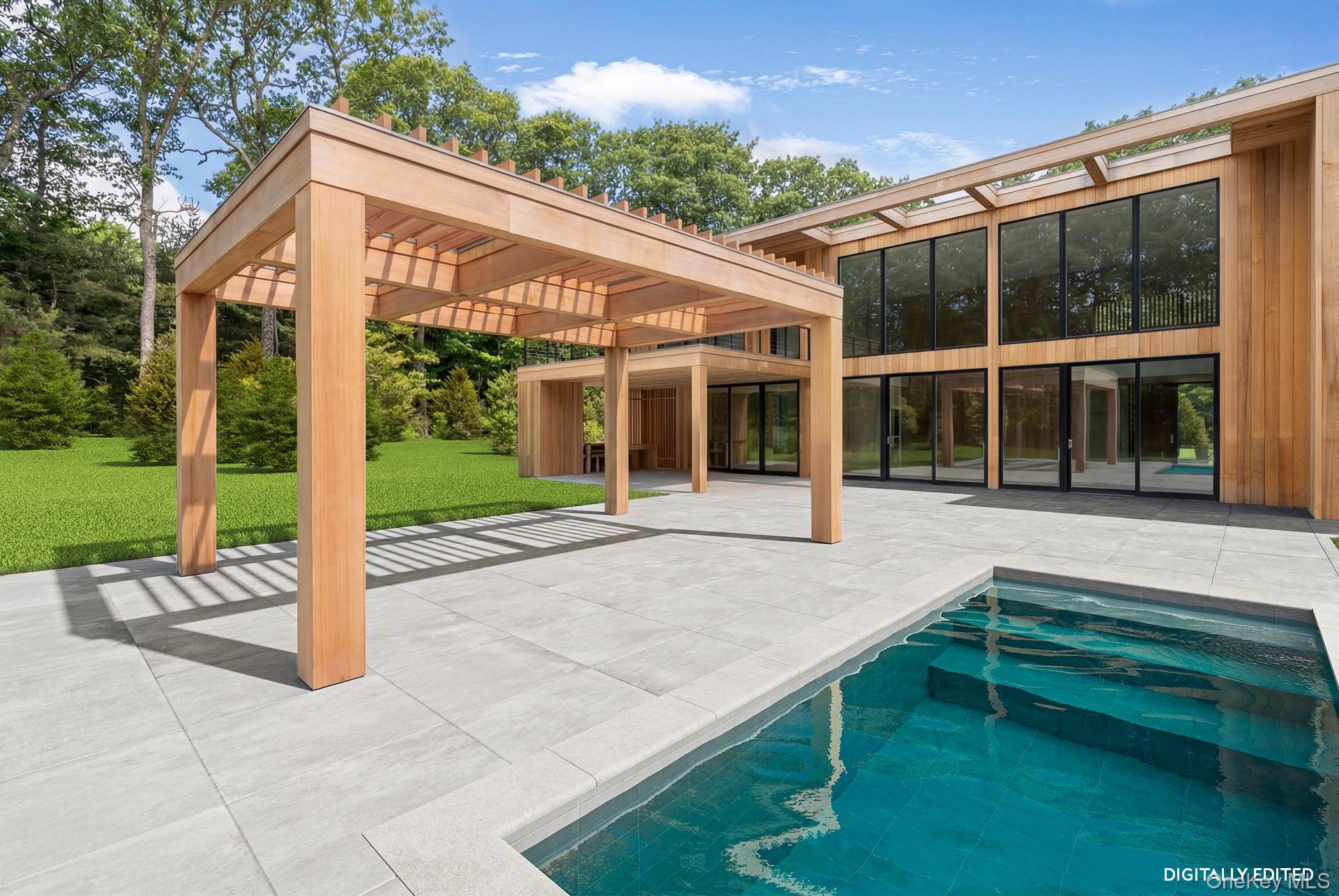 This refined modern is unparalleled. Set on 1. 67 acres within the coveted Bell Estate in Amagansett and bordering over 50 acres of reserve, the setting affords exceptional privacy and a locational advantage you will love. A perfectly positioned residence just minutes to Amagansett's Main Street, the ocean, and the bay. Meticulous execution, thoughtful design, and noticeable attention to detail throughout this new construction, the results showcase natural light, embrace the surroundings, and seamlessly blur the lines between indoor/outdoor living. The minimal exterior offers clean lines and texture, beginning with its vertical grain clear cedar siding, custom-milled cedar screens and floor-to-ceiling windows and doors. A dramatic architectural overhang at the rear elevation filters the light and adds rhythm to terraces and balconies below. A stunning custom 50' gunite pool with lap lane, spa, and sun shelf anchors the backyard along with a pergola-covered lounge offering welcoming shade on a hot summer's day. Mature native landscaping enhances and surrounds the abundance of exterior living space with over 3, 000 square feet of terraces including a covered outdoor kitchen and dining area, bluestone patios, Ipe balconies, and an upper sundeck. Inside, clean lines meet sumptuous and enduring materials. From the second-floor mezzanine one can fully appreciate the impressive main living area. A 20' vertical clear cedar wall defines the dining area, while a double-height window wall brings the outdoors in. A STUV wood-burning fireplace encased in statuary marble is the perfect transition from the great room to the spacious den. Features include 7" wide white oak flooring, 9' interior doors, recessed silo lighting, and a striking steel-and-oak mono-stringer staircase. The home spans approximately 10, 000 square feet across three finished levels. Eight ensuite bedrooms include a first-floor primary suite, second-floor primary, and junior primary. All feature walk-in closets, floor-to-ceiling glass sliding doors, and access to private or semi-private outdoor spaces. Spa-caliber bathrooms, with full-height natural stone and marble tile, cedar accents, floating white oak vanities, brushed nickel fixtures, Robern medicine cabinets, freestanding tubs, and integrated custom mirrors with vertical lighting. Natural light continues all day in the fully finished lower level with an east and west facing sliders, plus oversized windows. Here indulge in your own private wellness suite including a mirrored fitness studio with ballet barre, cedar-walled sauna with glass panel, separate steam room, and custom stainless steel Reiki soaking tub. Additional amenities on this level include a modern wine room, wet bar, media space, and expansive recreation lounge. Back on the main level, the kitchen is a work of art and is made to entertain. The Henrybuilt kitchen offers refined aesthetics with exceptional function; an oversized fluted white oak island, statuary marble countertops and backsplash, and integrated Gaggenau appliances, including wine column, induction cooktop, wall ovens, and fridge. A discreet auxiliary kitchen offers matching finishes, Miele and Gaggenau appliances, a gas range with custom steel hood, coffee bar, and utility island. Adjacent mudroom, side entrance, and laundry room add everyday convenience. Engineered and fully equipped for longevity and efficiency, the home features a Lutron RadioRA smart system for app-controlled HVAC, lighting, AV, and pool. All bedrooms and living spaces are AV/media ready. Additional green features include spray foam insulation, whole-home water filtration, a 10kw solar array, and a HERS-rated energy performance build. Set for completion late fall 2025 within Bell Estate in Amagansett. Listing ID: 923878