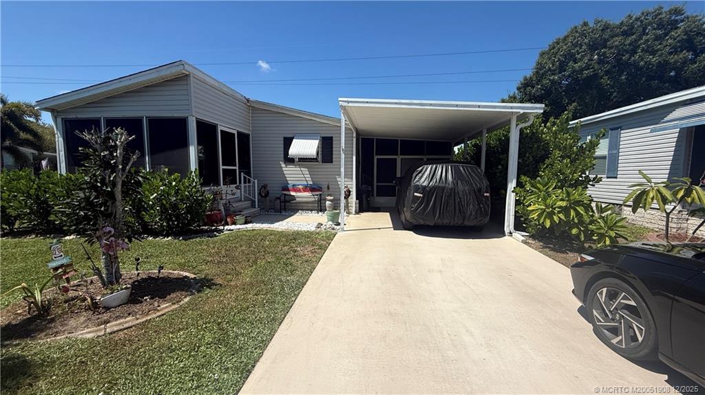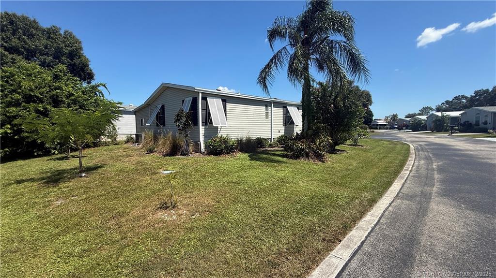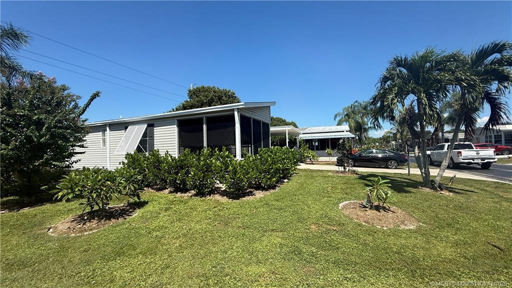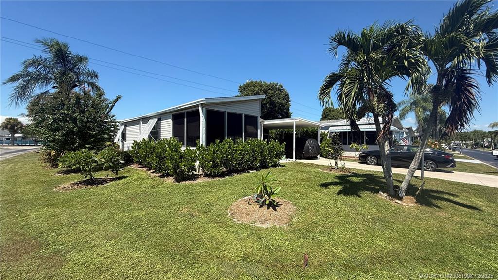 Owner will c?n?ider all ?ffer?. Charming, ?oastal inspir?d, 2 B?drm/2 Bath Manuf Home in Pinelake Estates 55+ Community in So Stuart. BRAND NEW A/C 8/2025!!! Luxury Vinyl Plank floors in all public areas, Carpet in Bedrooms. Open Updated Kitchen w pull up counter & ALL NEW APPLIANCES!. Screened room right off LR to sit & enjoy the tropical FL weather. Good size Master Bedrm w walk-in closet & updated master bath w new vanity, step in shower & chair height toilet. The 2nd Bedrm is cozy w updated full bath on the Hall. There is also a 2nd screened lanai for additional entertaining with added privacy from lush landscaping. Utility room w washer/dryer right off this lanai. The Corner location of this home adds to its' privacy w no homes on 3 sides. Steps from the Clubhouse, shuffleboard & community pool/spa. Lot rent of $859. 61 includes lawn care, trash removal & all the amenities. Minutes to ocean beaches, shopping & restaurants. 2 large dogs permitted w prior permission of mgmt.