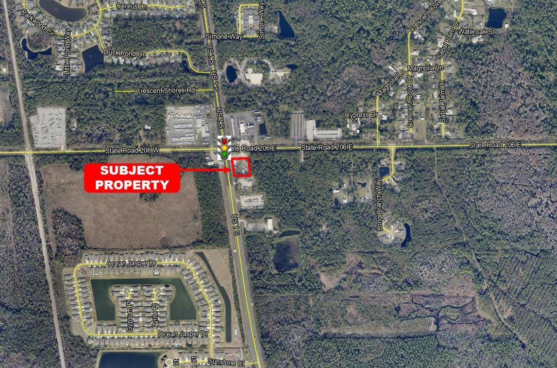 Property Description: Prime Commercial Opportunity at High-Traffic Signalized Corner! Located at the bustling intersection of State Road 206 E and US 1 South in the thriving Dupont Center area of southern St. Johns County, this commercially zoned (CG) property offers unmatched visibility and access. Strategic Location: Front and center for daily commuter traffic between Palm Coast and St. Augustine. A major route for travelers from Gainesville, Ocala, and Putnam County heading to St. Augustine Beach and Crescent Beach. Directly across from busy retail anchors Circle K and the popular Smokin’ D’s BBQ. High Growth, High Traffic: With continued population growth in the Palm Coast region and increasing tourism to nearby beach destinations, this location is positioned for explosive traffic volume growth—making it an ideal spot for future development or a high-visibility business. Investment Highlights: Zoning: CG (Commercial General). Current Income: $60, 000 annually (6-month lease). Flexible Use: Maintain as income-producing or redevelop for retail, office, or service use. Daily Traffic Counts at this intersections: US 1 N. @ State Rd. 206 = 24, 500. US 1 S. @ State Rd. 206 = 17, 000. State Rd. 206 E. @ US 1 S. = 12, 500. State Rd. 206 W. @ US 1 S. = 9, 400. PLEASE DO NOT APPROACH THE TENANTS.