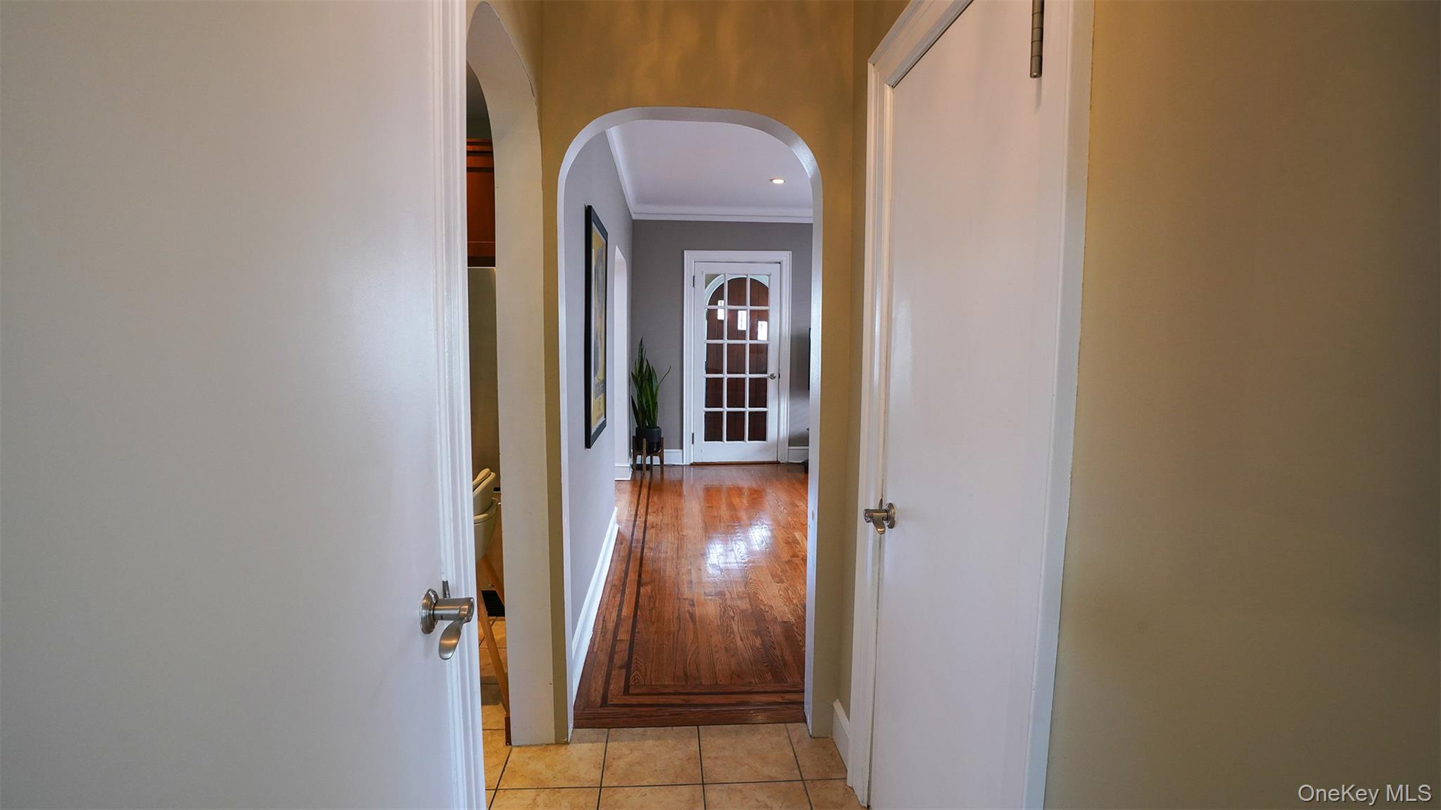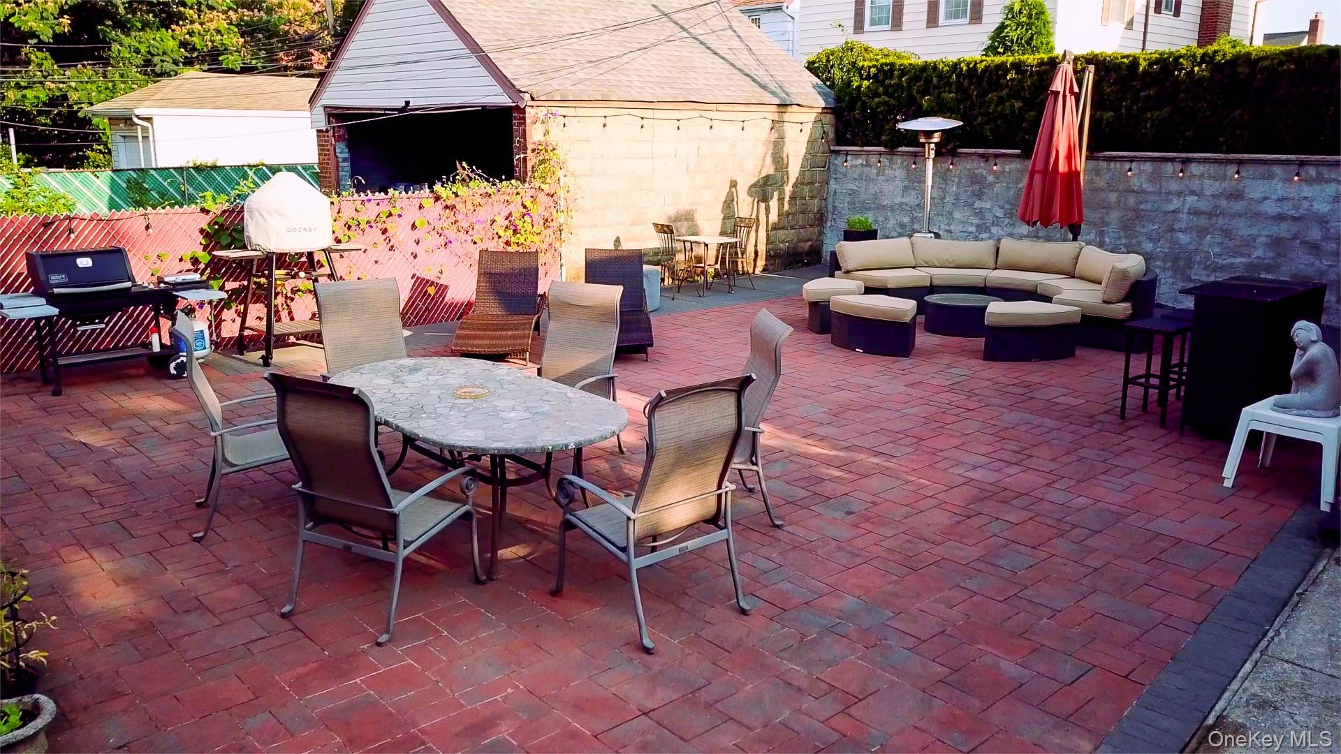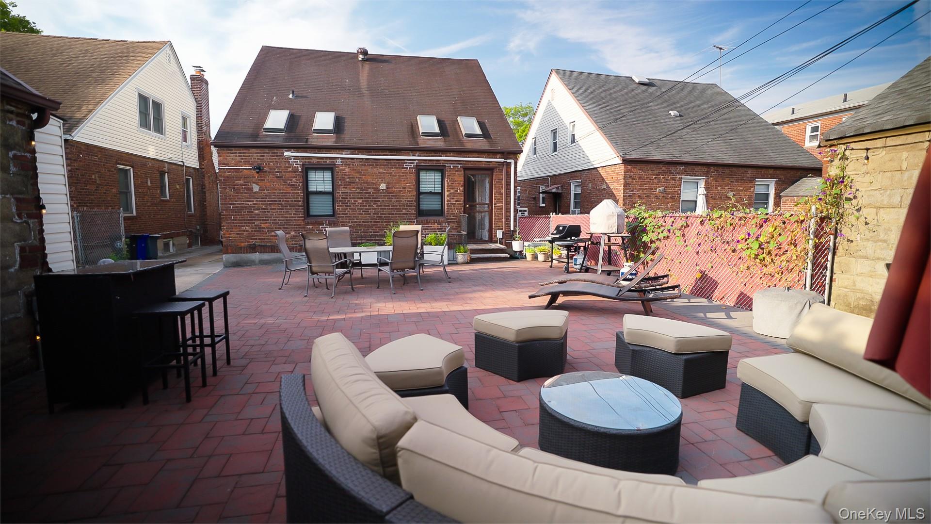 An exquisite Tudor-style two-family home awaits in the tranquil and desirable neighborhood of Whitestone, Queens. This remarkable property, is a perfect fusion of classic elegance and extensive, modern renovations, making it an ideal choice for both comfortable living and smart investment. The first-floor unit presents a sophisticated and welcoming ambiance. The kitchen is a chef's delight, boasting sleek granite countertops and custom cherry wood cabinets that provide both beauty and ample storage. The living space is enhanced by original hardwood floors with stunning oak inlay, a testament to the home's enduring craftsmanship. The first floor is equipped with state-of-the-art ductless AC/heat units, ensuring year-round comfort. The two bedrooms are true sanctuaries, featuring high ceilings and skylights that flood the rooms with natural light. The fully renovated bathroom offers a touch of vintage luxury with a classic clawfoot tub. Step outside from the first floor to a beautifully customized, large patio paved with red pavers, creating a private oasis perfect for entertaining or relaxing. The property also includes a detached single-car garage for convenient parking and additional storage. The fully renovated basement is a bonus unto itself, functioning as a separate, spacious living area with its own entrance and central air conditioning. This versatile space features a large, open loft-style layout, complete with a kitchen, a modern bathroom, a dedicated laundry room, and a generous walk-in closet. The basement also includes a bonus space and two utility rooms, providing an abundance of storage. The second-floor apartment is a private and well-appointed one-bedroom unit. It includes a full kitchen with extra storage cabinets, a living room and a separate dining area, ensuring a comfortable living experience. This unit is equipped with a convenient in-wall AC unit. This property is a legal two-family home with gas heating and two separate electric meters, offering excellent flexibility and potential rental income. Located in a prime Whitestone location, this home is a rare find that combines classic architectural charm with thoughtfully designed, modern features. Perfectly situated, with a 20-minute train ride to Manhattan via the Long Island Railroad, just 7 minutes to Citifield and only a 10-minute drive to Laguardia Airport. Do not miss this opportunity to own a truly unique and exceptional property.