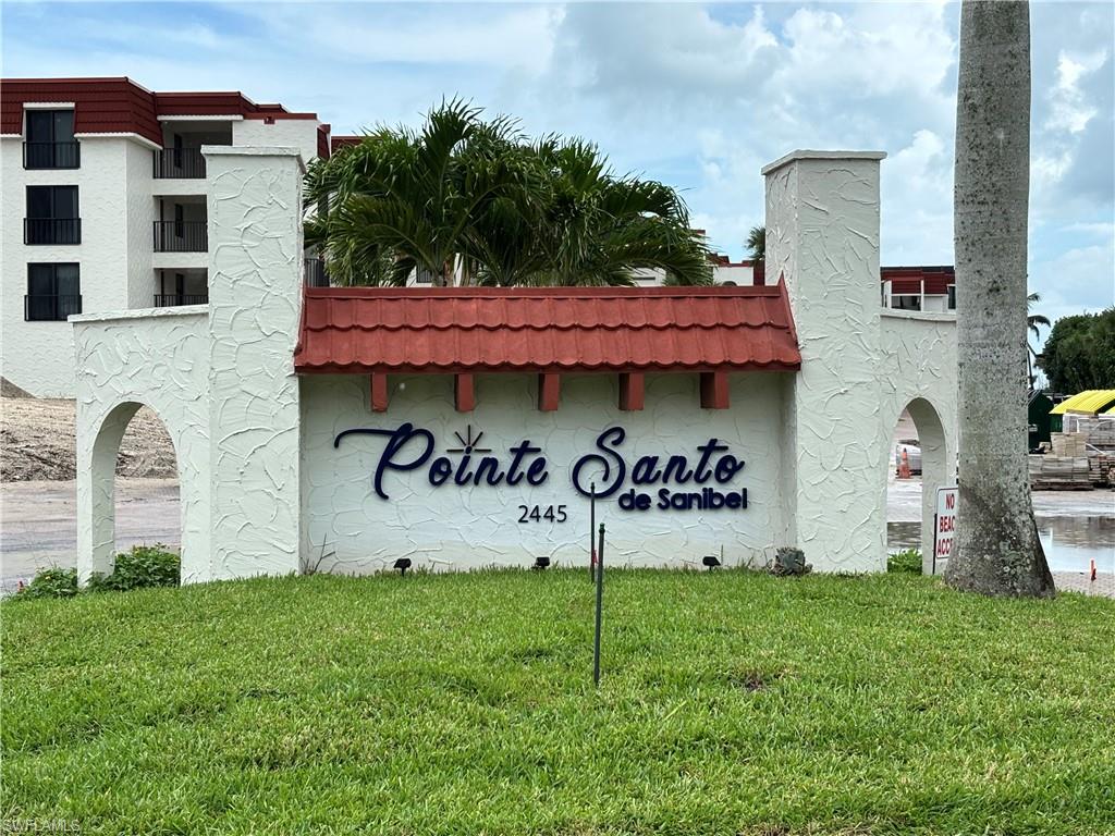 The blank canvas inside invites your vision to shape the space—featuring tile floors and built-in cabinetry as a foundation. Pointe Santo offers tennis courts, a fitness center, and private beach club access for an active island lifestyle. Nearby attractions like the Sanibel Lighthouse and J. N. Ding Darling Refuge add extra appeal.