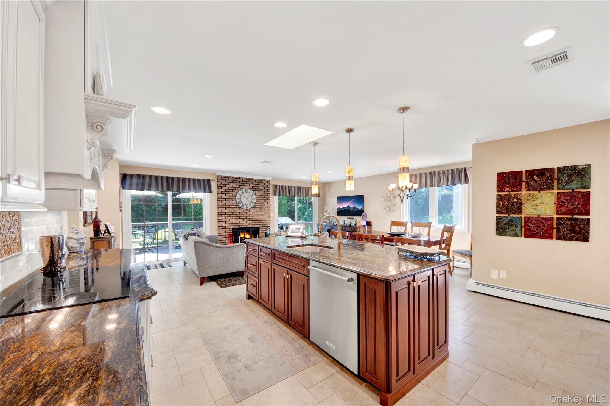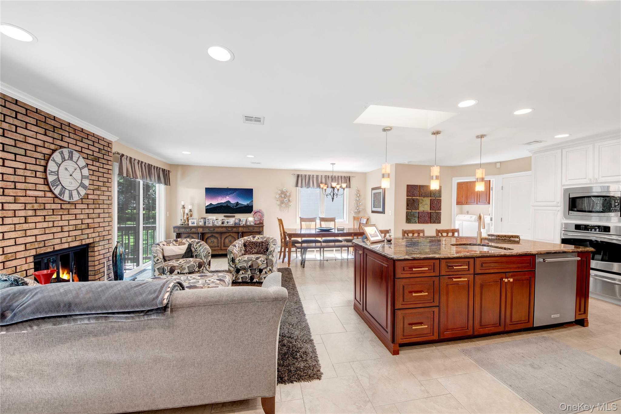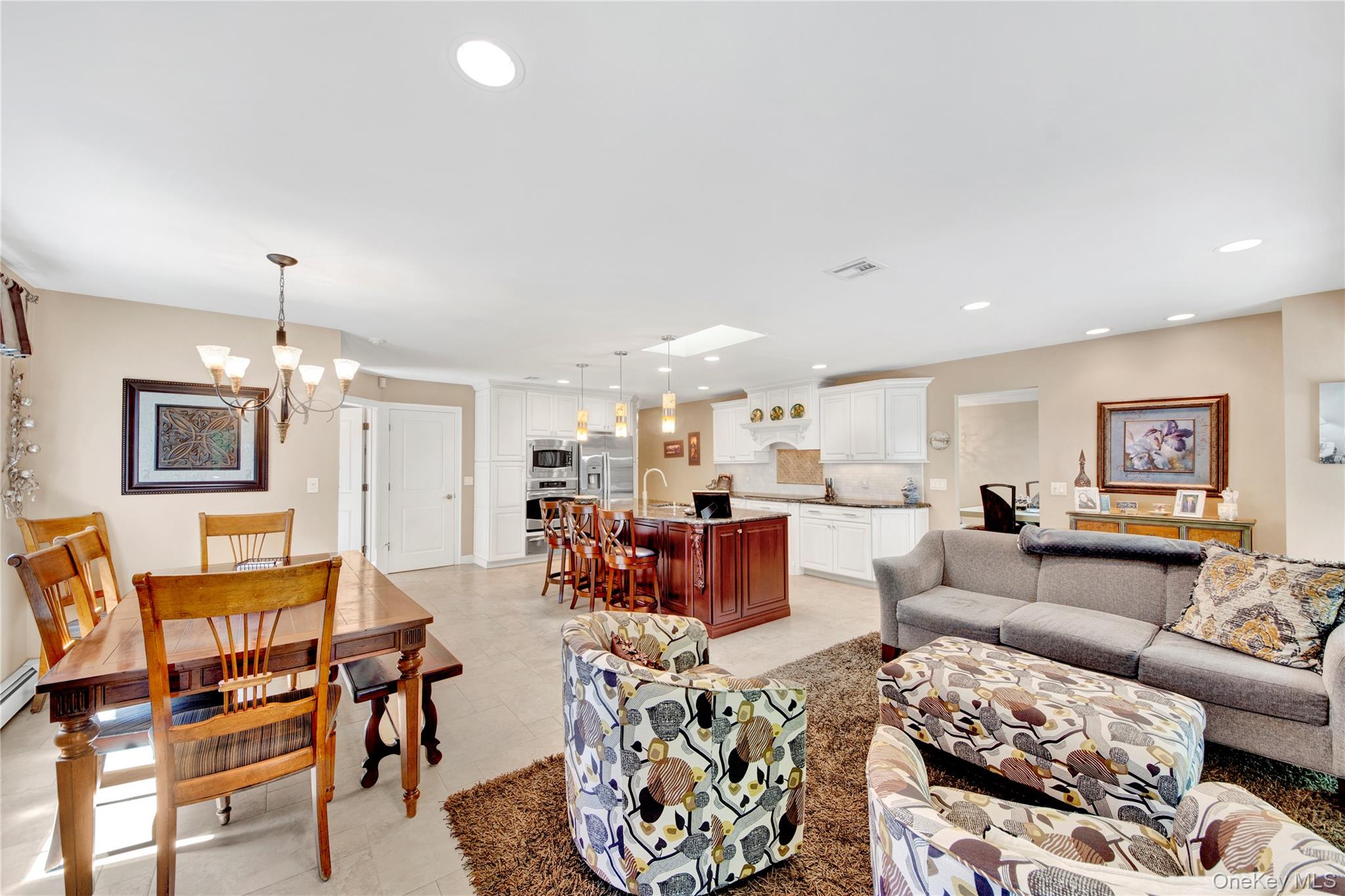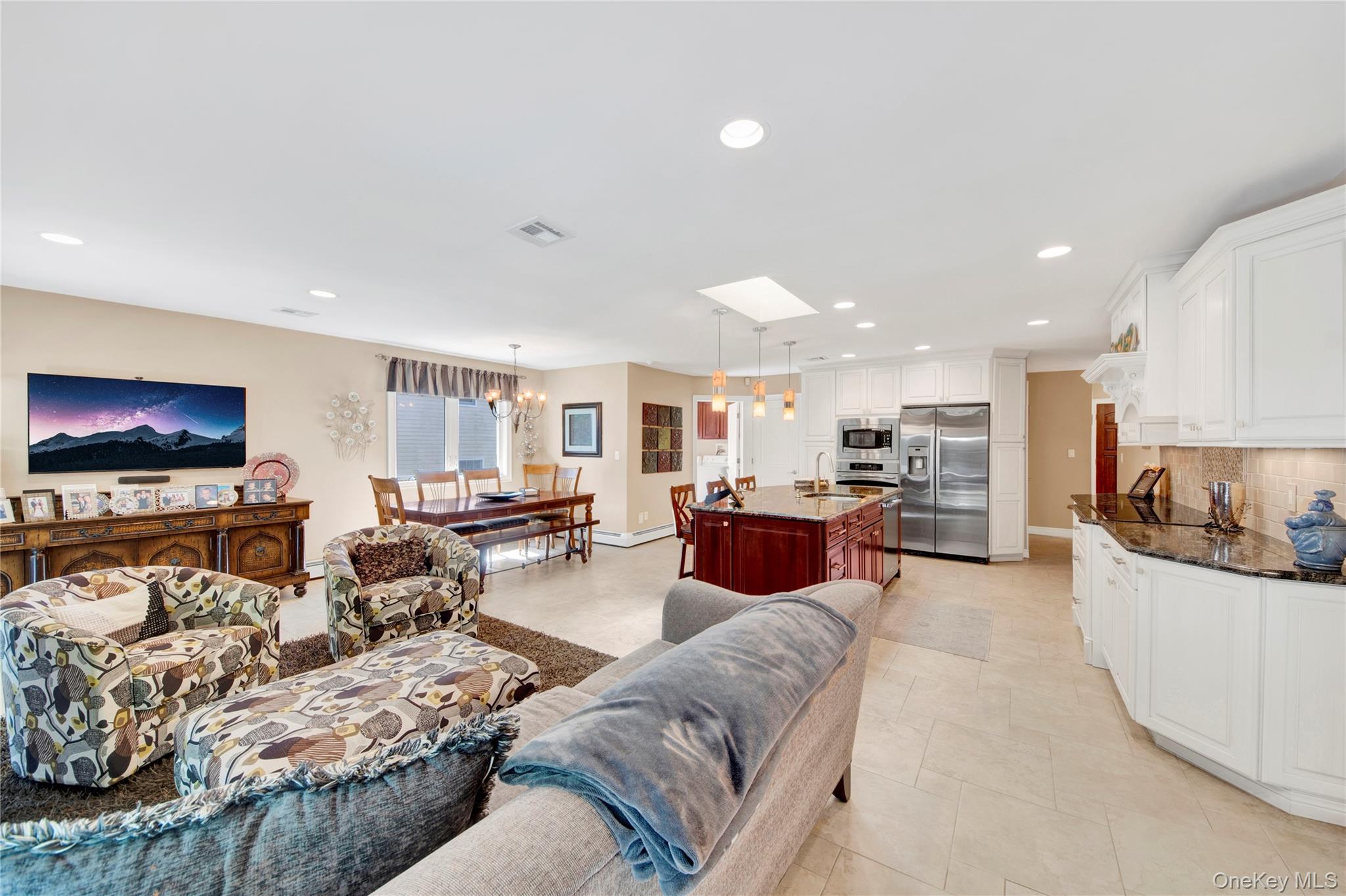 Nestled on a quiet cul-de-sac, this charming Ranch-style home offers a perfect blend of comfort and style. From the beautifully landscaped front yard to the inviting double-door entry, you’ll feel at home the moment you arrive. The two-car garage and additional paved driveway make parking a breeze. Step inside to a bright and open living room and formal dining area, flowing effortlessly into a stunning kitchen perfect for entertaining. With granite countertops, soft-close cabinets, stainless steel appliances, and three skylights, this space is as practical as it is beautiful. The adjacent family room with fireplace creates a cozy spot for relaxing with family. Convenient first-floor laundry adds ease to everyday living. The home features three sunny bedrooms, including a spacious master suite with plenty of natural light and a stylish master bath. Hardwood floors lie beneath the carpeting, and there’s even the potential to create a fourth bedroom if needed. Three-zone heating, central air, and a central vacuum system add convenience and comfort throughout. The finished basement is versatile, currently set up as an office, with high ceilings, abundant storage, and a cedar closet. With its impeccable condition, thoughtful upgrades, and inviting layout, this home is ready for you to move in and make it your own. Plus, you’ll enjoy access to nearby Anthony Veterans Park, featuring multiple pools for children and adults, tennis and pickleball courts, and a vibrant senior center.