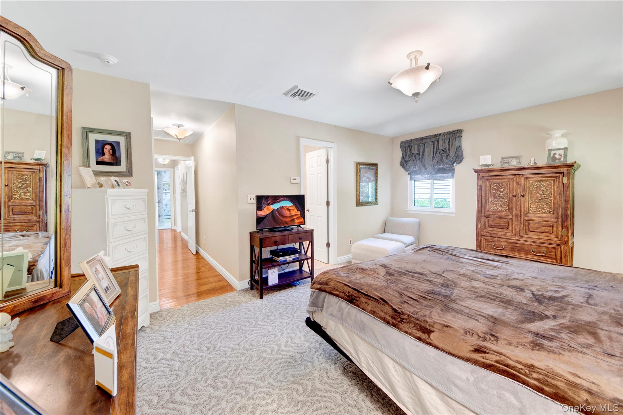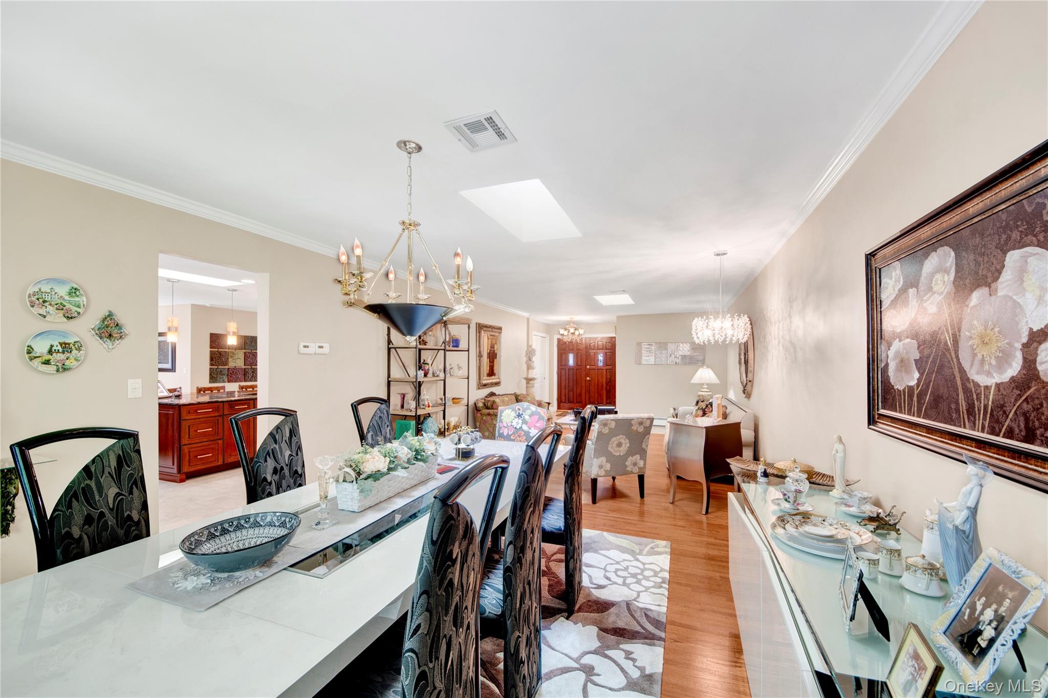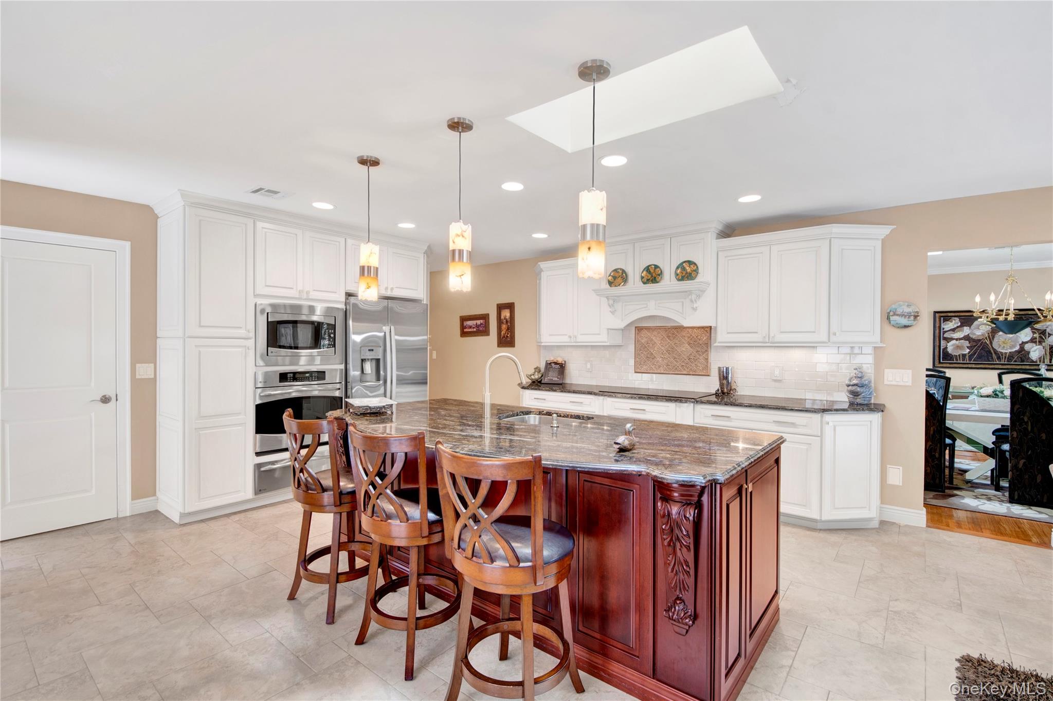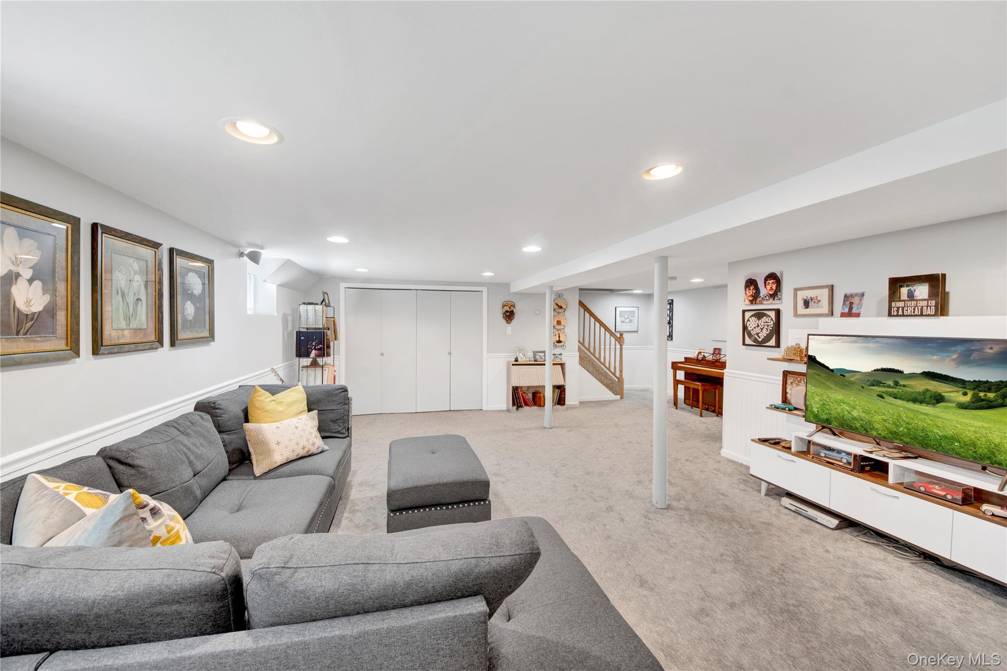 Nestled on a quiet cul-de-sac, this charming Ranch-style home offers a perfect blend of comfort and style. From the beautifully landscaped front yard to the inviting double-door entry, you’ll feel at home the moment you arrive. The two-car garage and additional paved driveway make parking a breeze. Step inside to a bright and open living room and formal dining area, flowing effortlessly into a stunning kitchen perfect for entertaining. With granite countertops, soft-close cabinets, stainless steel appliances, and three skylights, this space is as practical as it is beautiful. The adjacent family room with fireplace creates a cozy spot for relaxing with family. Convenient first-floor laundry adds ease to everyday living. The home features three sunny bedrooms, including a spacious master suite with plenty of natural light and a stylish master bath. Hardwood floors lie beneath the carpeting, and there’s even the potential to create a fourth bedroom if needed. Three-zone heating, central air, and a central vacuum system add convenience and comfort throughout. The finished basement is versatile, currently set up as an office, with high ceilings, abundant storage, and a cedar closet. With its impeccable condition, thoughtful upgrades, and inviting layout, this home is ready for you to move in and make it your own. Plus, you’ll enjoy access to nearby Anthony Veterans Park, featuring multiple pools for children and adults, tennis and pickleball courts, and a vibrant senior center.