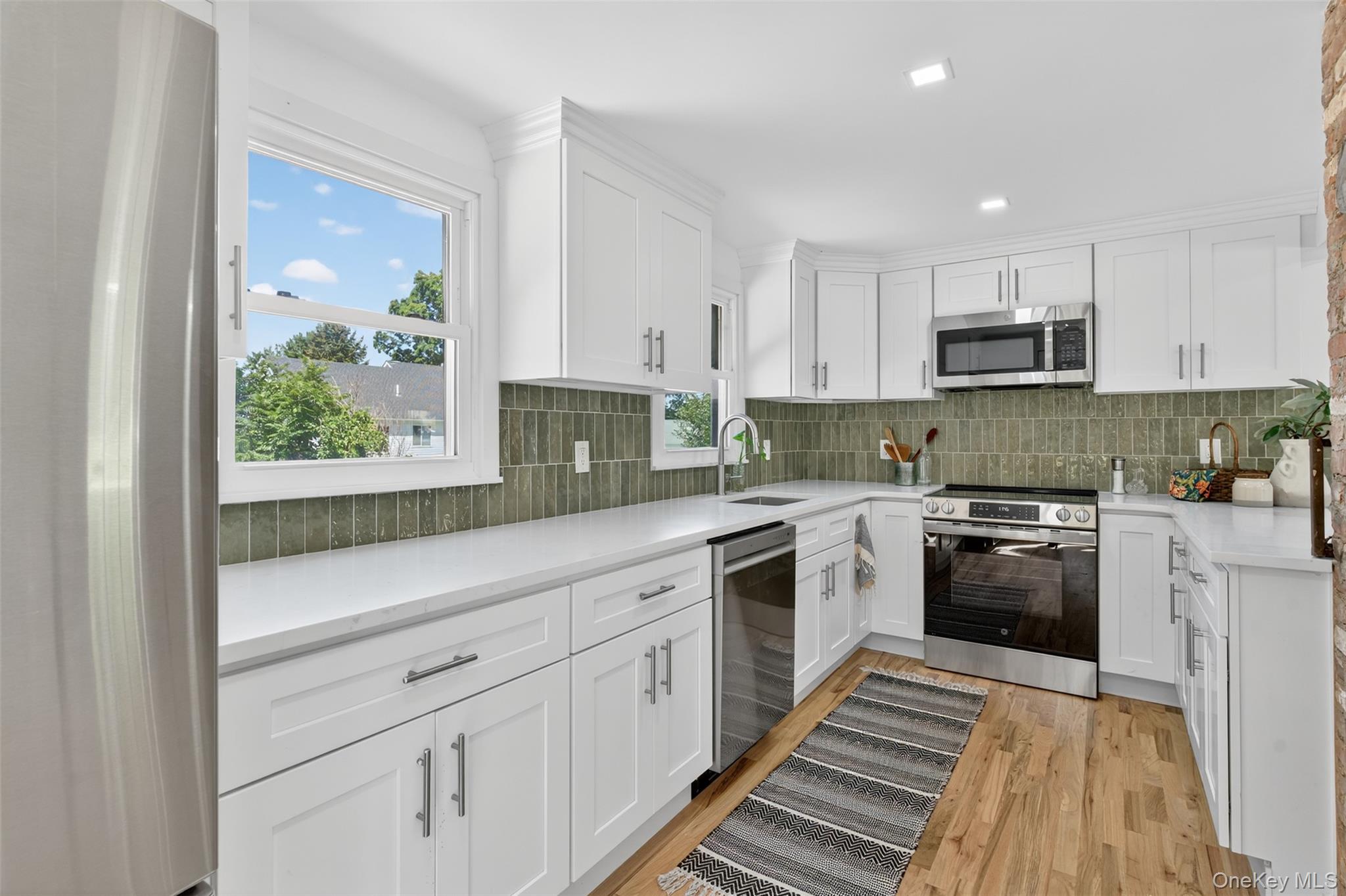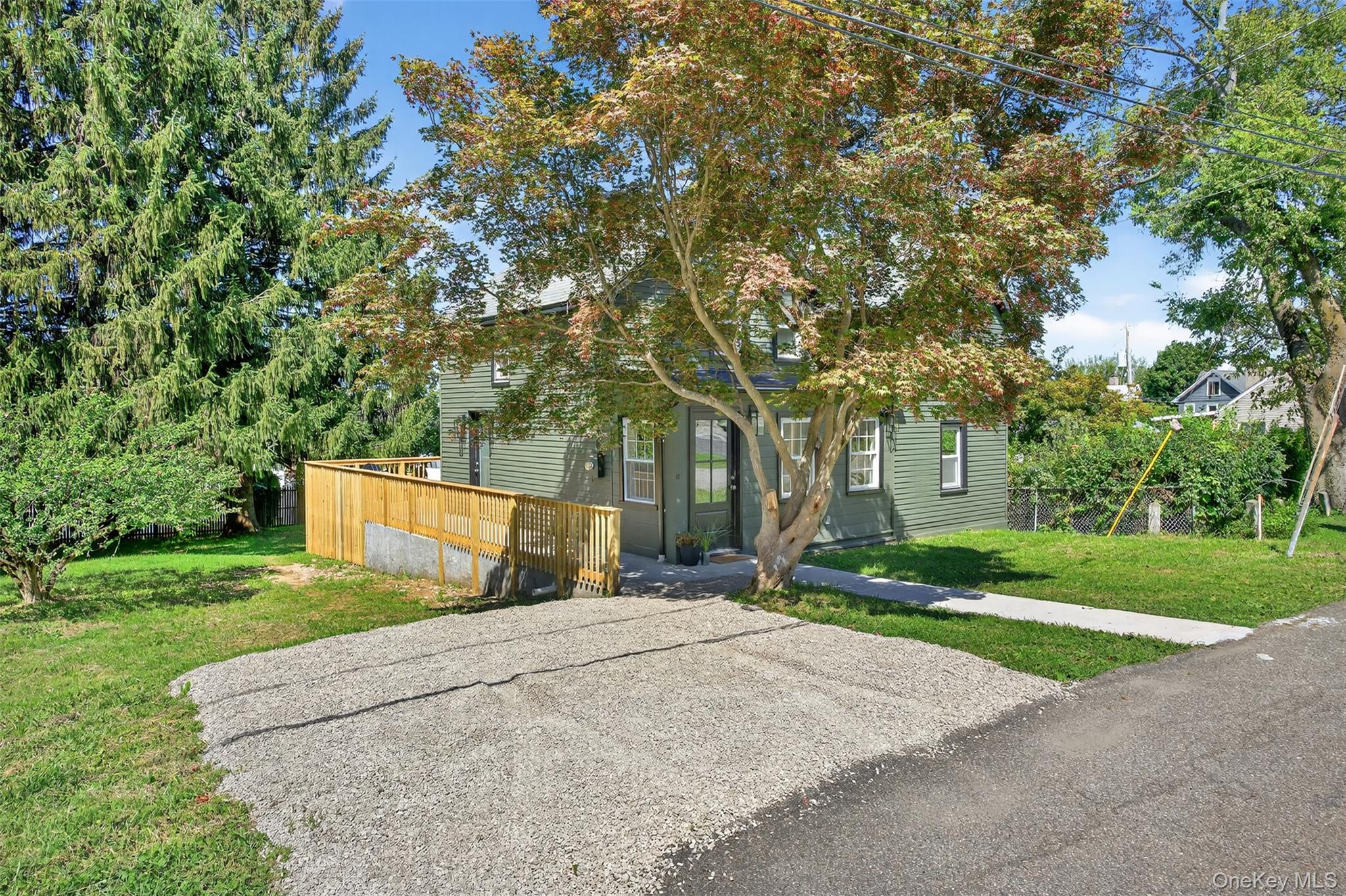 Nestled in the heart of Beacon, just steps from Mount Beacon, this charming gem has been thoughtfully transformed into a modern two-story home while preserving its 1920s character. Tucked away on a quiet dead-end street, the quarter acre home offers 1, 100 square feet of living space, featuring 2 bedrooms, 1 spacious full bath, and a versatile office on the main level that can also serve as a third bedroom. The inviting foyer opens into an airy, open-concept kitchen and dining area that flows seamlessly into the living room. Natural light pours in from every angle, creating a warm and welcoming atmosphere. The cozy living room sits just off the kitchen, with a private office directly across the way. Upstairs, dual staircases lead to two bedrooms. The primary suite boasts vaulted ceilings and a generously wide layout, easily accommodating a king-size bed and custom furnishings. The full bath is conveniently positioned between both bedrooms, showcasing custom tilework and a sleek, sophisticated design. Step outside to the back deck and take in the sunshine, mountain views, and peaceful surroundings—an ideal retreat in one of Beacon’s most desirable locations.
