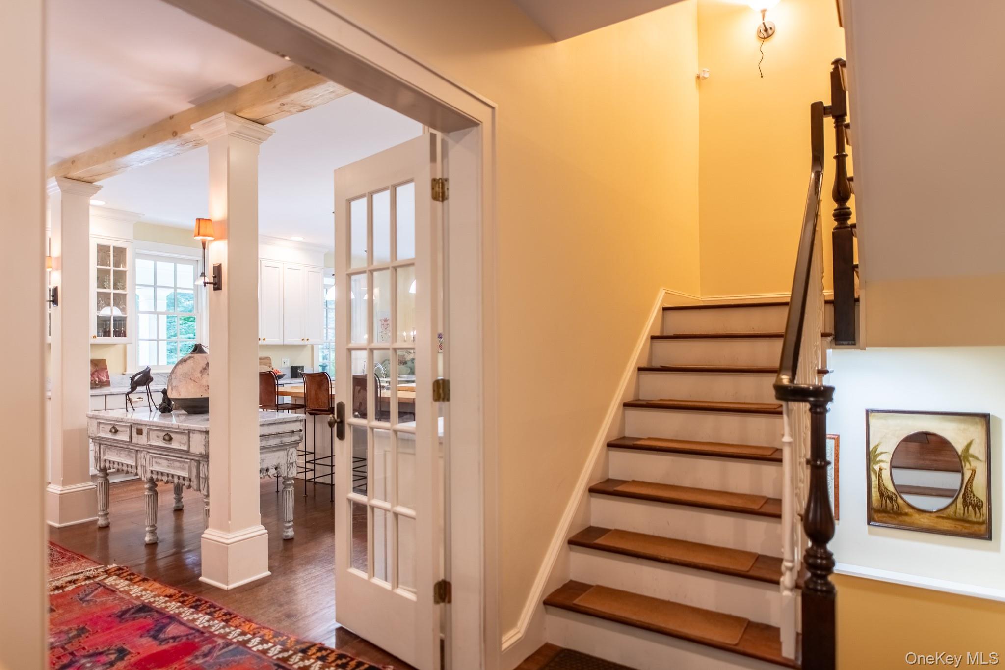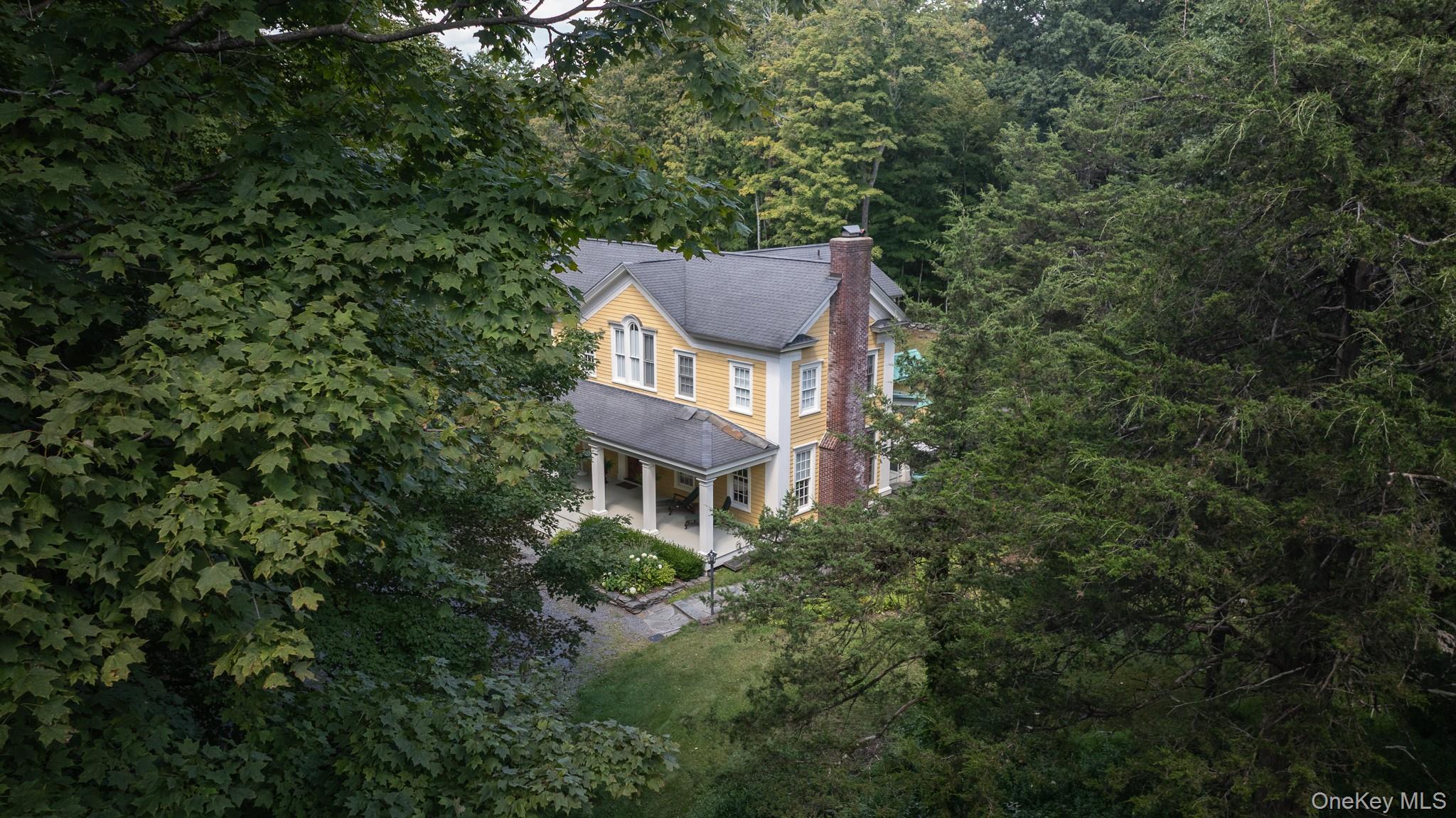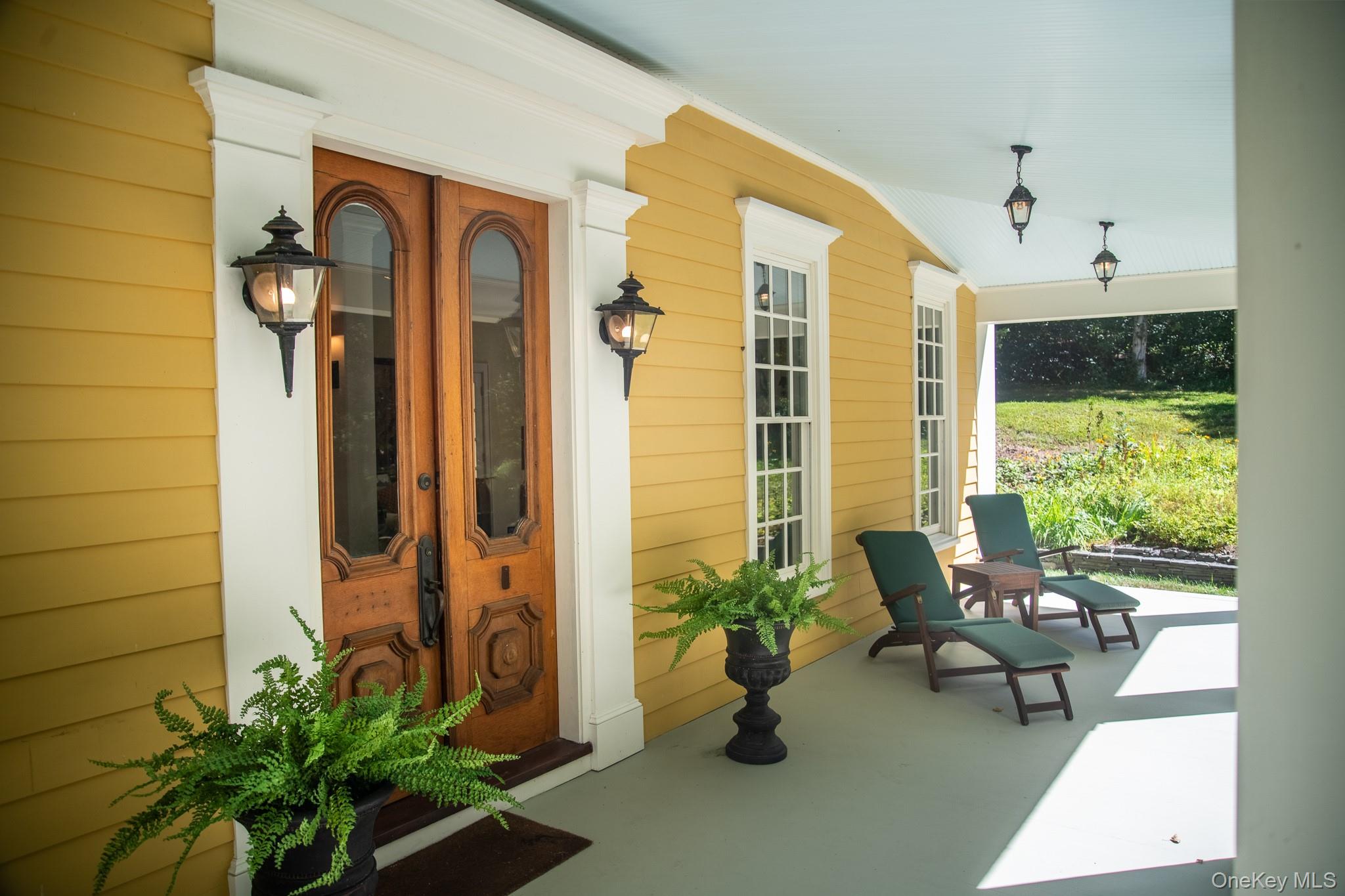 The Taj is a Hudson Valley Reverse Gabled Farmhouse and tucked away like a secret waiting to be revealed. Evocative of the early 19th century with timeless grace. A winding approach meanders through old-growth trees and stone walls. The drive ends in a roundabout that frames the home’s stately exterior. Greeted with an inviting, long, wide porch supported by six elegant columns. A vast field stretches beside the house, offering many possibilities. The interiors exude spaciousness with soaring ceilings and a gracious entry foyer. The thoughtful layout features east and west wings, creating an open flow between living and dining areas, anchored by a unique Rumford wood-burning fireplace. Energy-efficient mechanicals ensure lasting performance, while modern appliances, a first-floor bedroom, and bath offer convenience without compromise. Located near the Parkway, Rhinebeck, Red Hook, and the Amtrak train station.