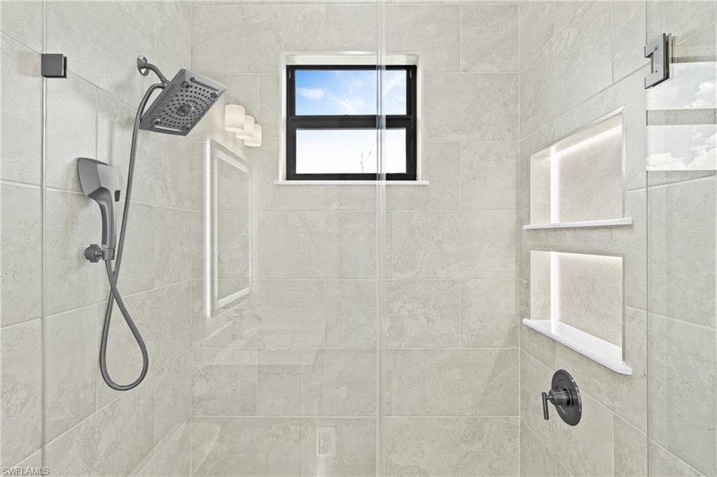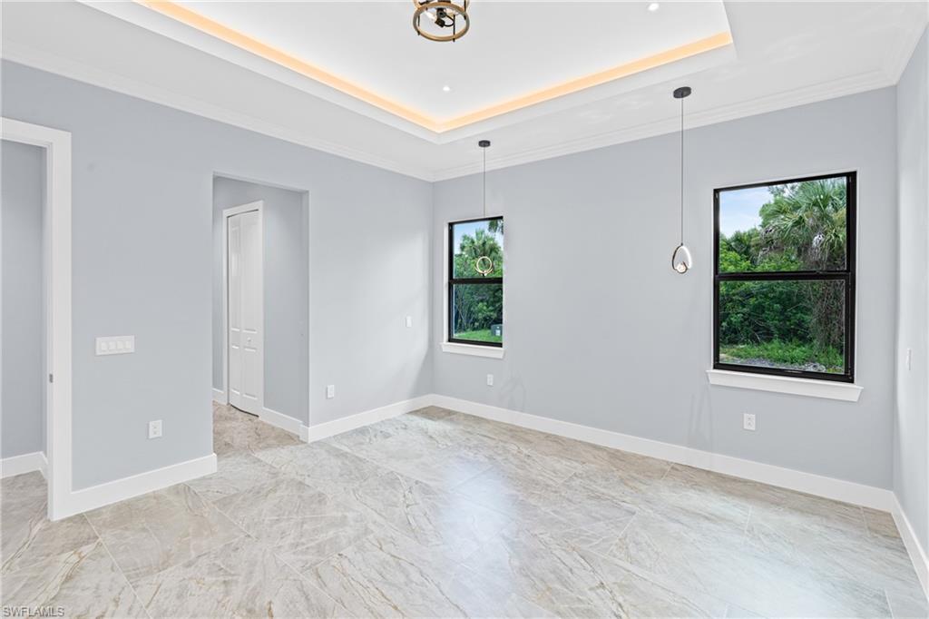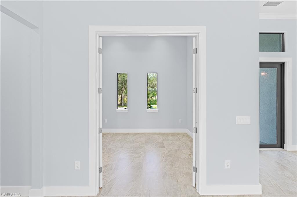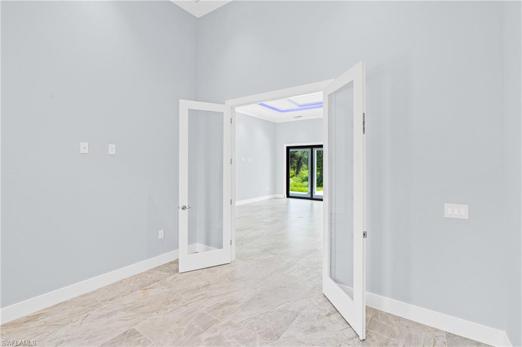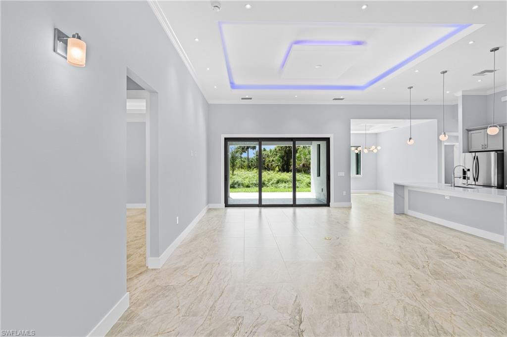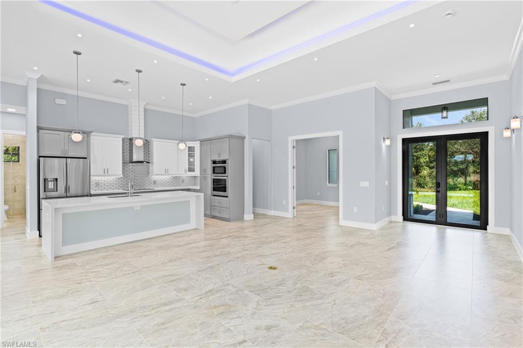 Step inside to discover a thoughtfully designed interior boasting high-end finishes throughout, including elegant porcelain floors, impact-resistant windows and doors, and high ceilings with tray and coffered ceiling details. The home is equipped with a whole-house surge protector, two A/C units with smart thermostats, smart LED lighting, and a REVERSE OSMOSIS WATER SYSTEM.