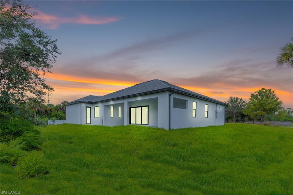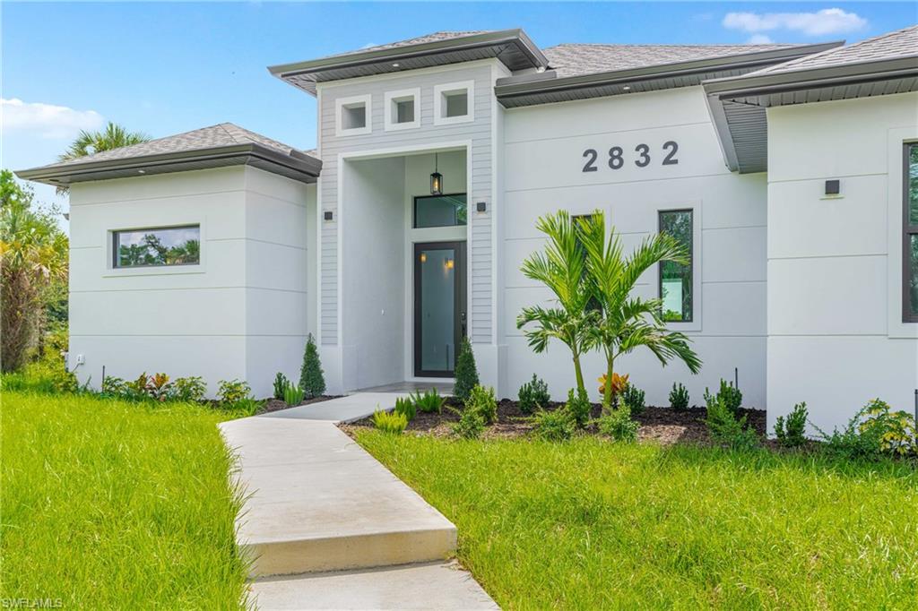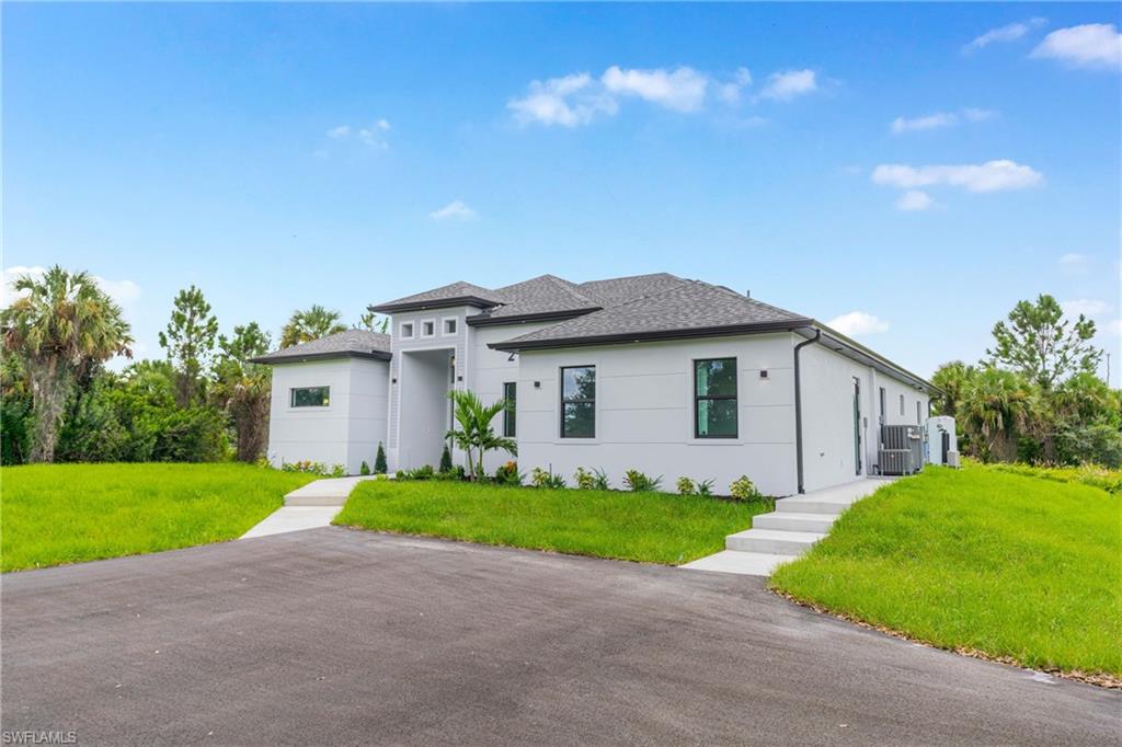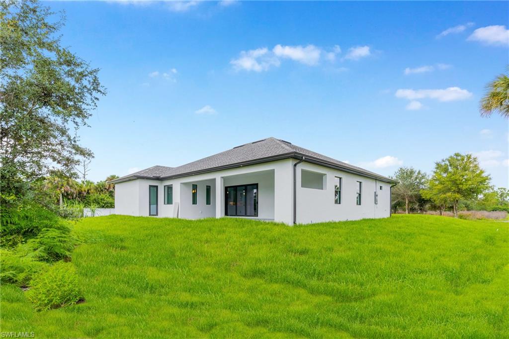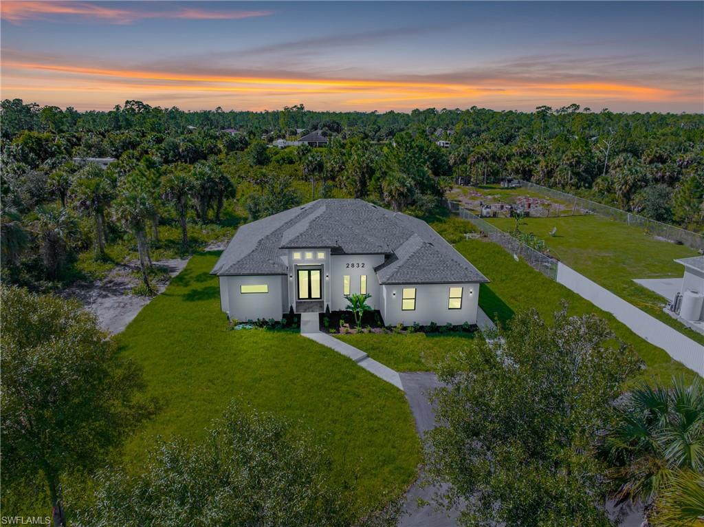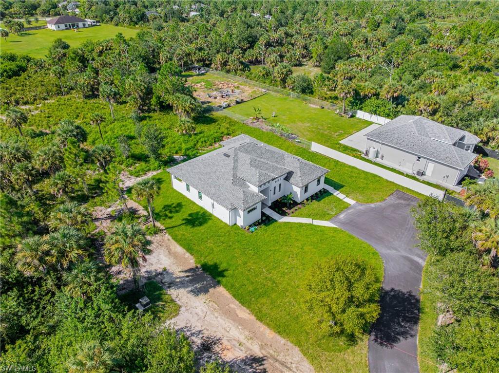 NEW CONSTRUCTION MAIN RESIDENCE + GUEST HOUSE + 2. 27 ACRES. Situated in the highly desirable Golden Gate Estates neighborhood, this exquisite property offers unparalleled privacy thanks to a wide 12-foot by 370-foot-long driveway. The exterior features decorative lighting, full gutters with underground drainage, and lush natural landscaping.